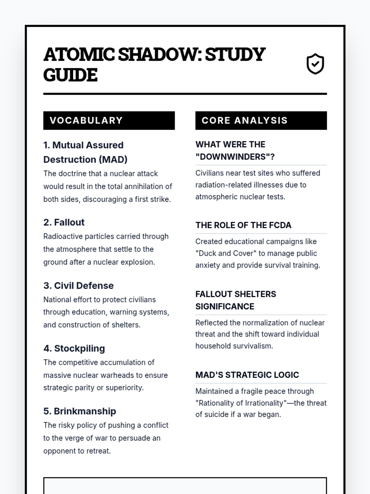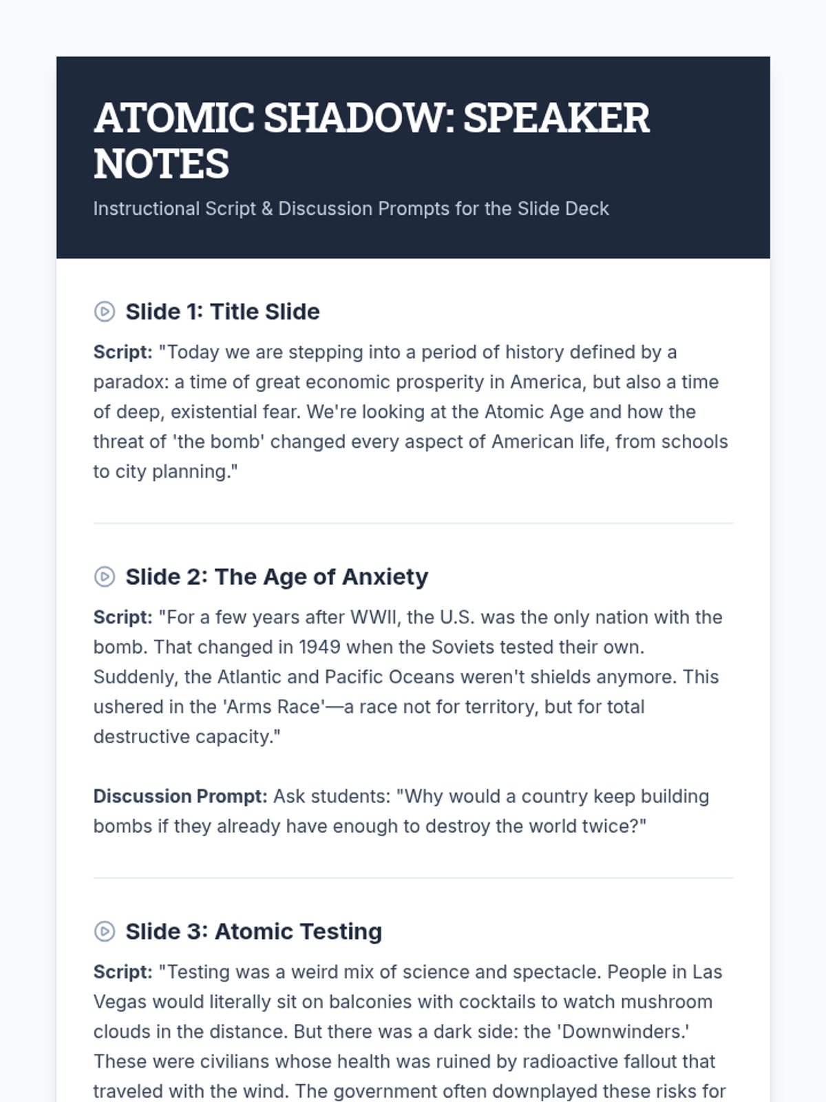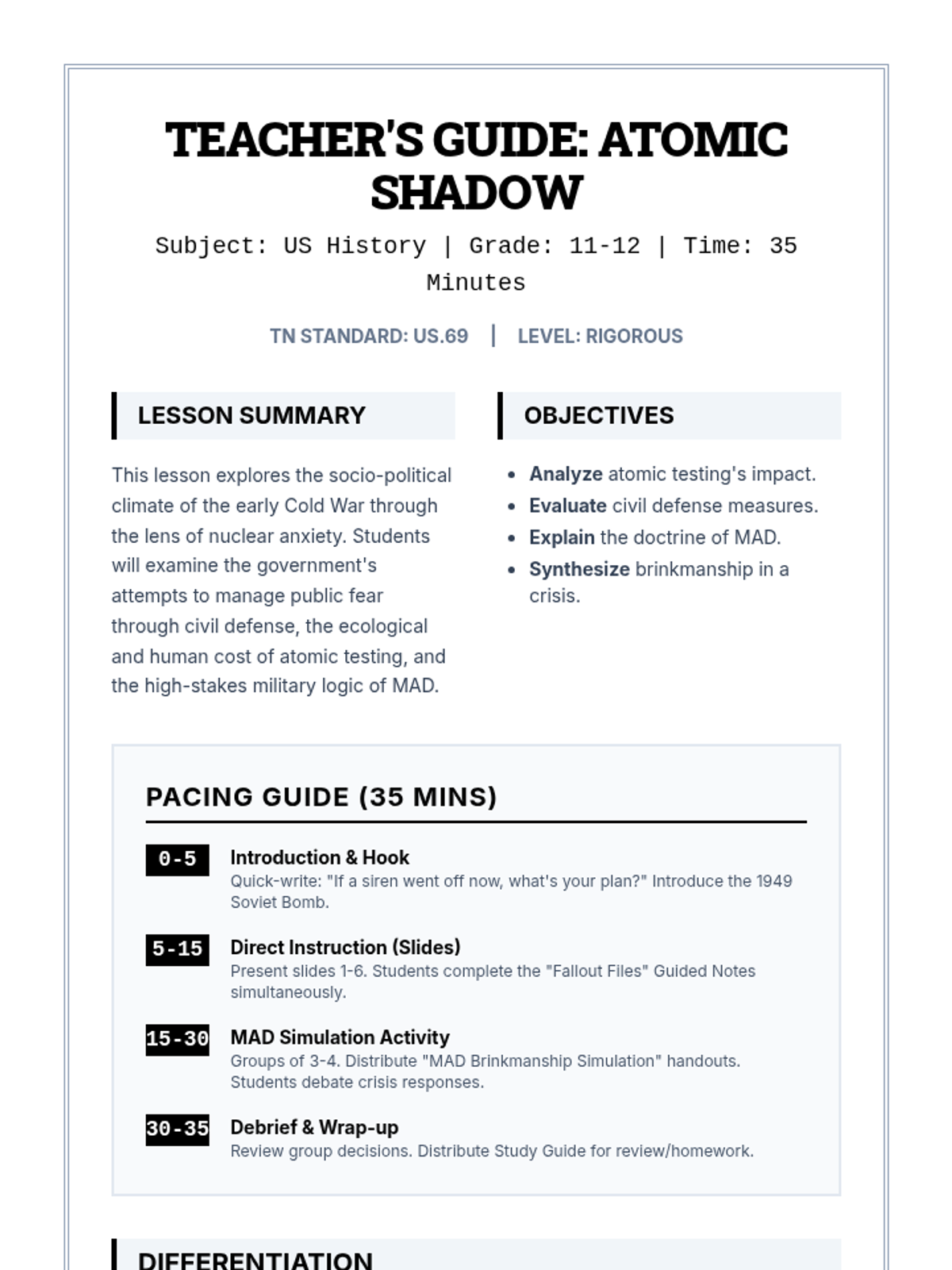 A comprehensive 30-minute lesson on the Second Red Scare, covering McCarthyism, HUAC, the Rosenbergs, and the cultural impact of anti-communist hysteria in 1950s America. Students will analyze primary sources and explore the ethical dilemmas of blacklisting.