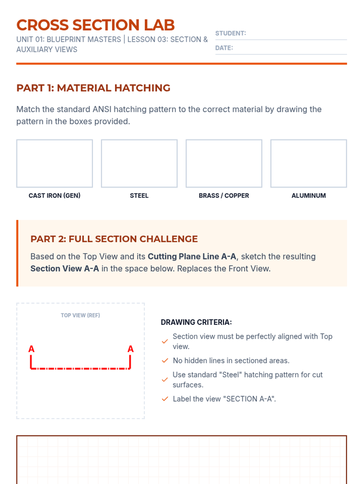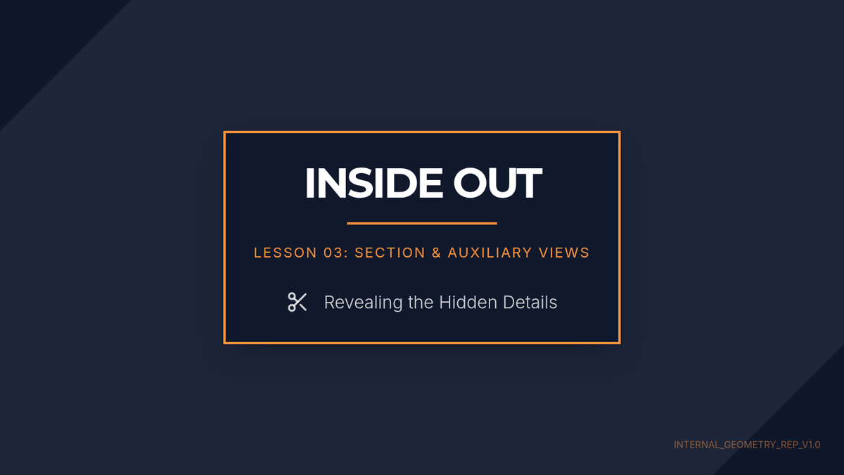 Explore the internal features of parts through section views and accurately represent inclined surfaces with auxiliary views.
