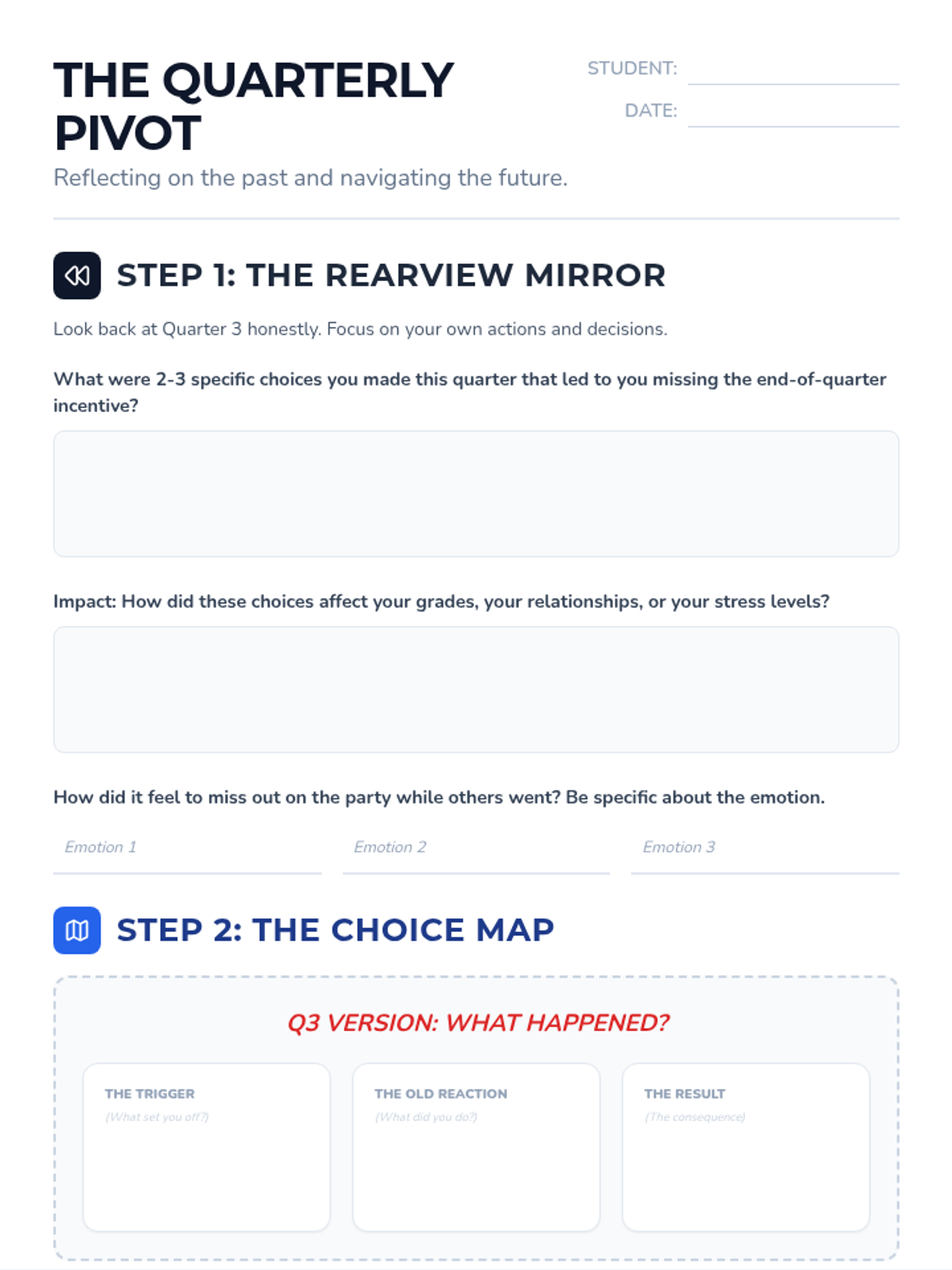 A reflective lesson designed for students who missed an end-of-quarter incentive, focusing on accountability, emotional regulation, and proactive goal setting for the upcoming quarter.