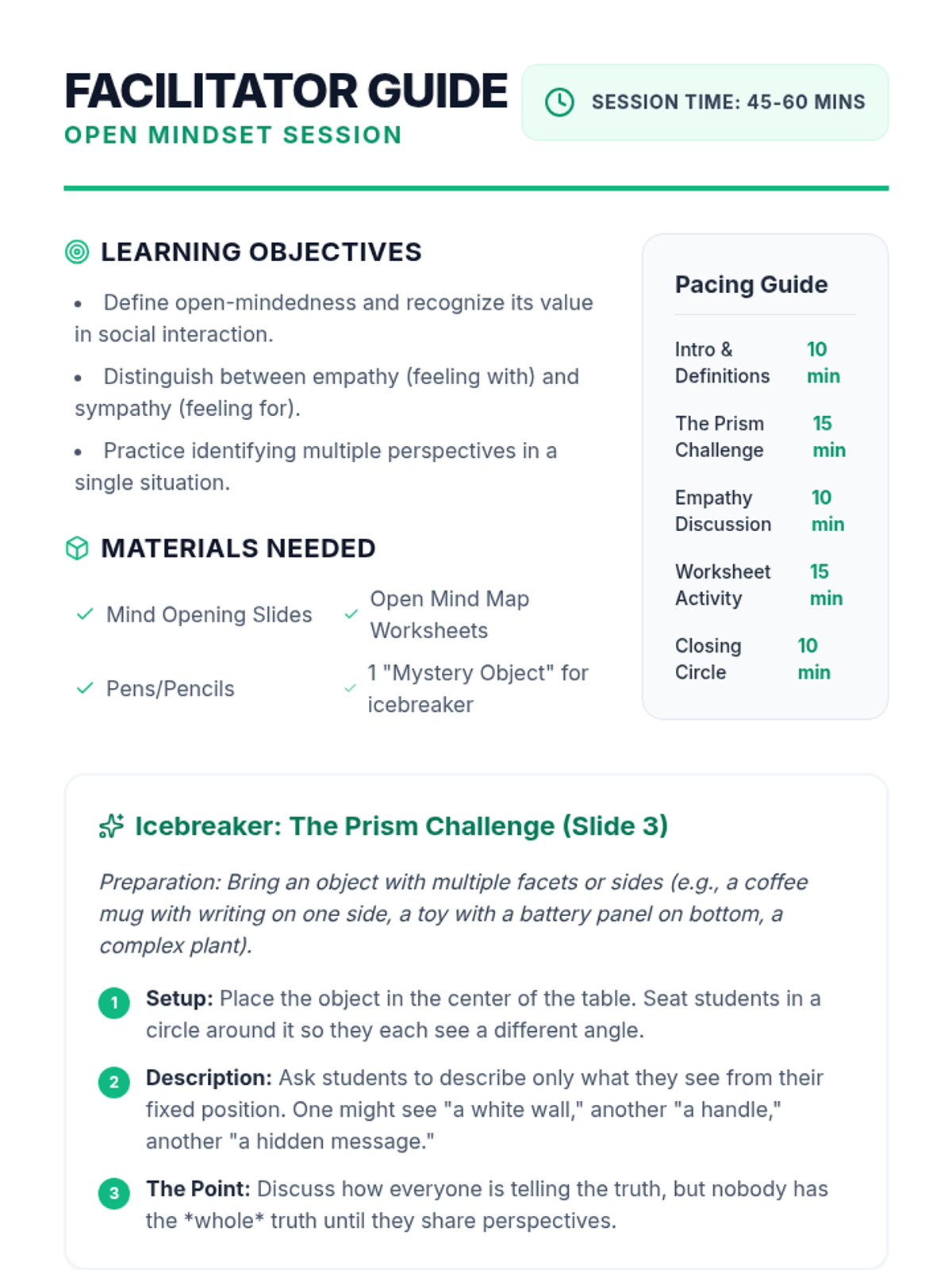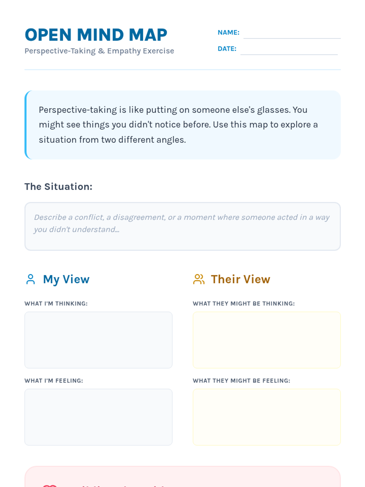 A group counseling session focused on developing empathy and perspective-taking through interactive discussion and creative reflection. Students will explore how different backgrounds and experiences shape how we see the world.