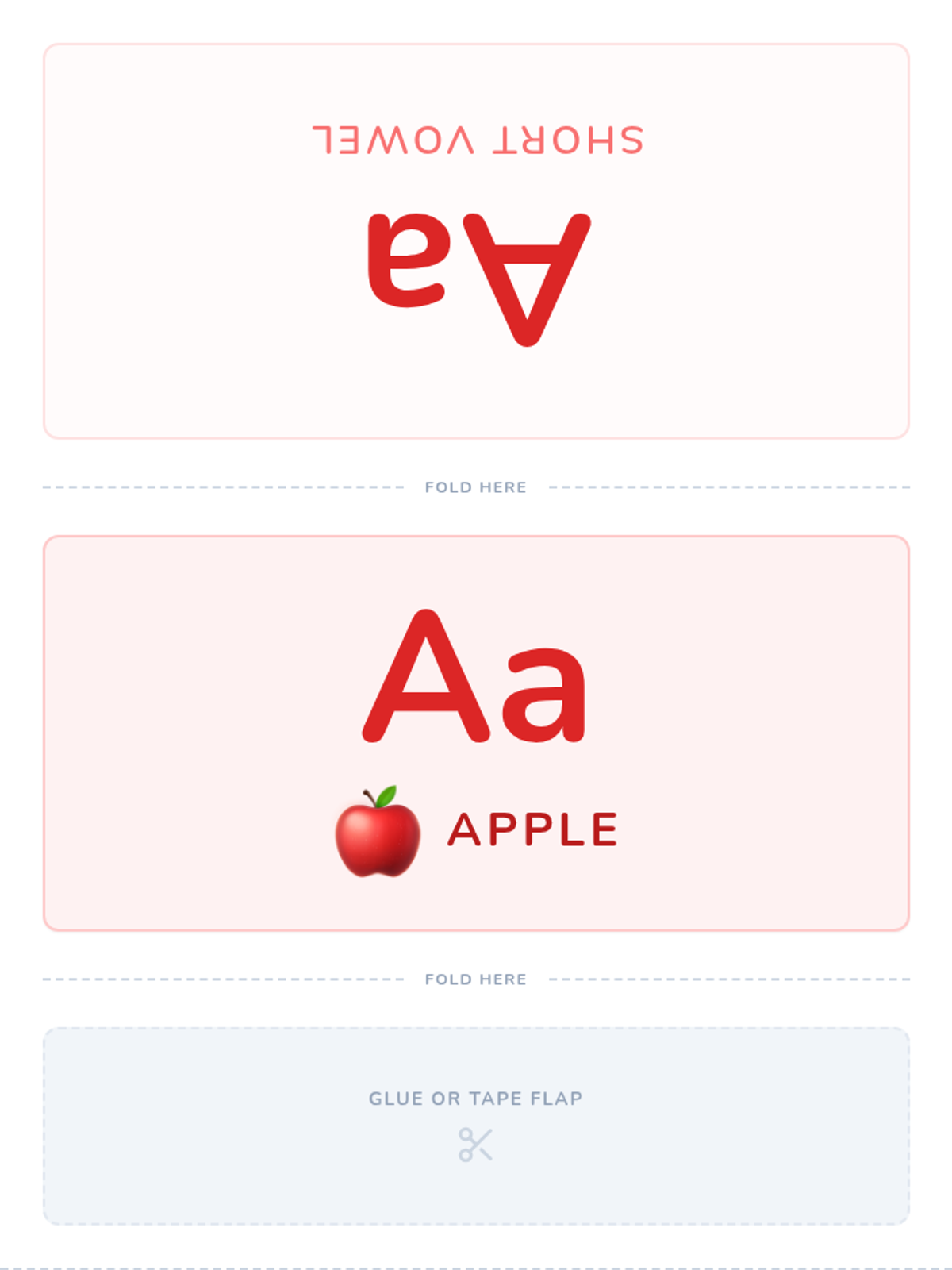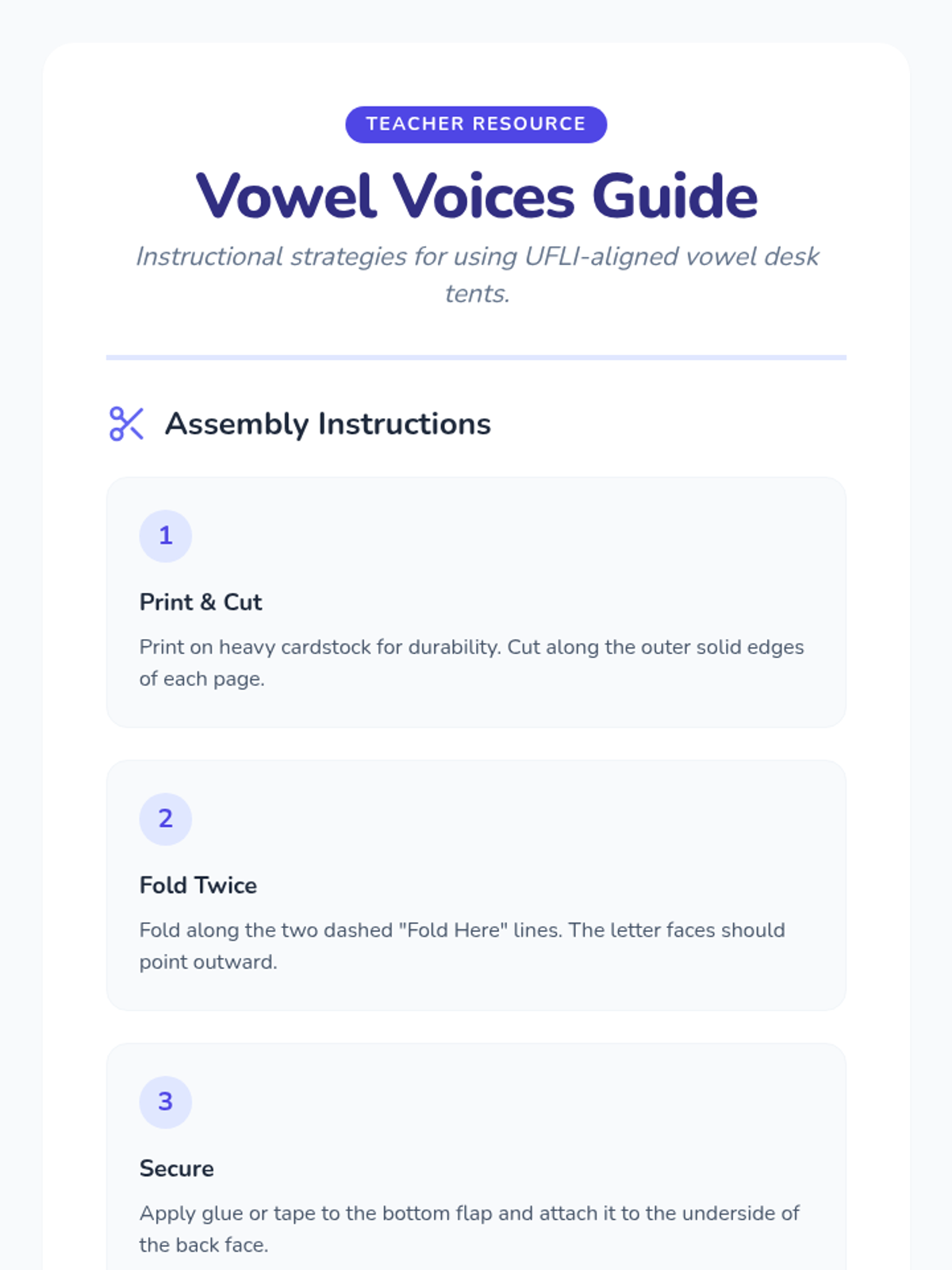 A collection of foldable vowel desk tents designed for phonemic awareness activities and classroom desk displays. Each tent features clear lettering and a visual keyword to help students identify short vowel sounds.