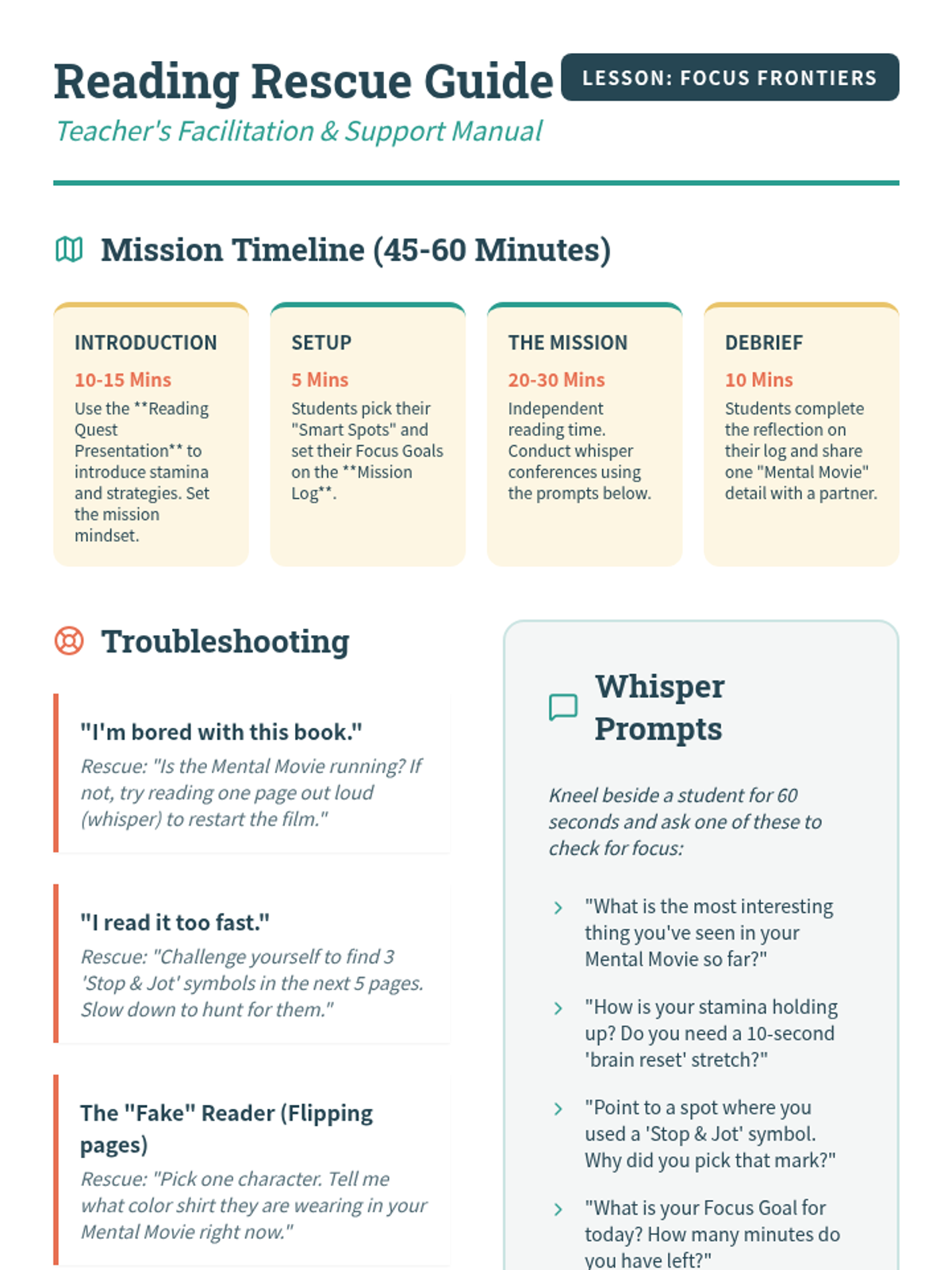 A comprehensive reading unit focused on building independent reading stamina while reinforcing plot summarization and main idea identification. This lesson provides students with a 'quest' framework to make focused reading more engaging.