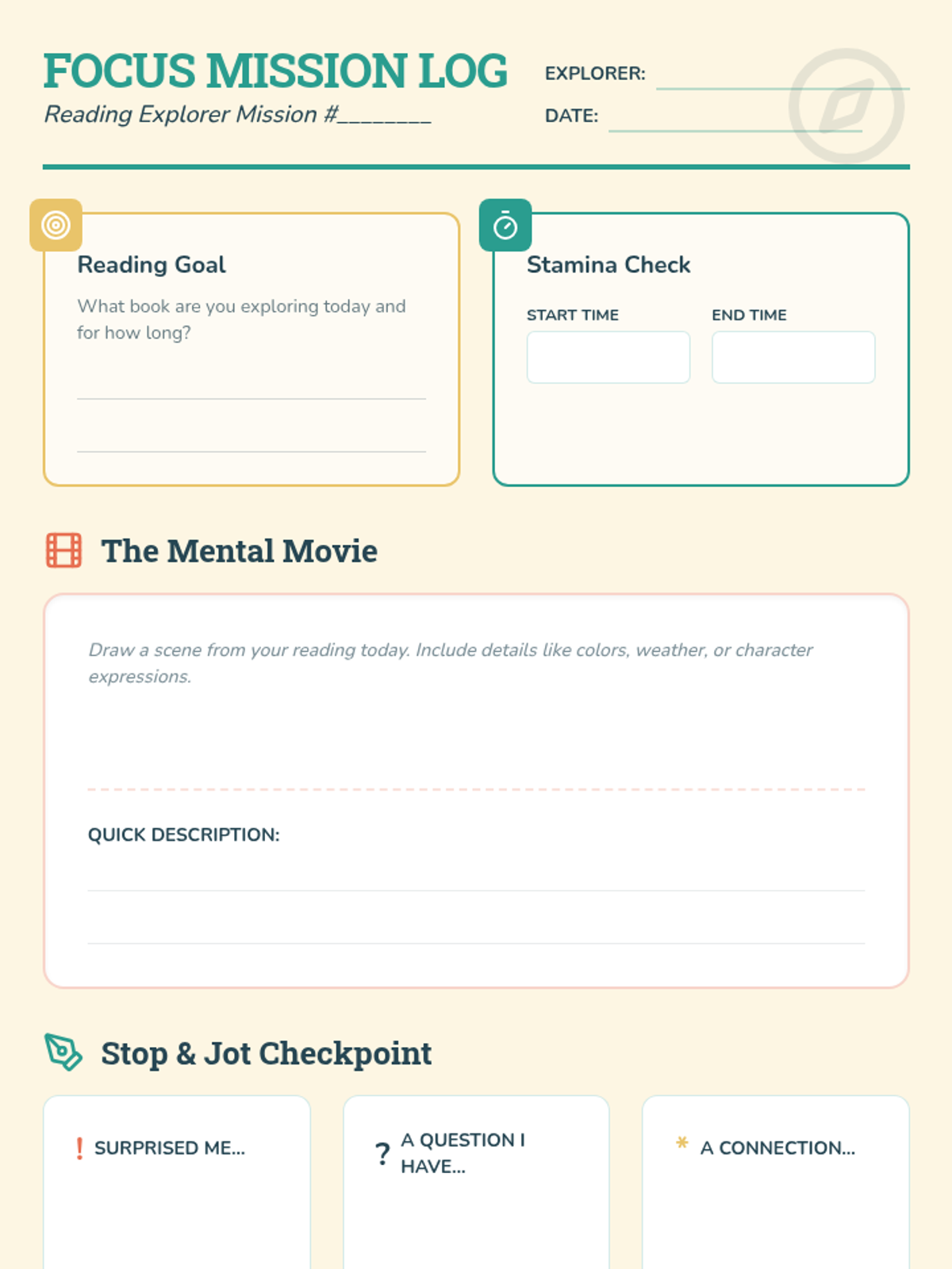 This lesson introduces students to active reading strategies and stamina-building techniques to improve focus and comprehension during independent reading. It uses an 'explorer' theme to frame reading as a mission of discovery.