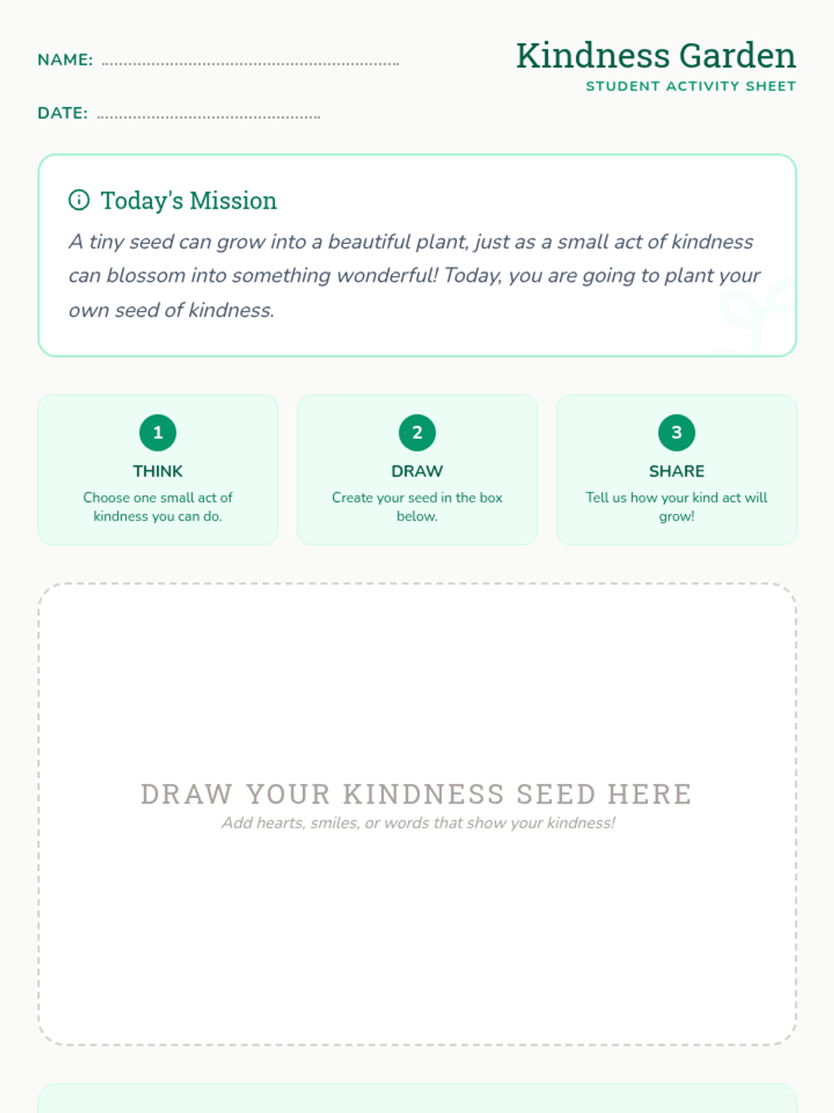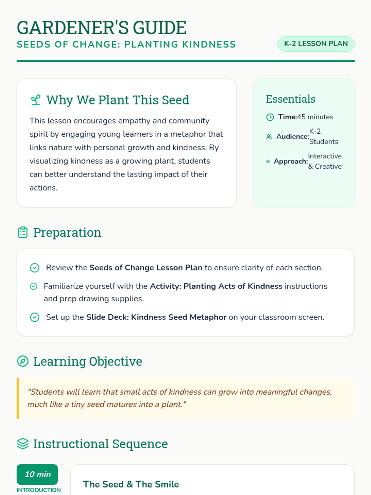 A K-2 lesson that uses the metaphor of planting seeds to teach students about the impact of small acts of kindness and how they grow into meaningful changes.