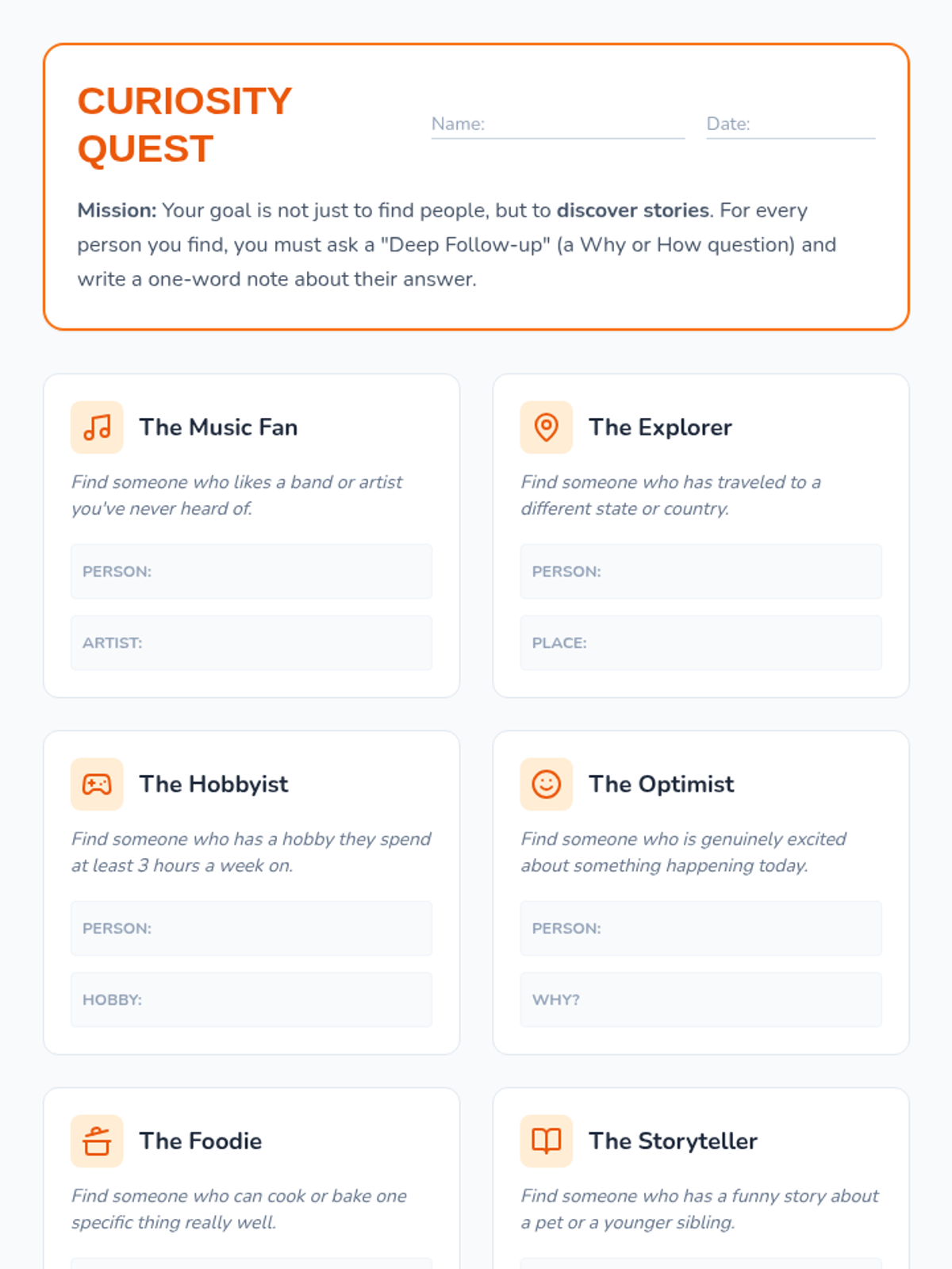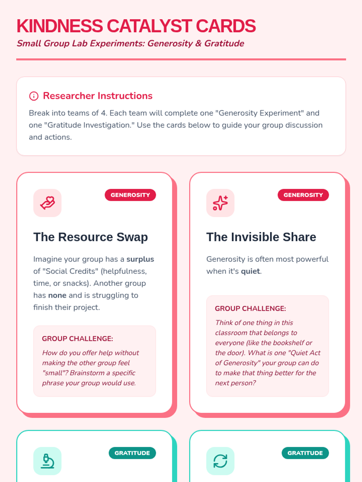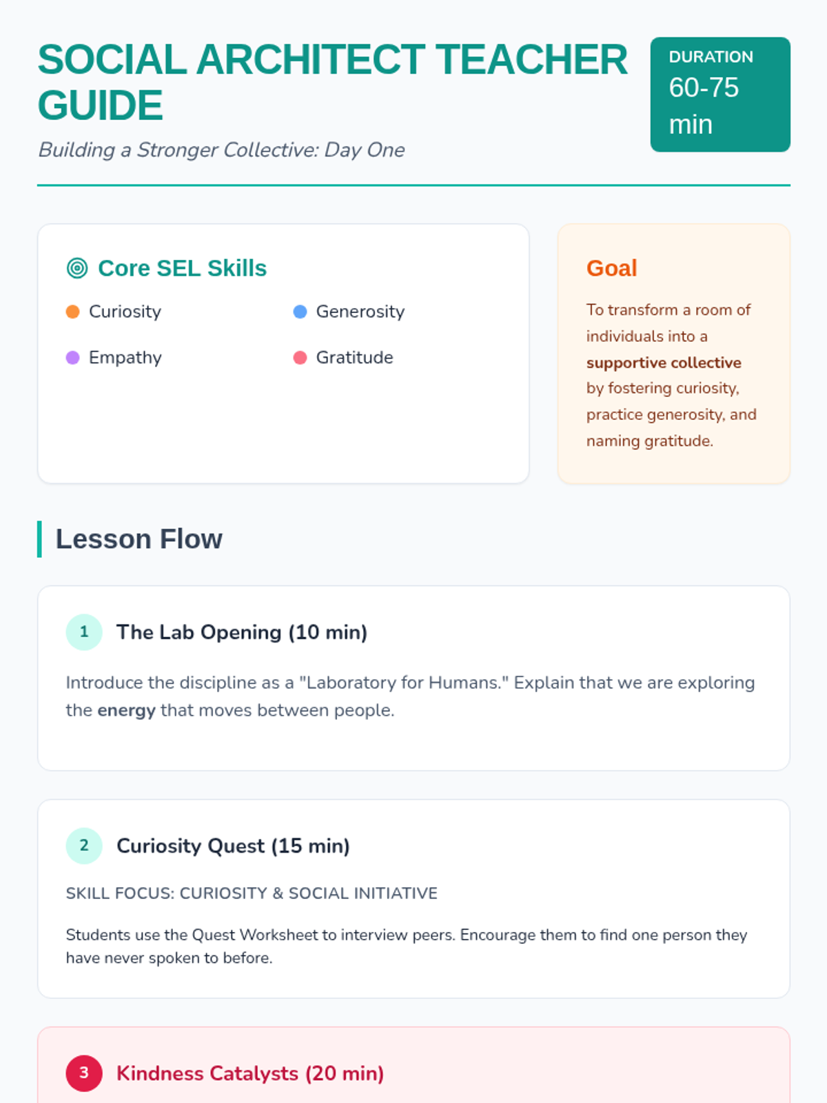 An introductory socio-emotional learning lesson focused on building community, practicing social initiative, and fostering empathy through collaborative games and discussion.