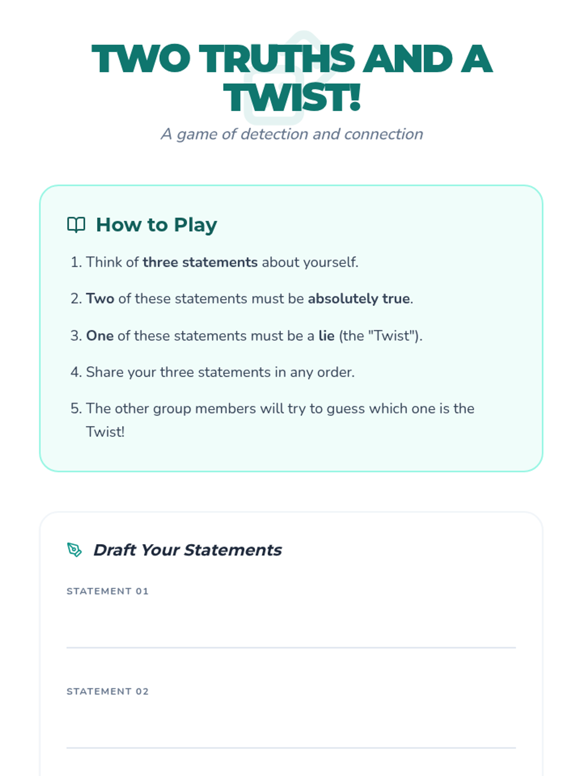 Practical team-based synergy challenges to apply collaborative problem-solving skills.