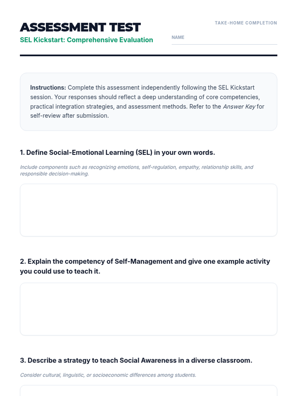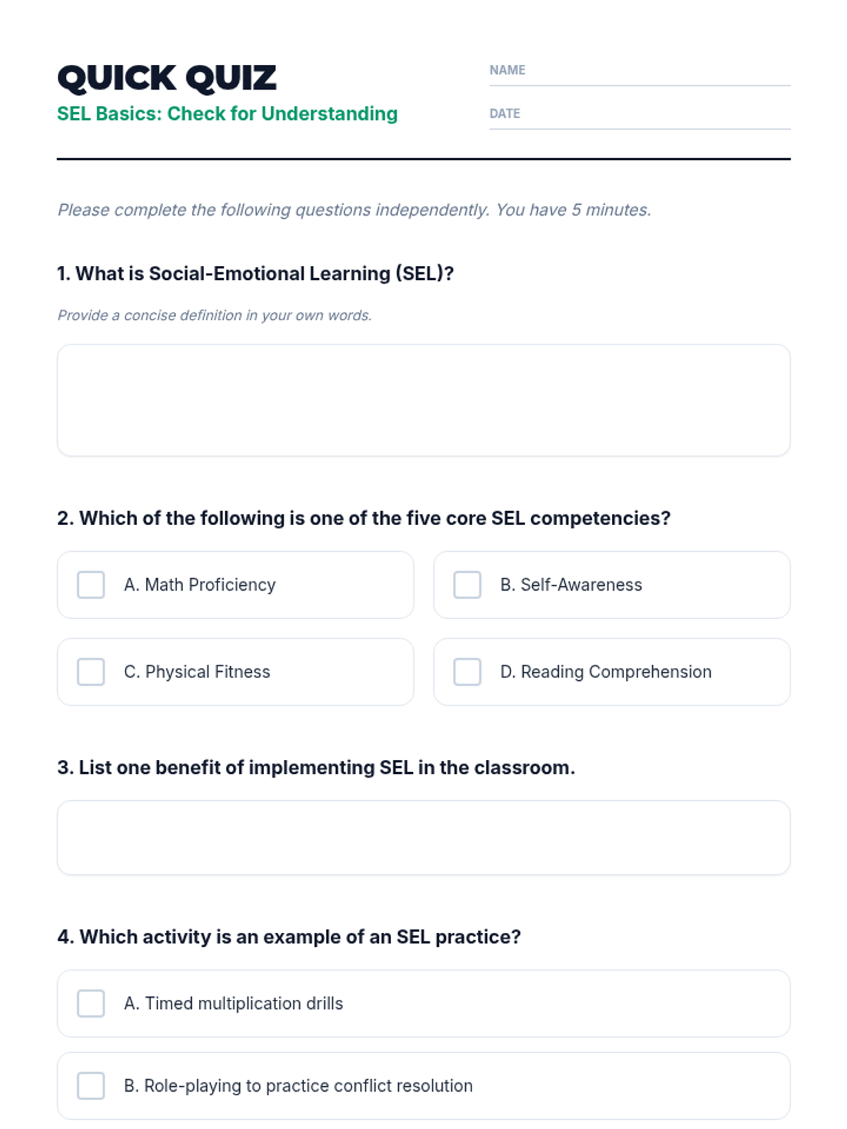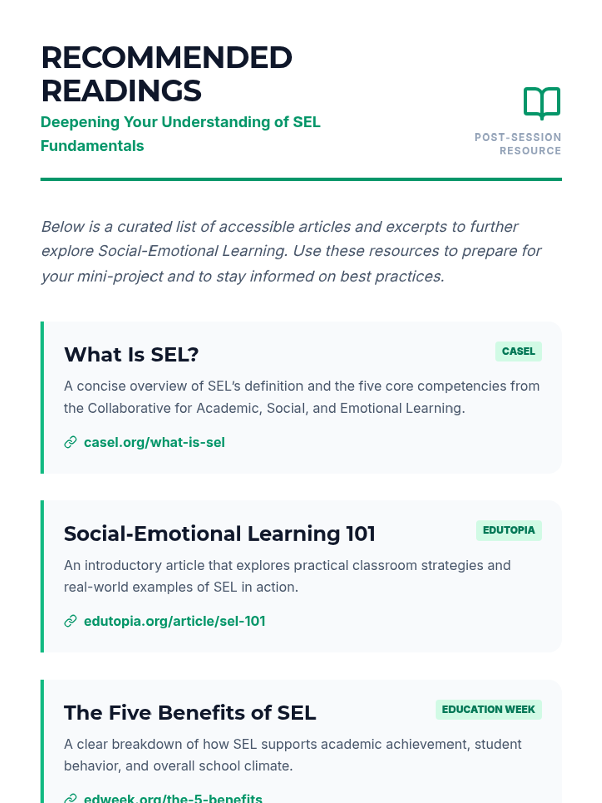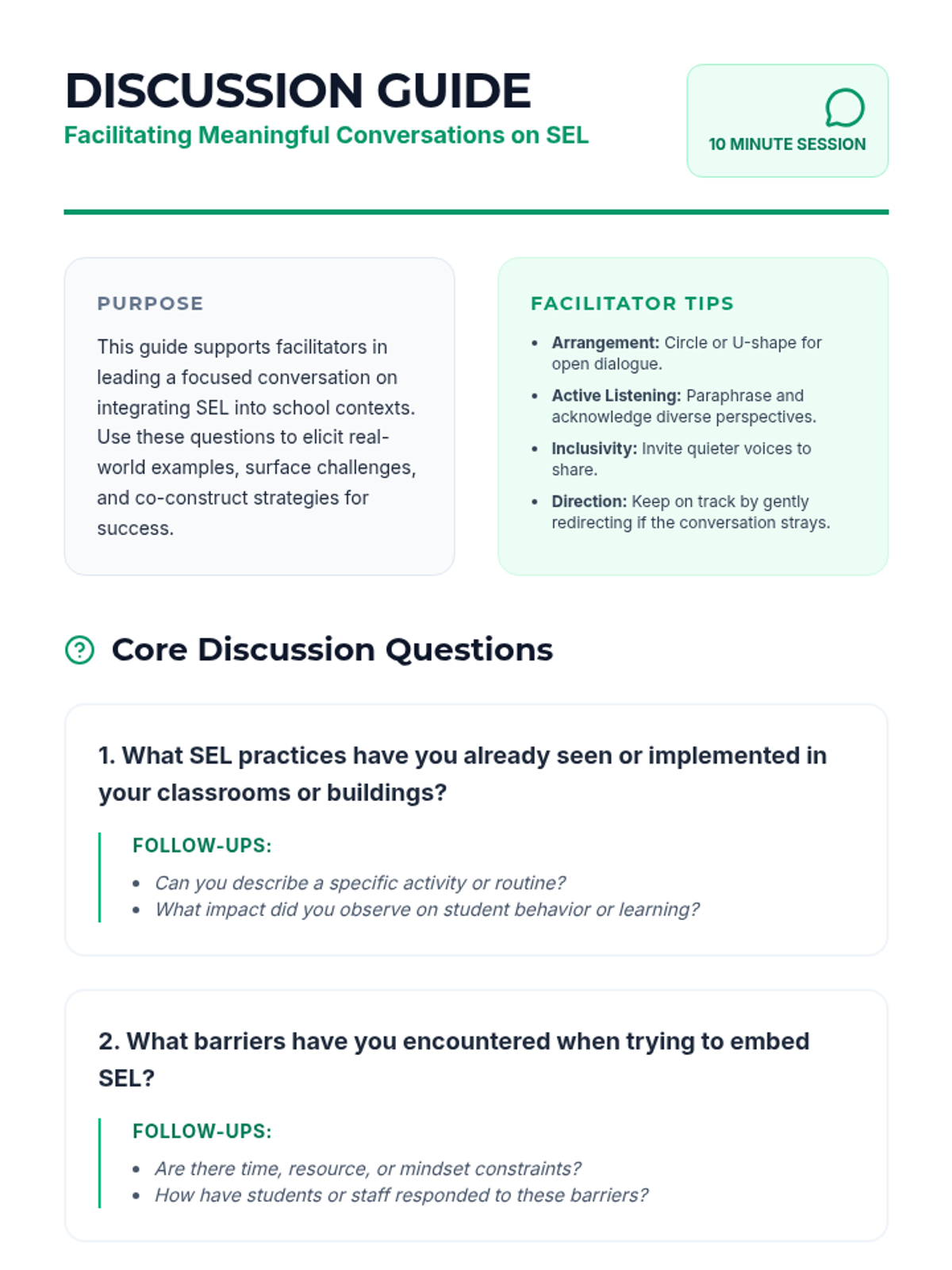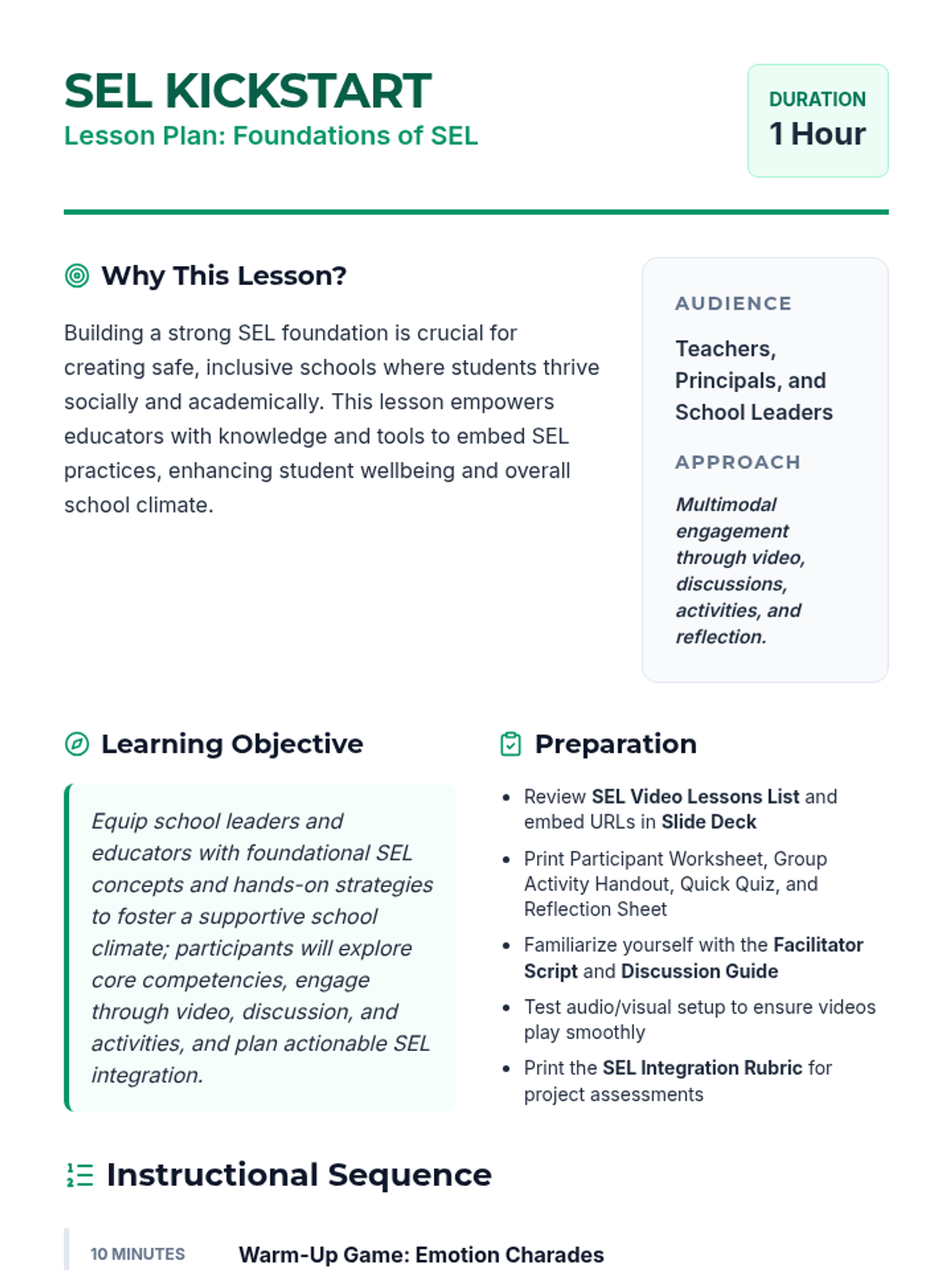 This 1-hour introductory lesson on Social-Emotional Learning (SEL) equips teachers, principals, and school leaders with foundational knowledge and practical strategies to foster a supportive school climate.
