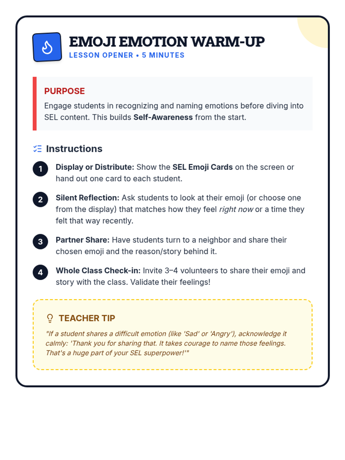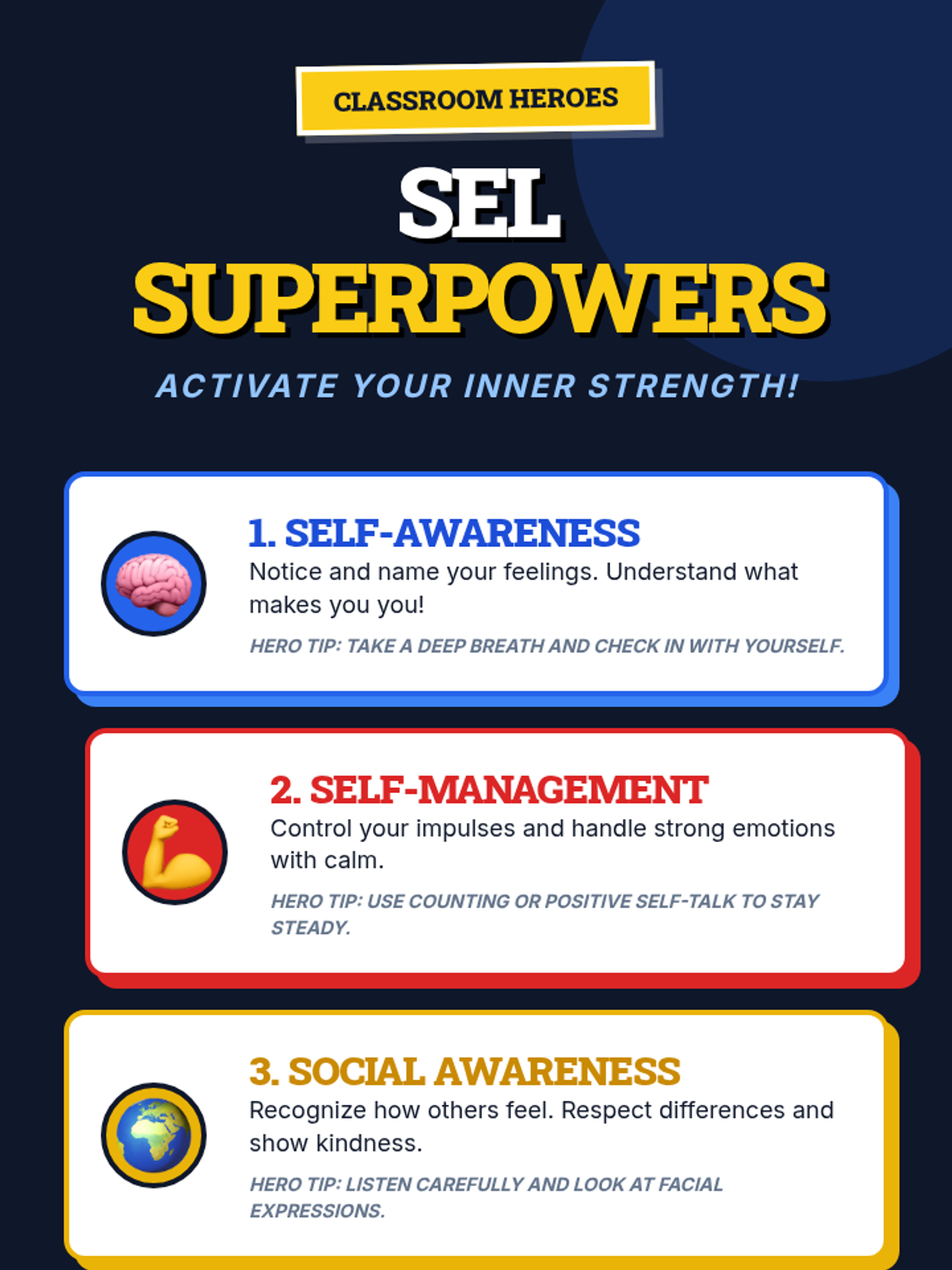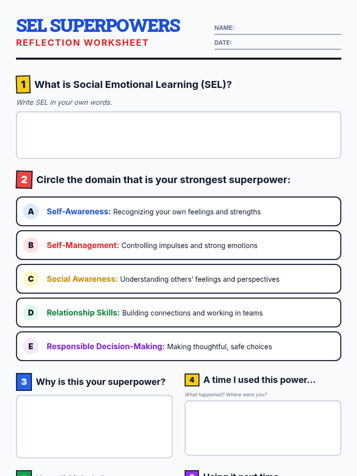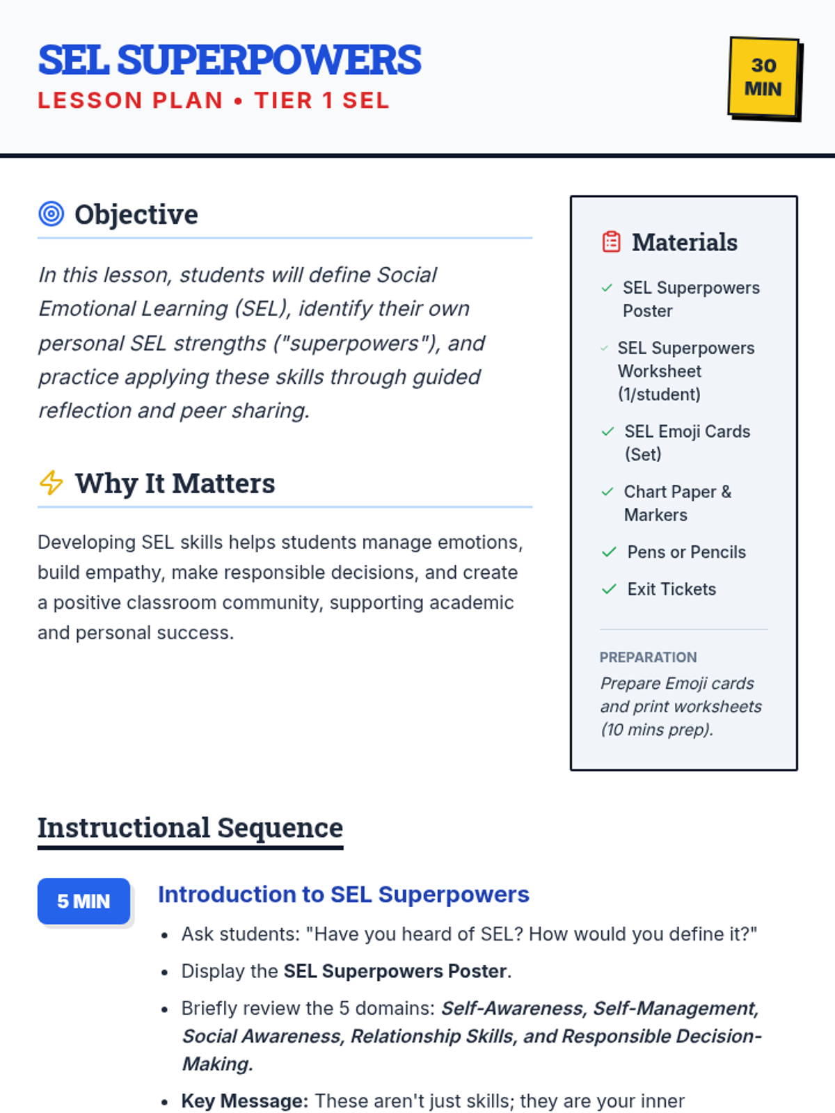 In this 30-minute foundational Tier 1 lesson, 5th graders explore Social Emotional Learning (SEL), discover their own SEL 'superpowers,' and understand how managing emotions, empathy, and decision-making can help them in school and life.