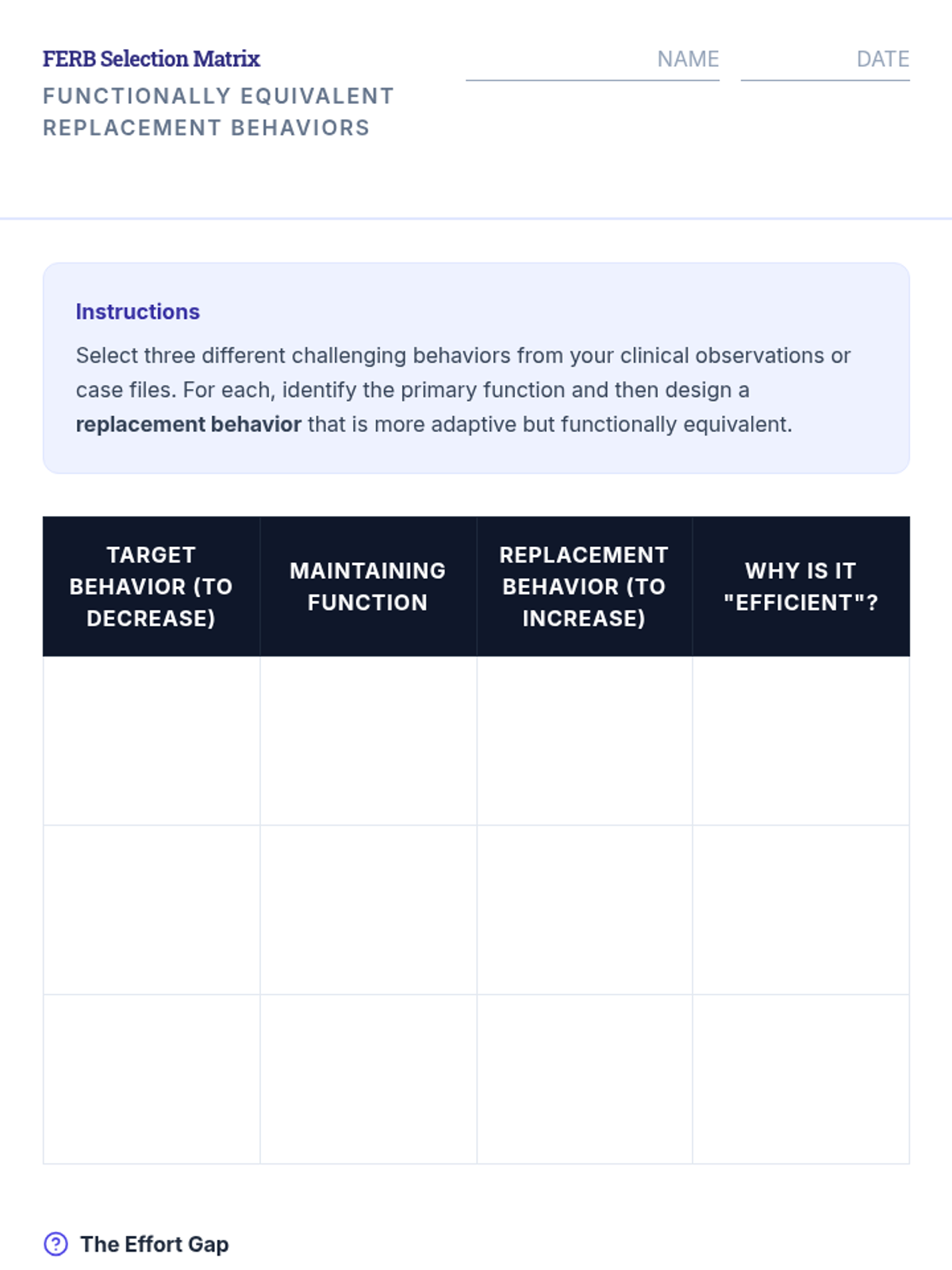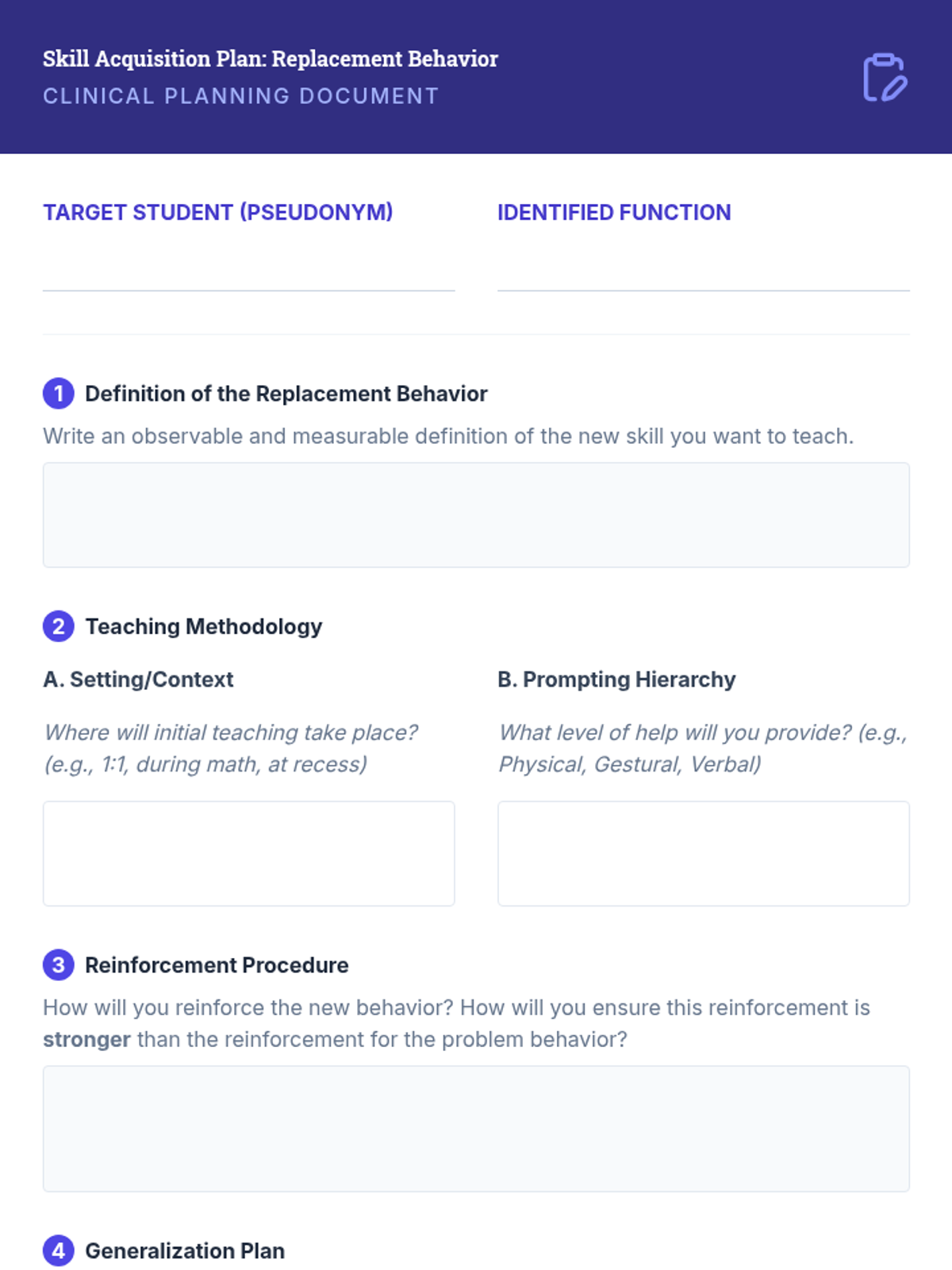 Students learn to select replacement behaviors that serve the same function as challenging behaviors but are more adaptive and socially valid.