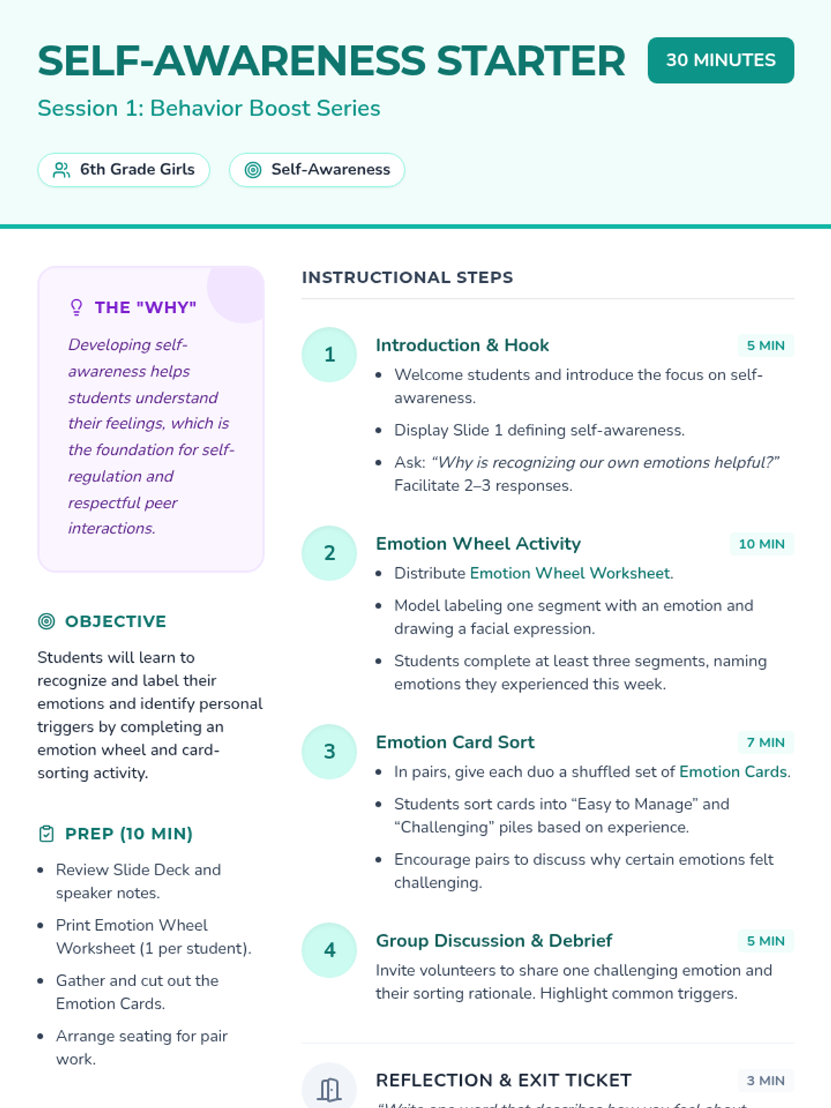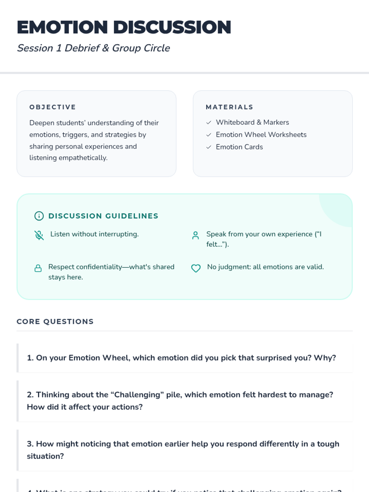 Students will learn to recognize and label their emotions and identify personal triggers through interactive activities.