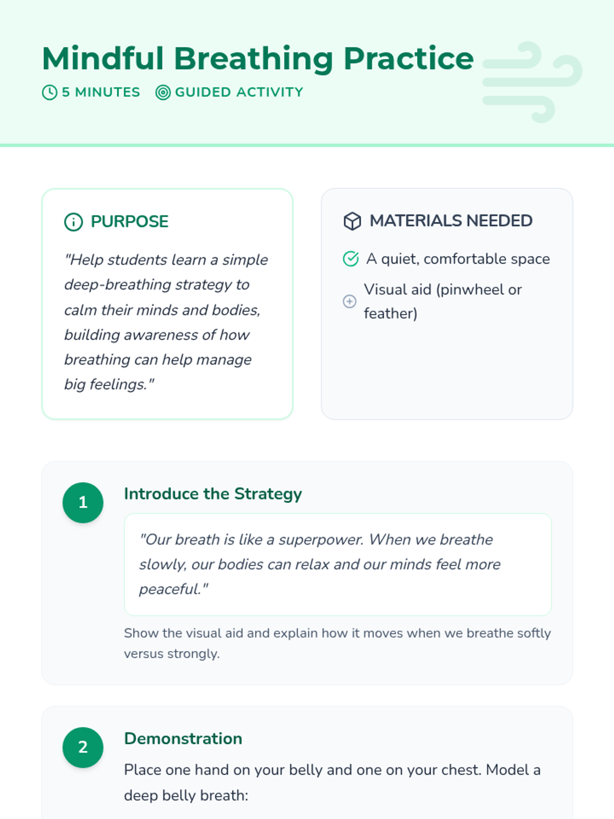Students learn the 1+3+4 breathing technique to manage anger and frustration.