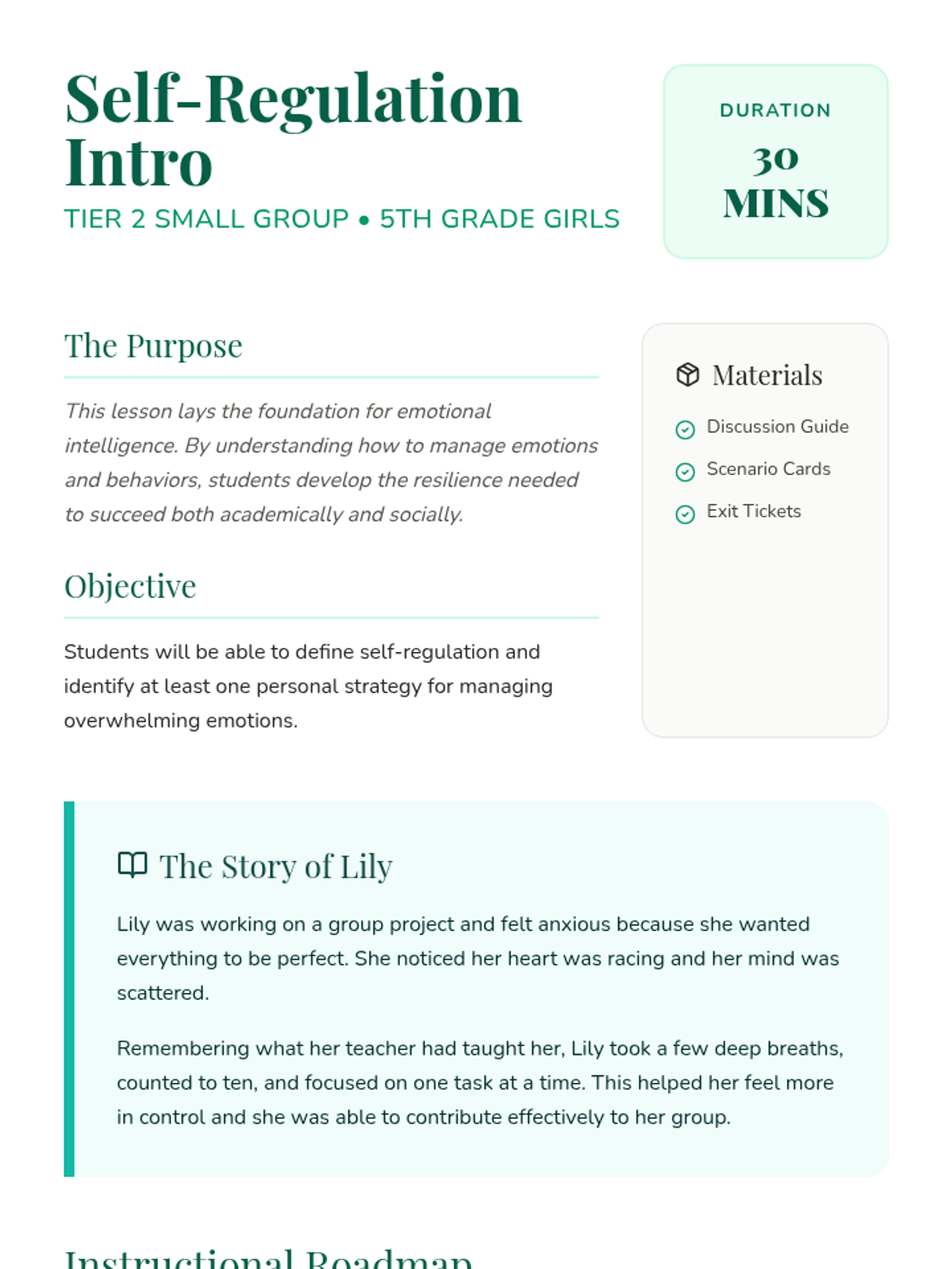 This lesson introduces 5th-grade girls to self-regulation skills through discussion, storytelling, and collaborative scenario-based activities. It builds foundational emotional intelligence to help students manage behaviors and feelings in academic and social settings.