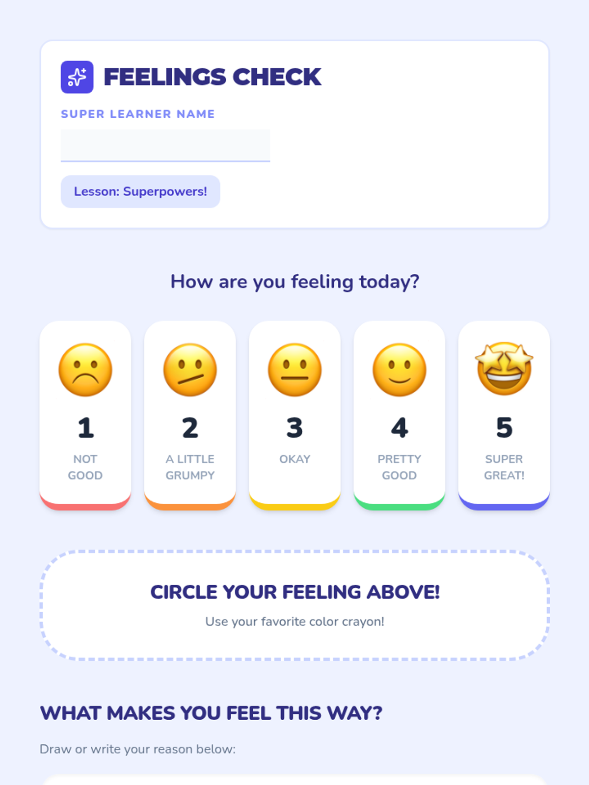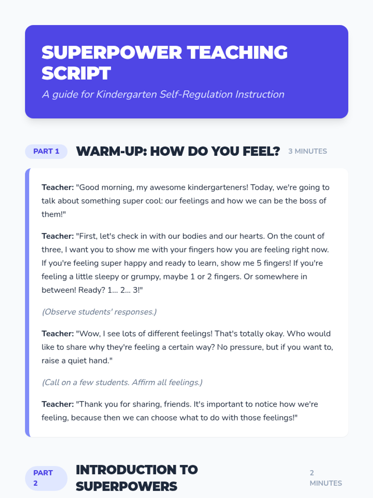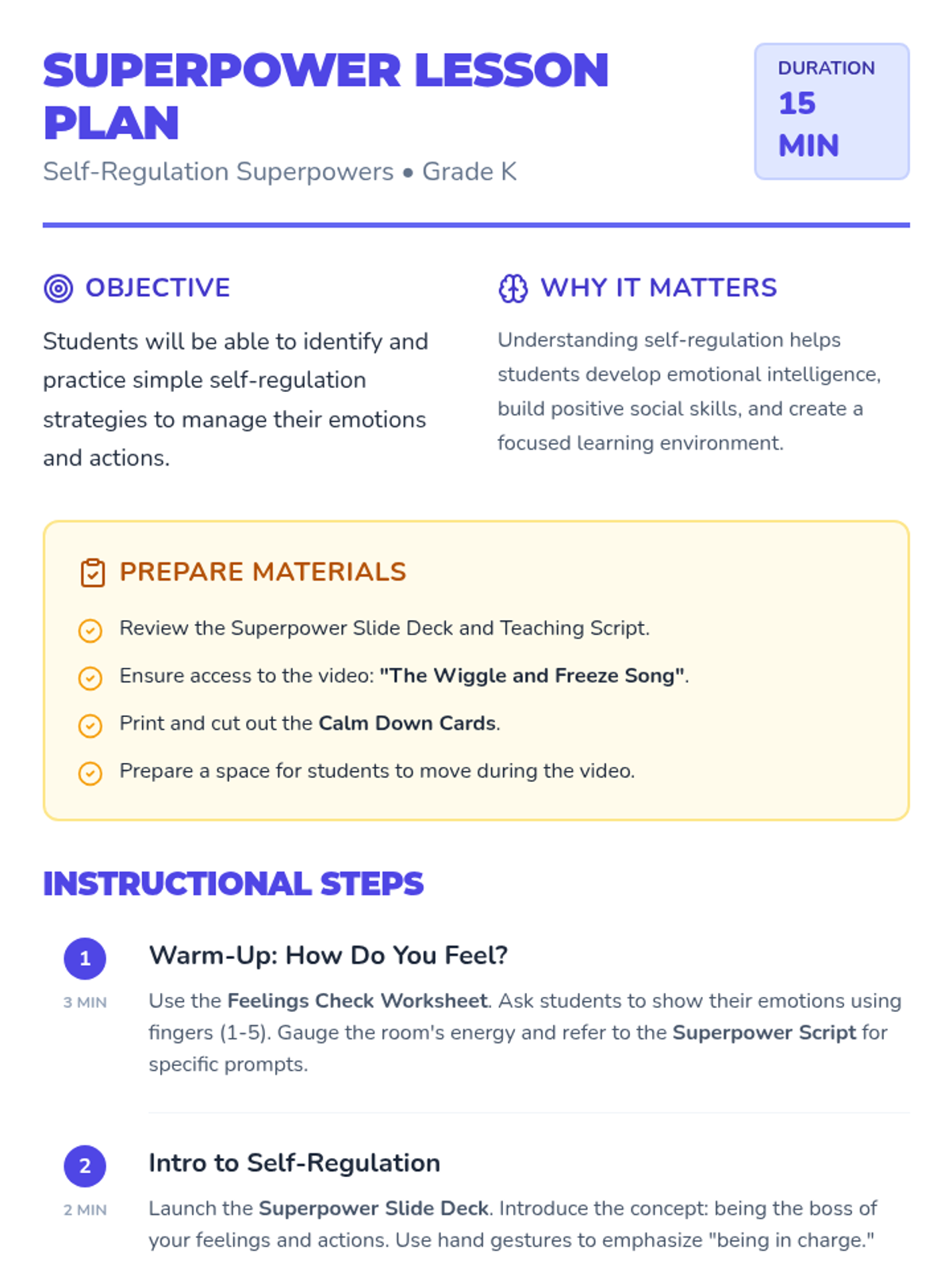 A 15-minute Kindergarten lesson introducing self-regulation as a 'superpower' using videos, movement, and interactive tools.