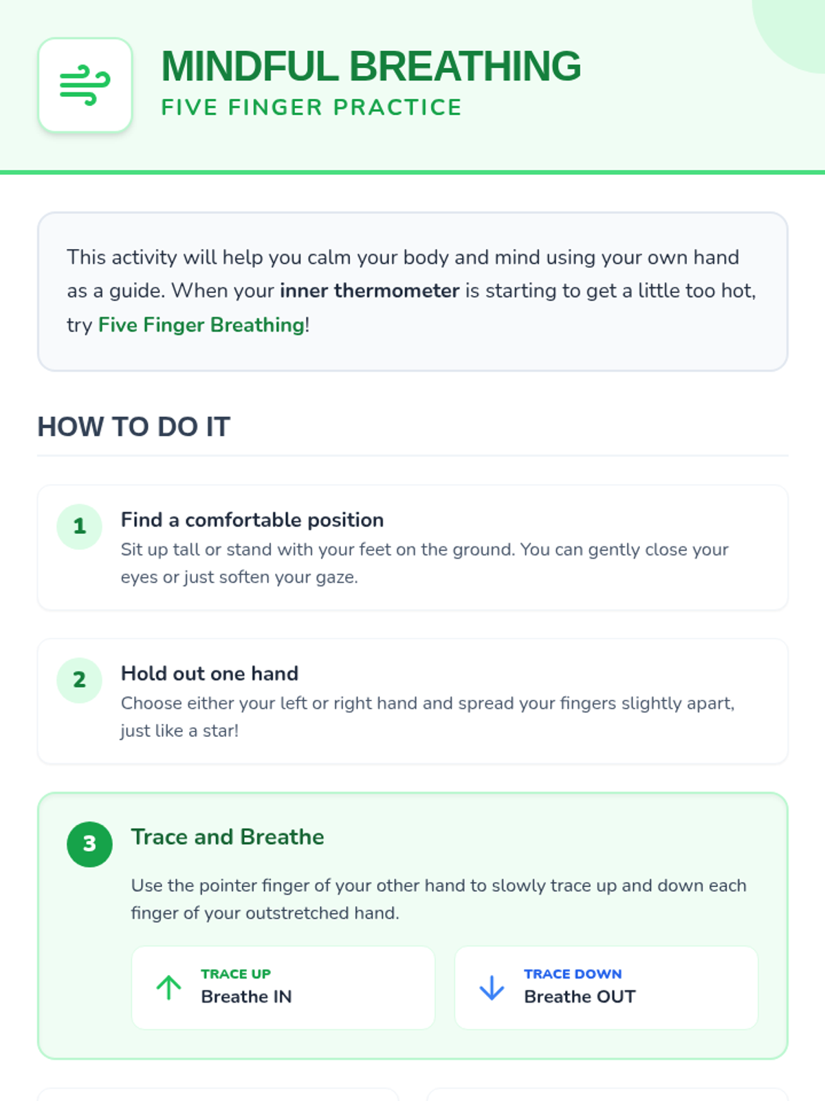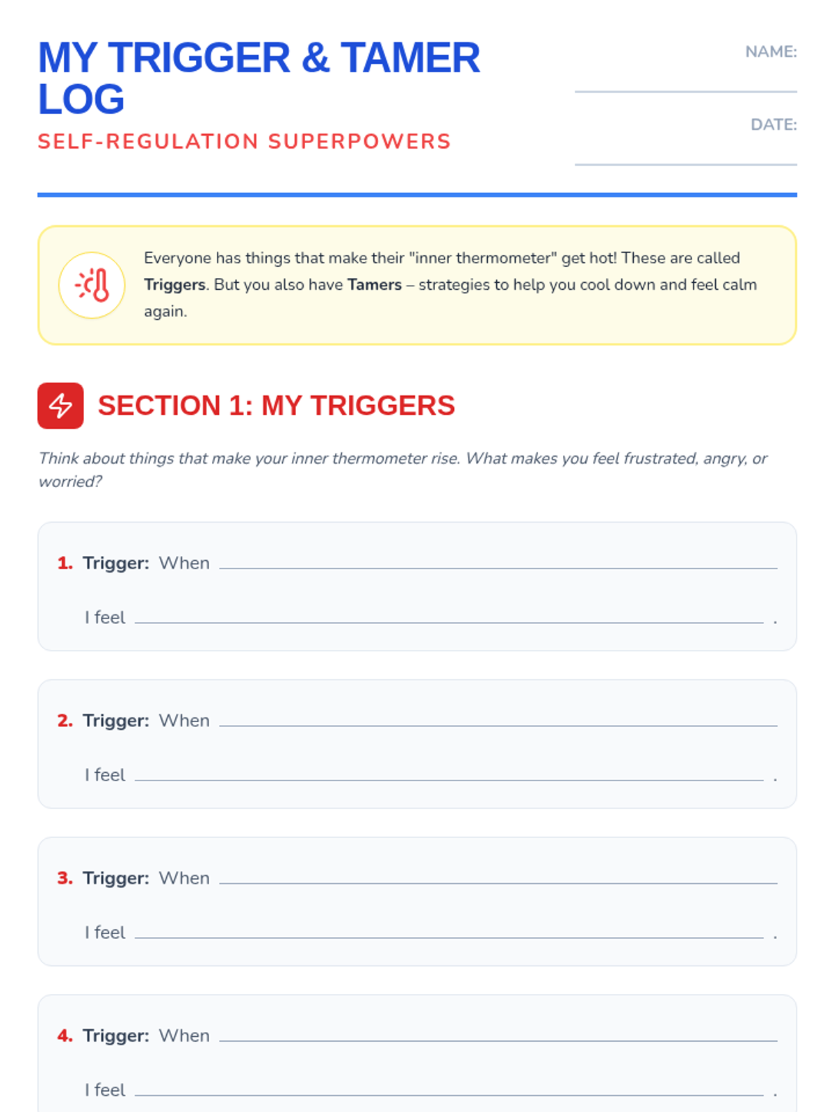Students identify the physical sensations of frustration and learn to recognize their personal 'early warning signs' before they reach a boiling point.