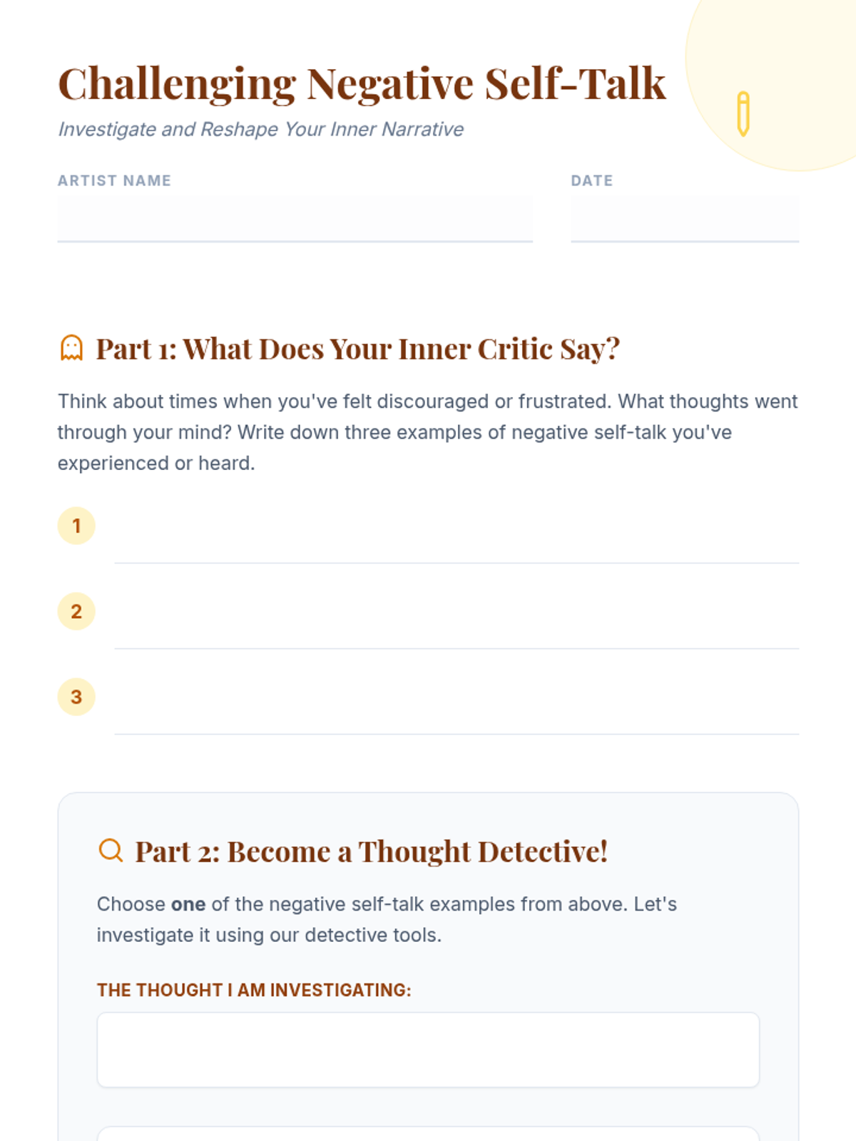 This lesson empowers middle school students to recognize and reshape their inner dialogue, fostering positive self-concept and resilience through interactive journaling and creative reflection.