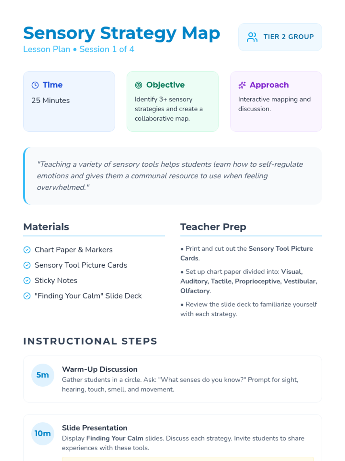 Students explore the six sensory systems and identify specific strategies to help them feel calm and focused using a collaborative mapping activity.