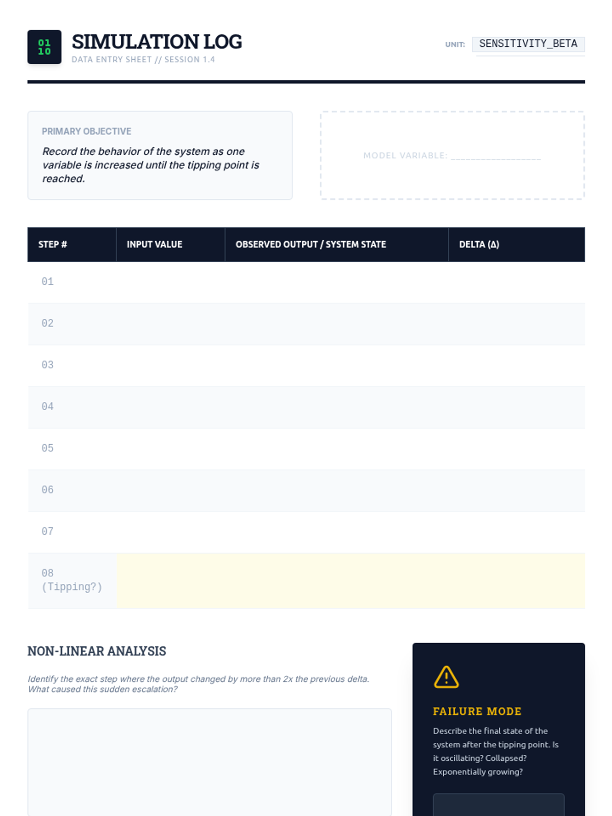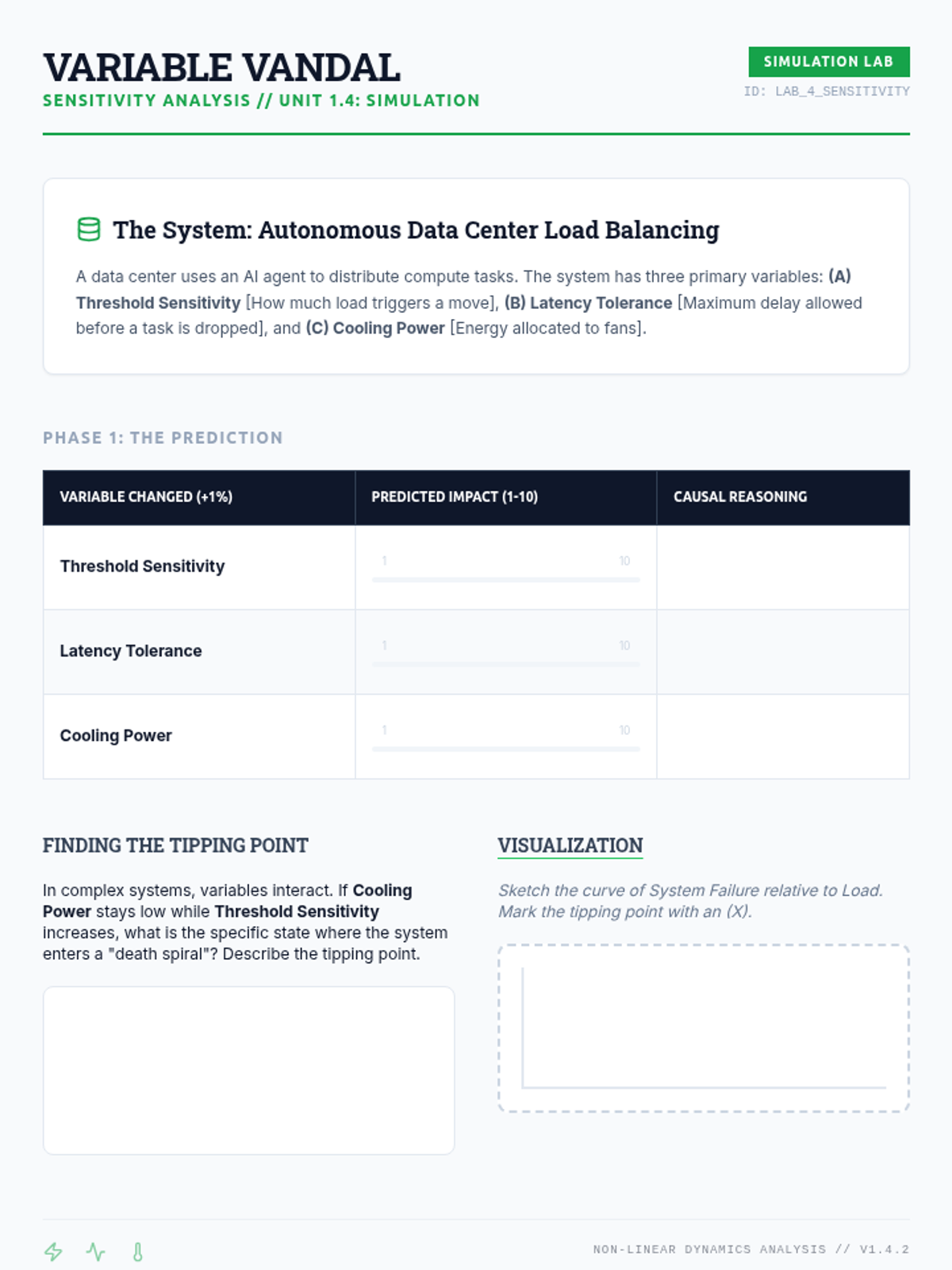 A hands-on simulation lesson focused on variable sensitivity, non-linear impacts, and system tipping points in engineering design.