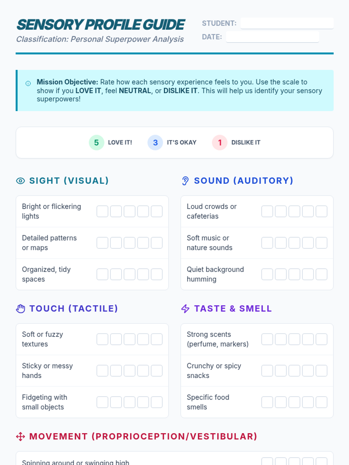 A comprehensive set of resources for parents of junior high and high school students, focusing on proprioception, sensory seeking behaviors, and practical home-based strategies.