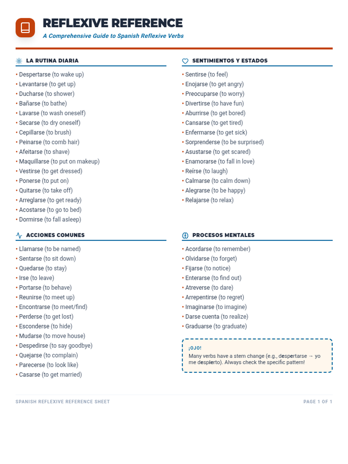 This lesson introduces students to reflexive verbs in Spanish, focusing on the pronouns me, te, se, and nos within the context of daily routines. Students will learn the mechanics of conjugation and how to describe their personal actions.