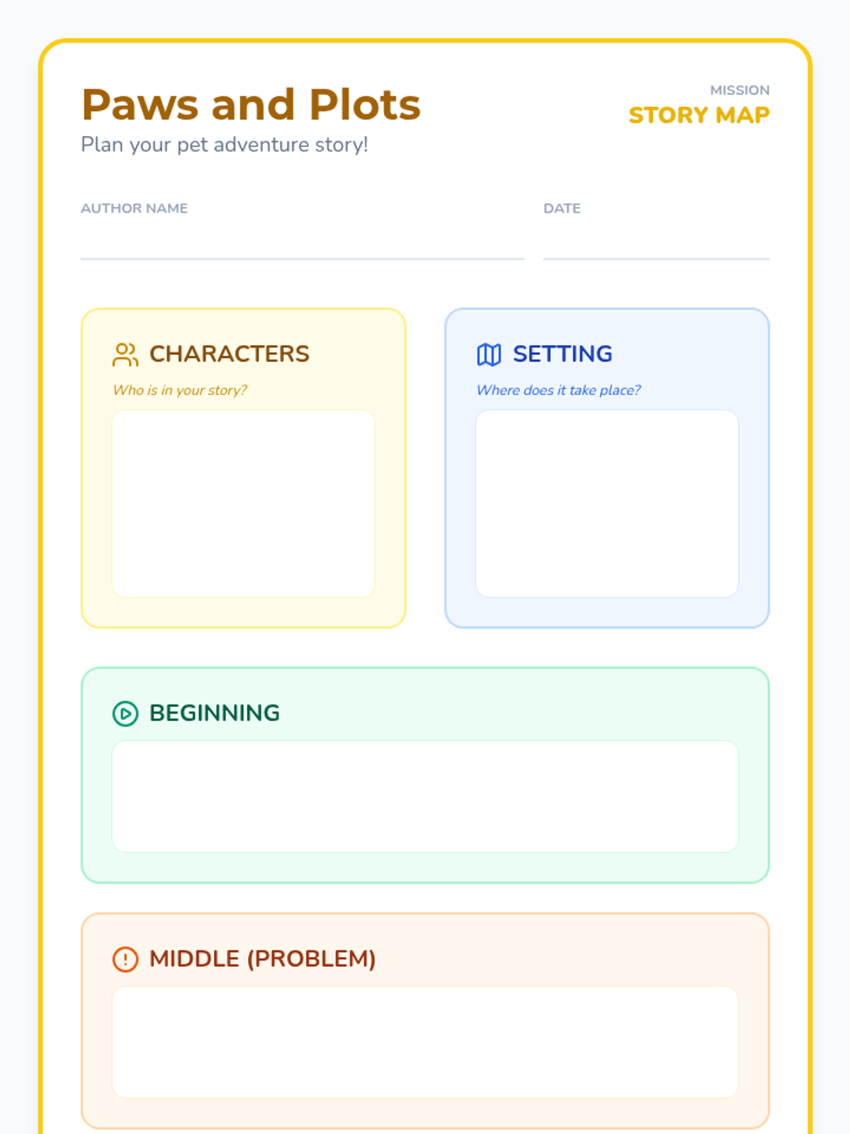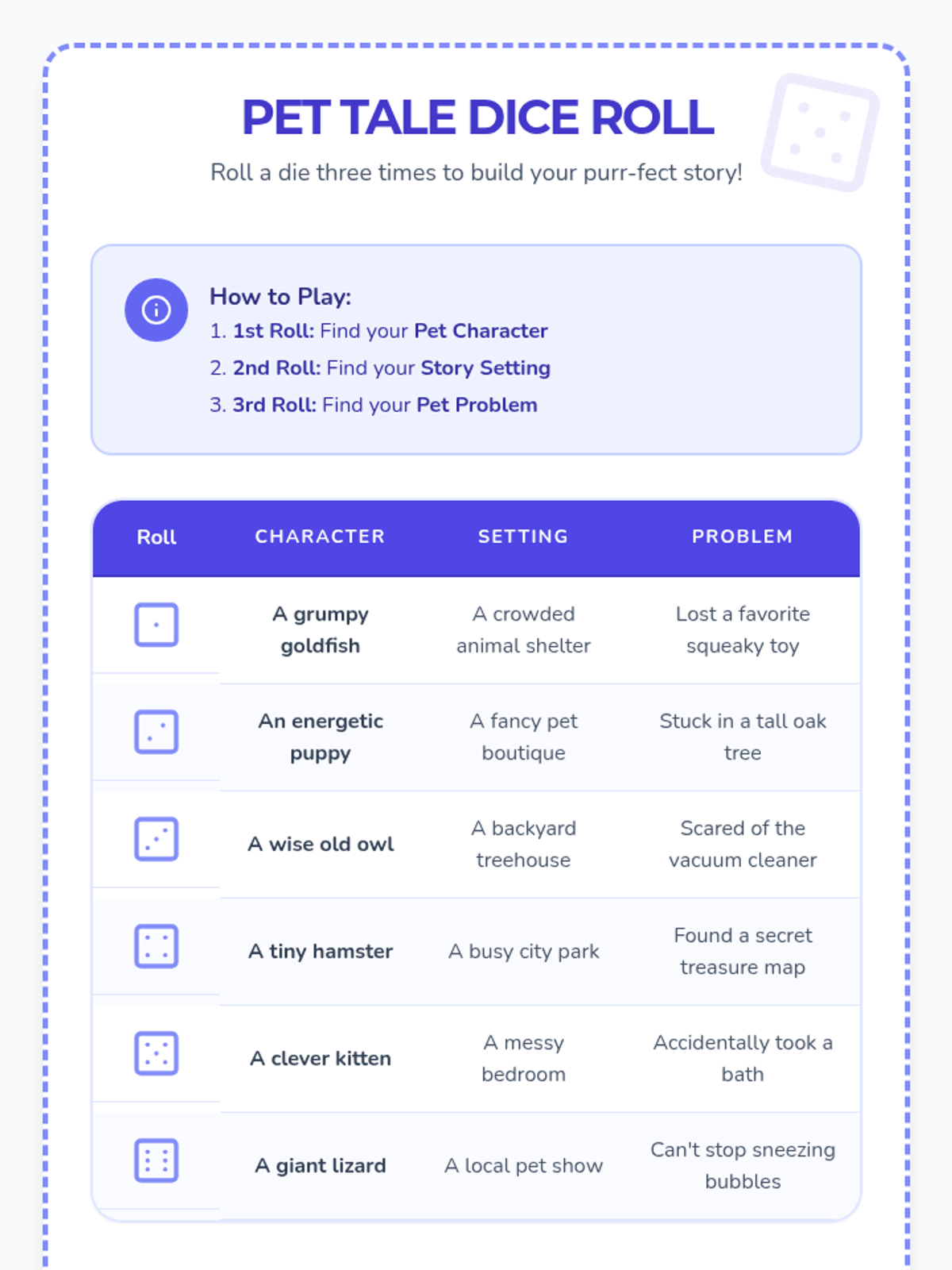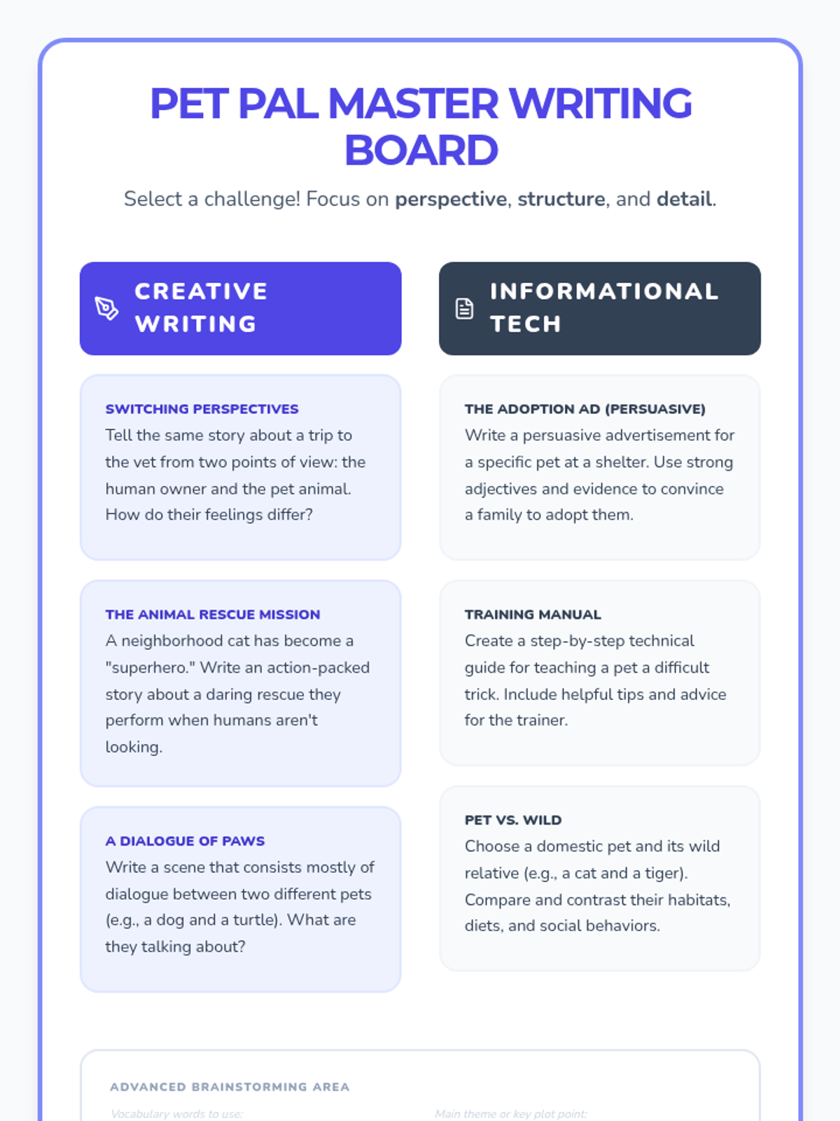 A collection of pet-themed literacy resources for a family literacy night, focusing on reading engagement, vocabulary building, and creative storytelling about animal companions.