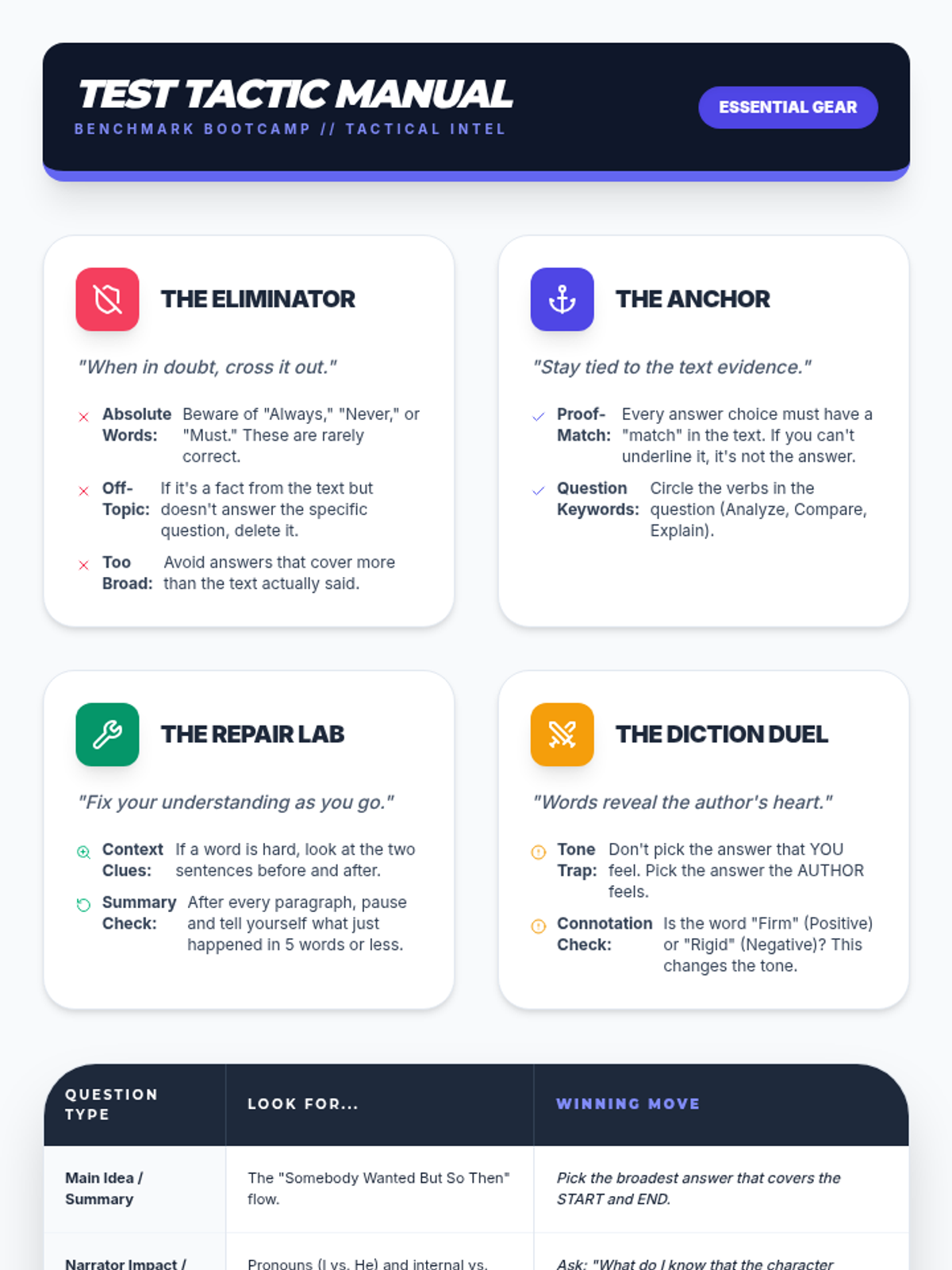 Intensive test preparation materials designed to mimic the format and rigor of STAR 360 and OSAS assessments, focusing on strategic elimination and evidence retrieval.