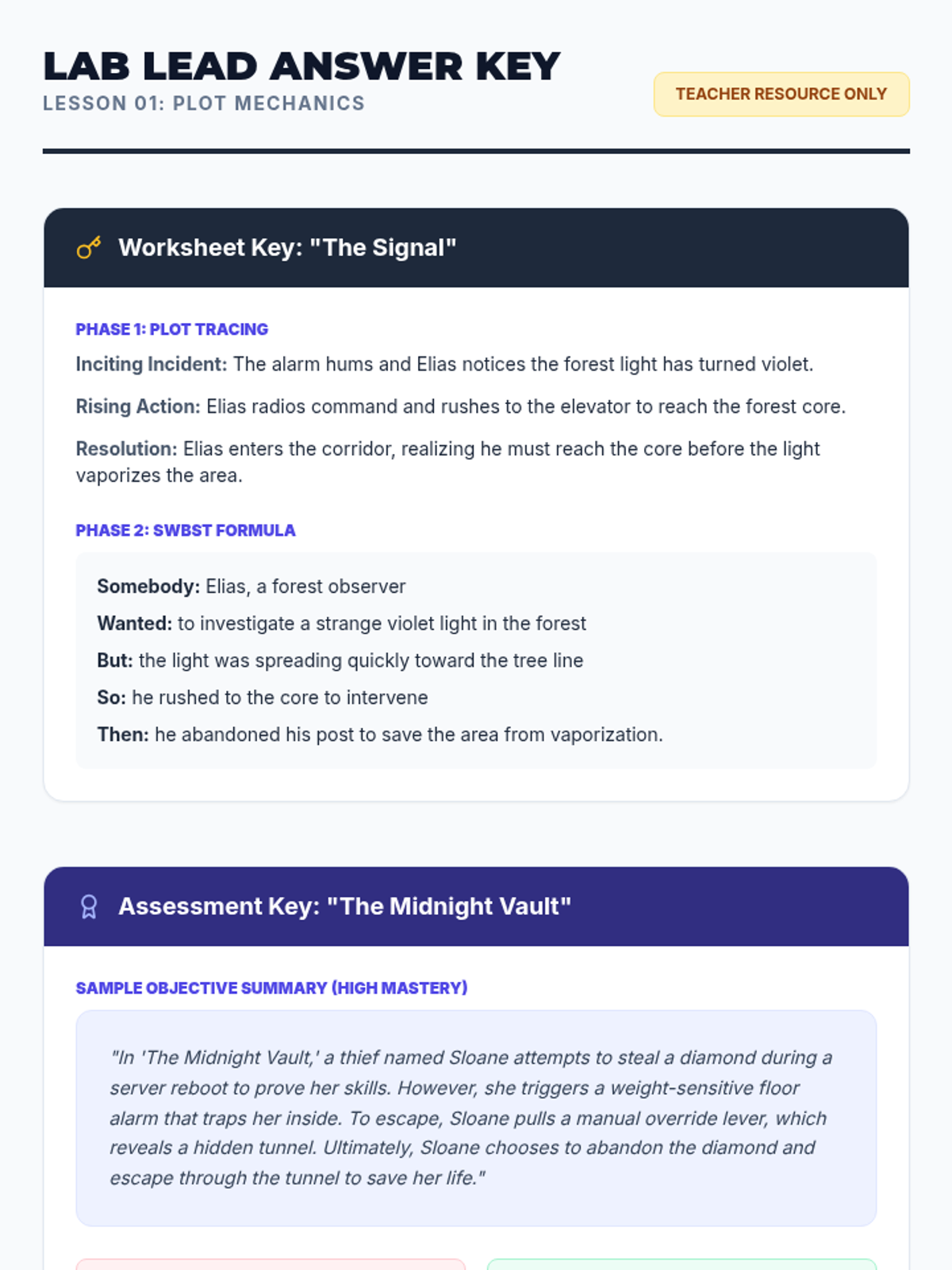 Focused on tracing plot development and providing objective summaries, aligning with Grade 8 Key Ideas and Details standards.