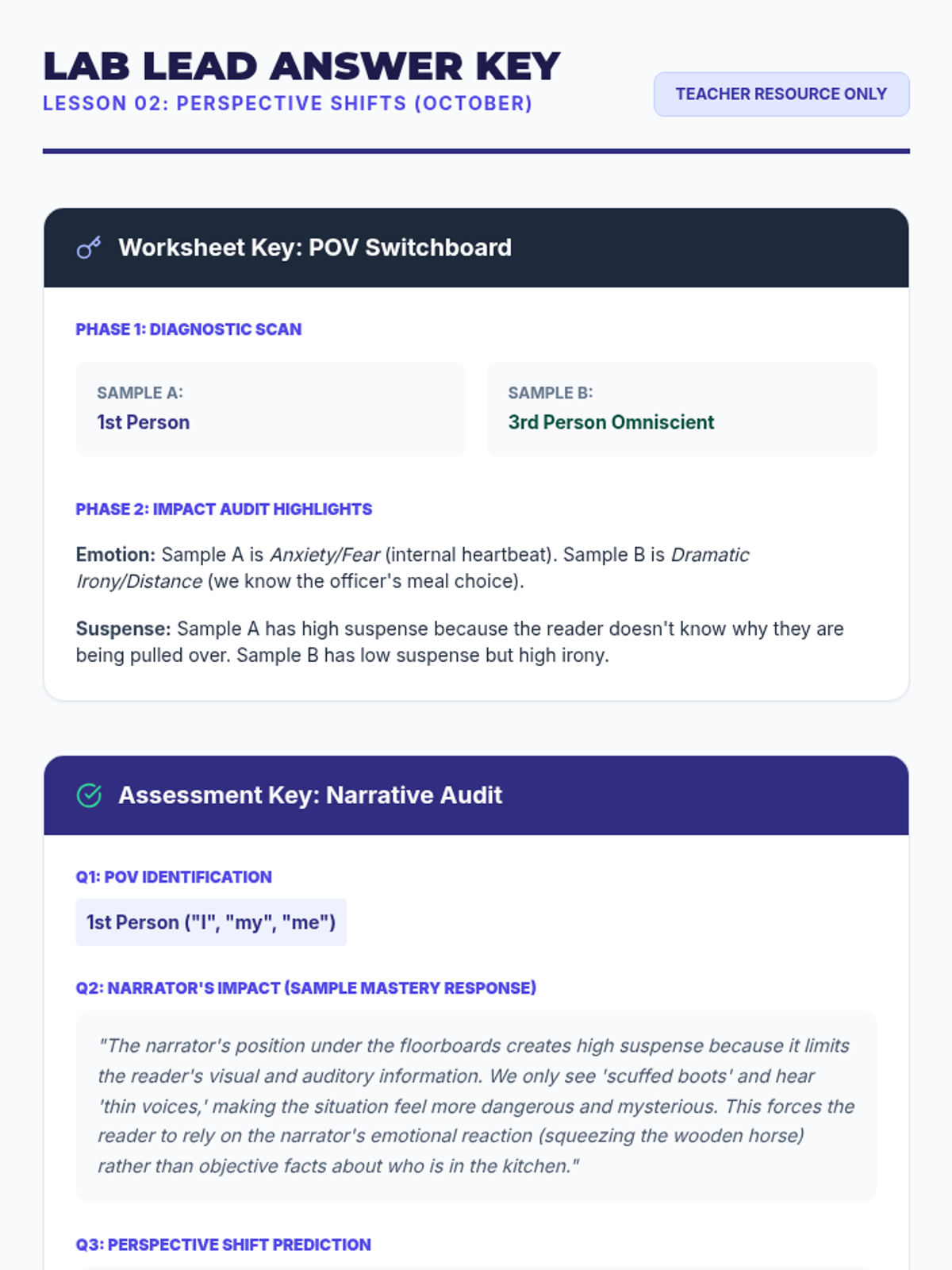 Analyzes the effects of various points of view and the narrator's impact on the narrative, covering Grade 8 Craft and Structure standards.