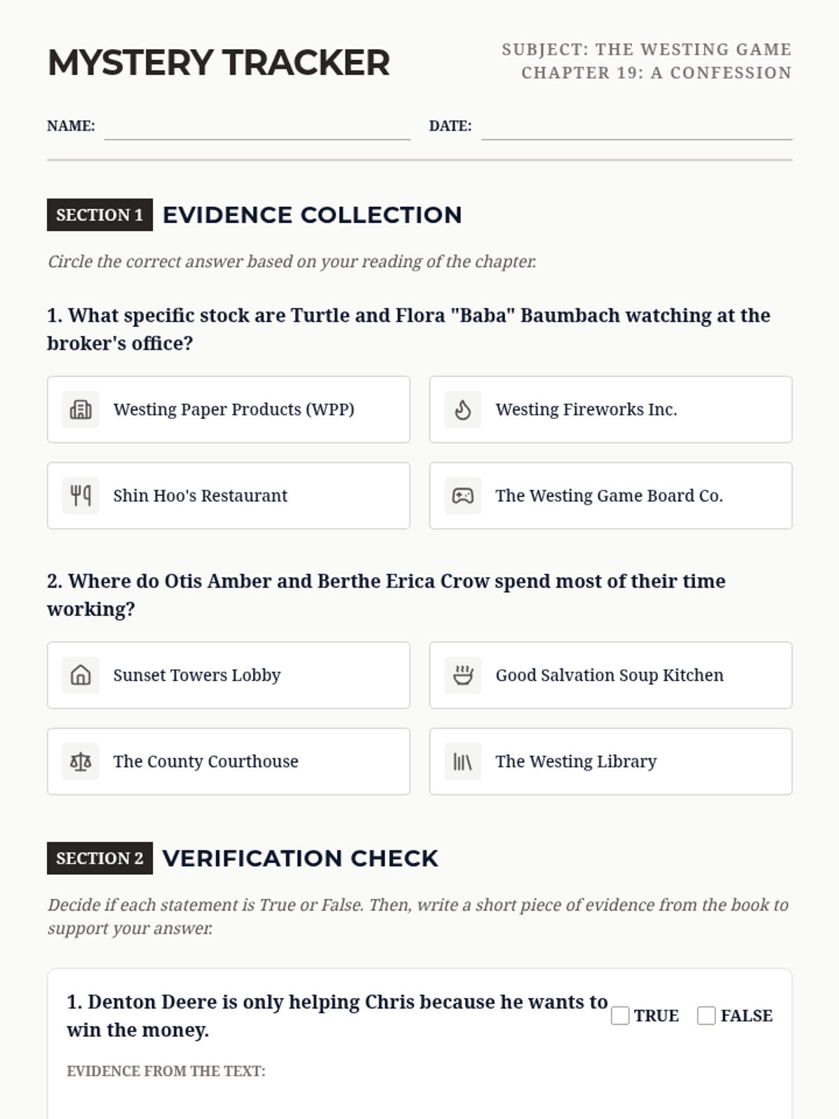 A focused look at Chapter 19 of The Westing Game, exploring Crow's internal struggle, the evolving partnership between Denton and Chris, and Turtle's stock market strategy.