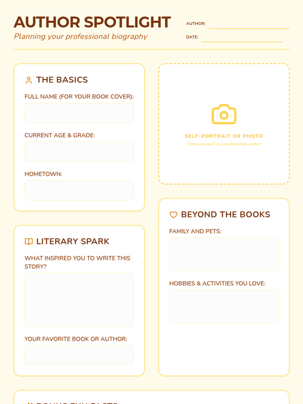 This lesson guides students through the process of brainstorming and drafting a professional 'About the Author' biography for their own creative writing projects.