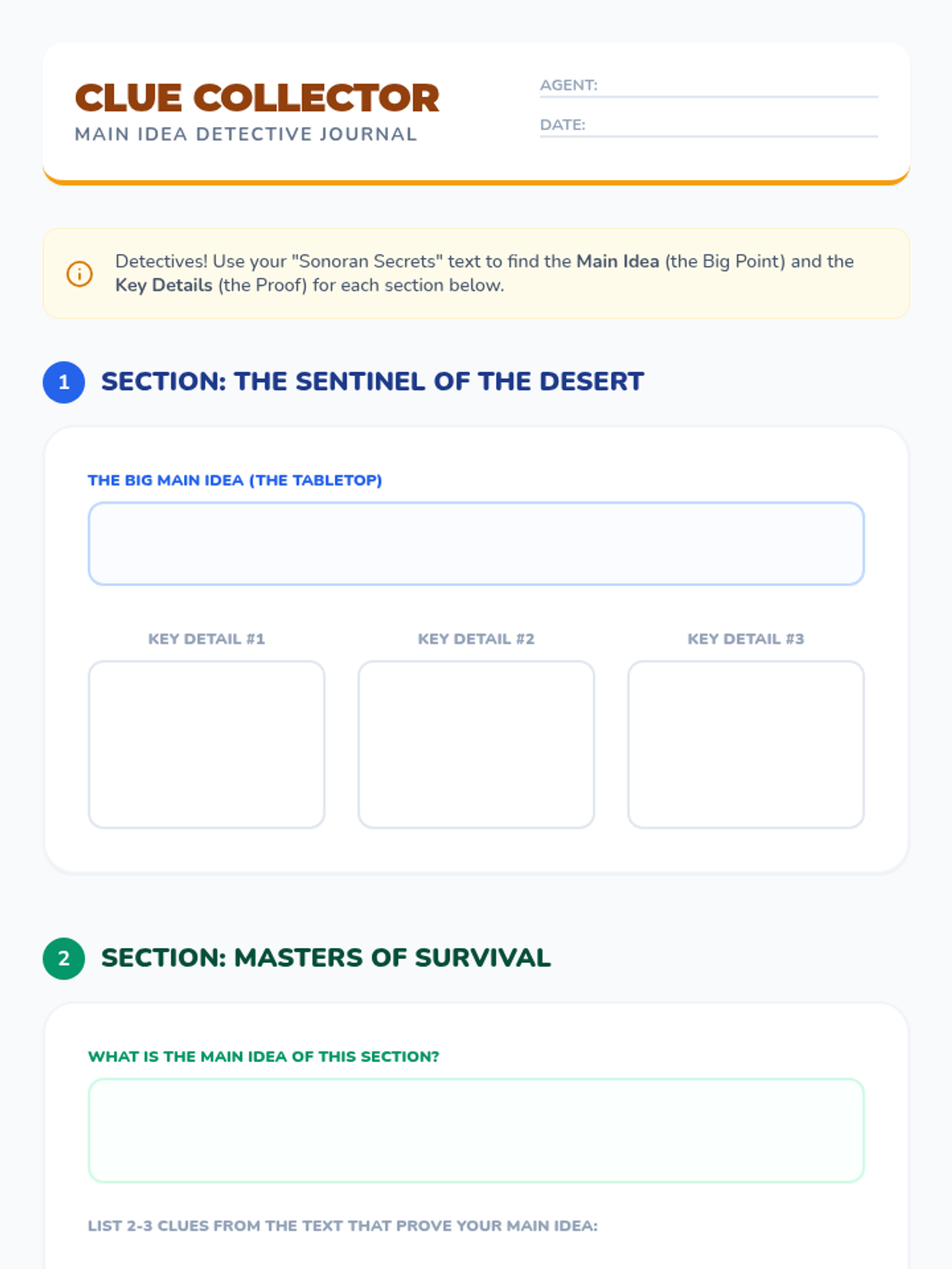 A four-day instructional sequence focused on Arizona ELA standard 3.RI.2, moving from direct instruction to independent mastery of identifying main ideas and supporting details in complex informational texts.