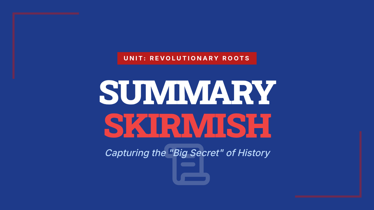 A quick-fire lesson on identifying the main idea and supporting details within a historical text about the American Revolution.