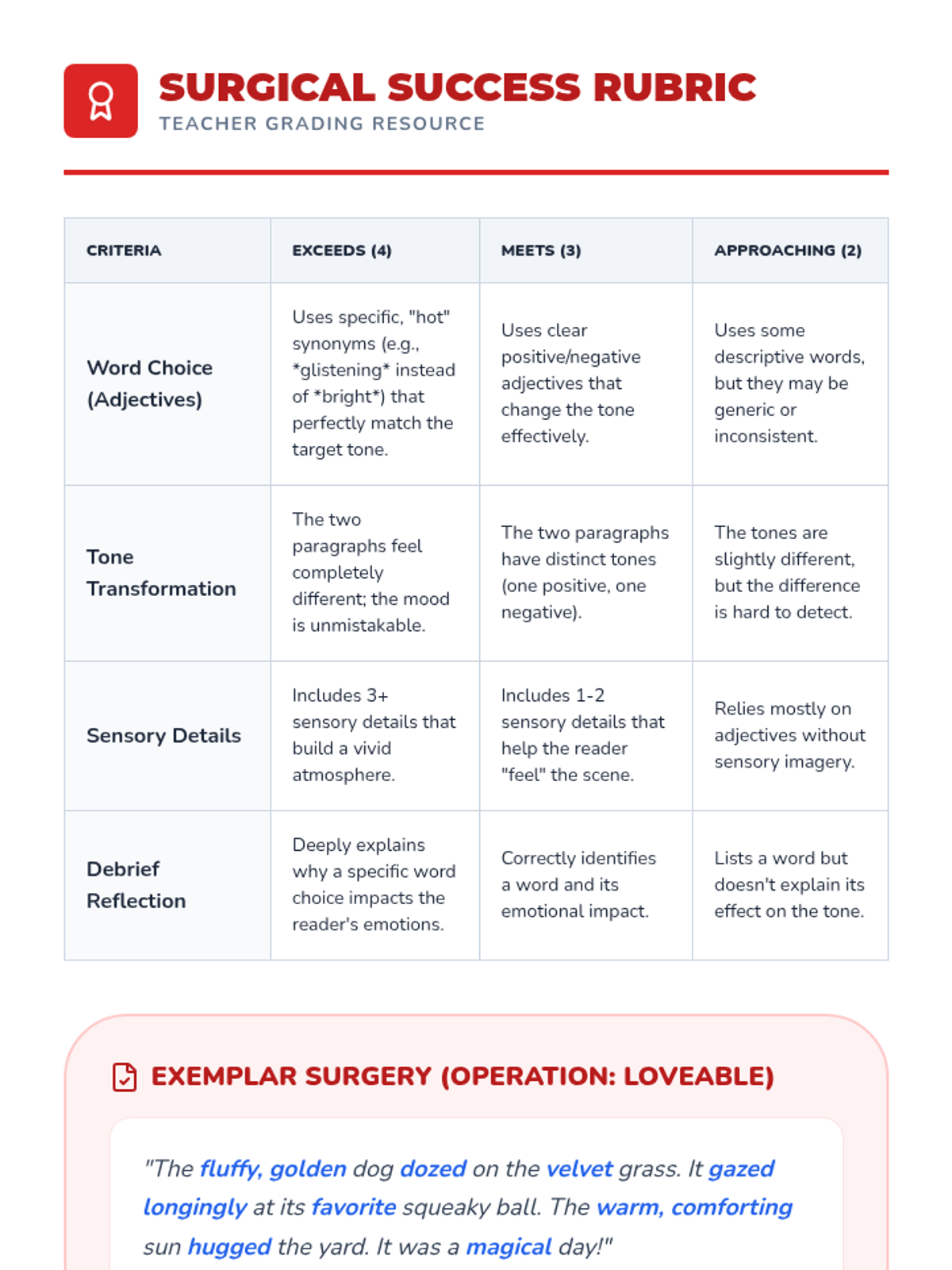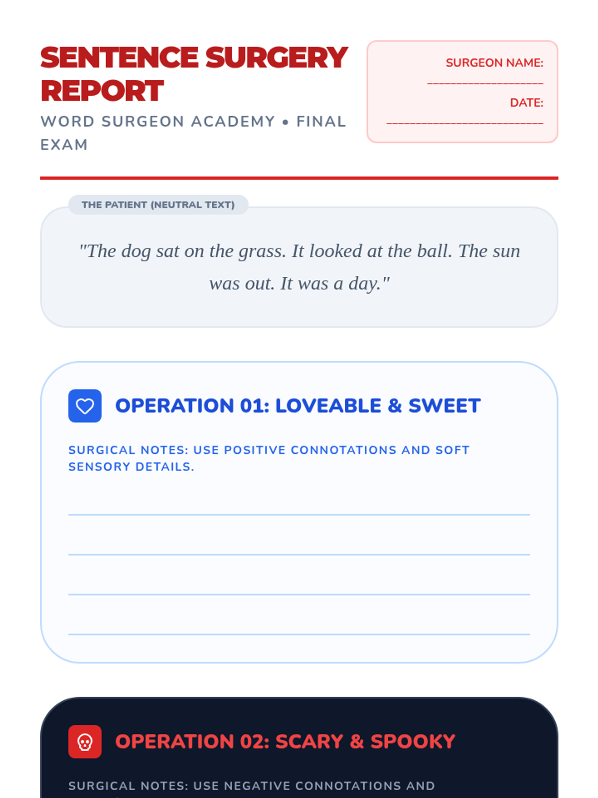 The capstone activity where students apply their knowledge to rewrite neutral text into different tones using 'word surgery' techniques.