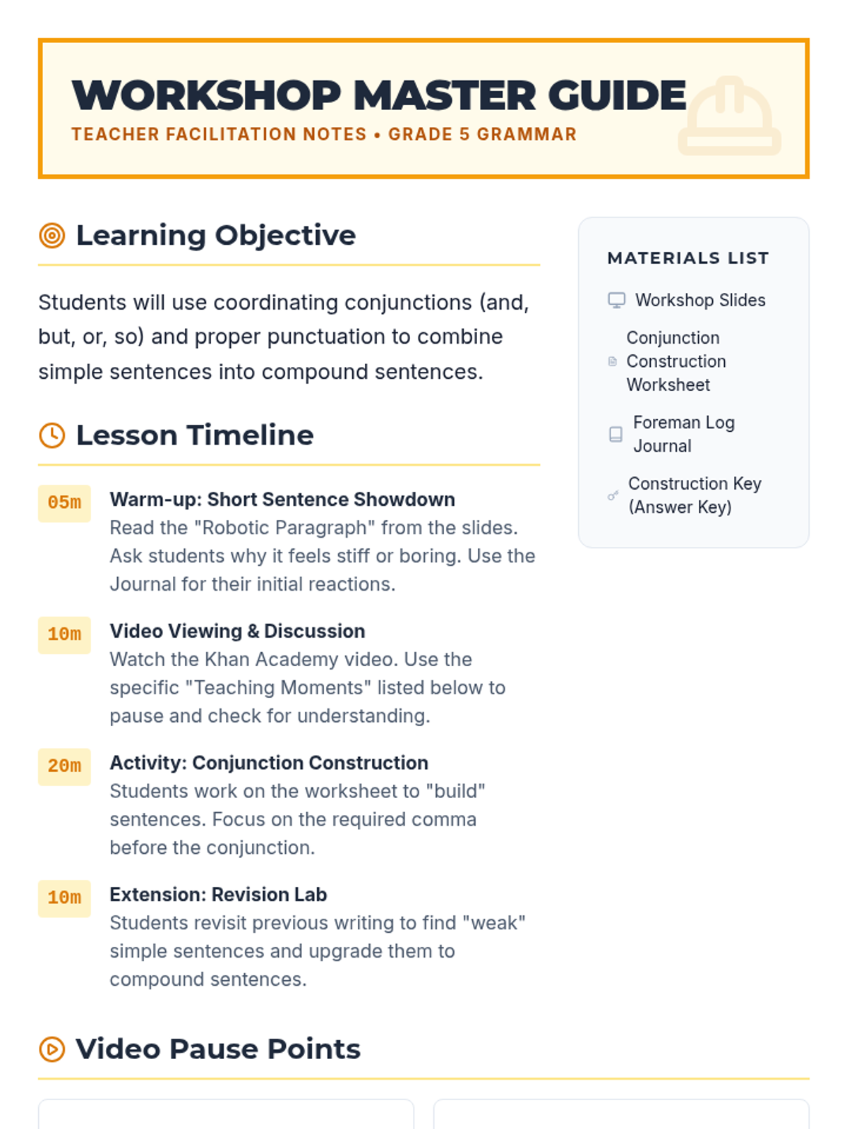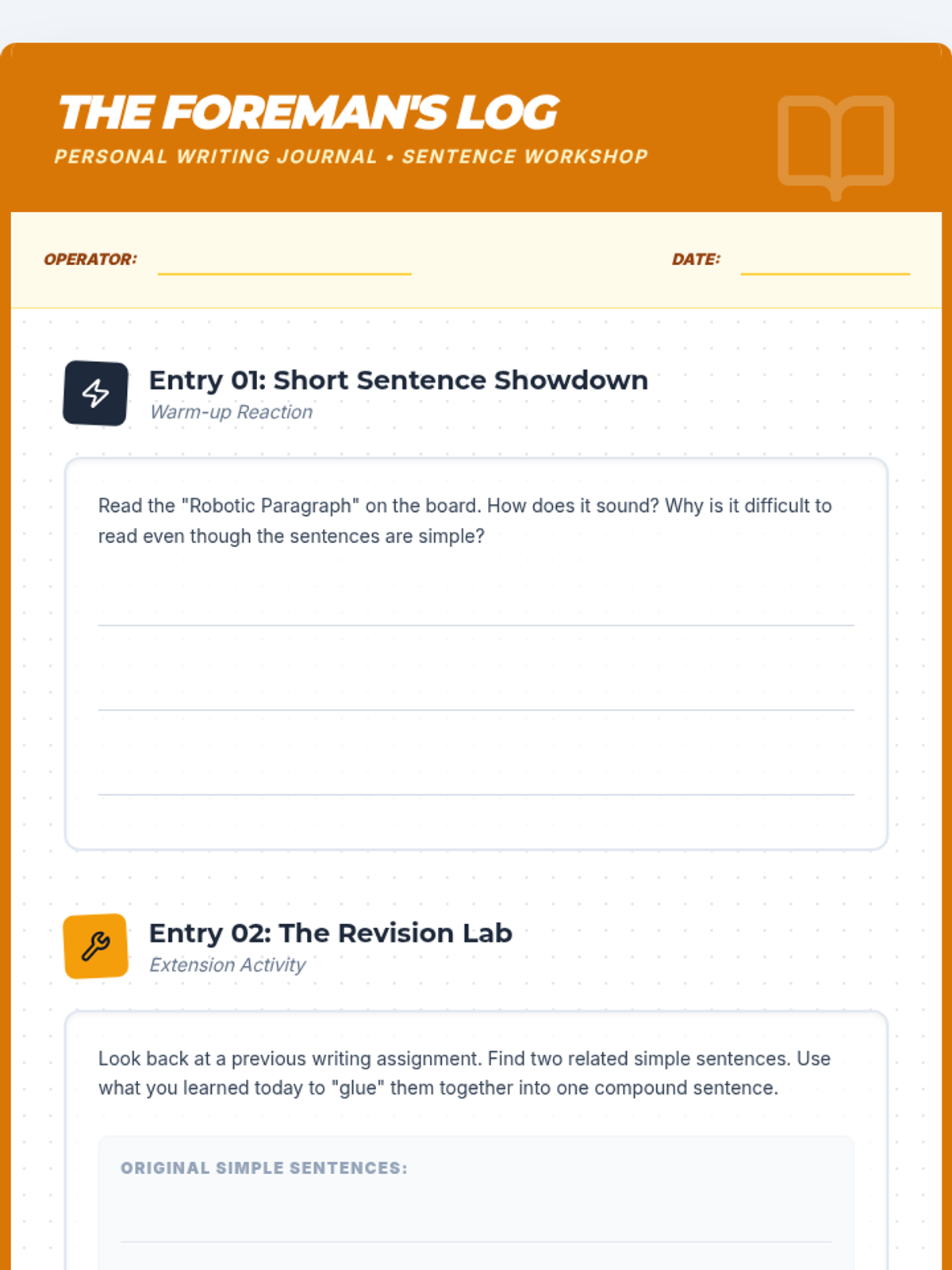 Students will learn to distinguish between simple and compound sentences, using coordinating conjunctions (FANBOYS) and commas as the 'glue' to build more complex and fluid writing.
