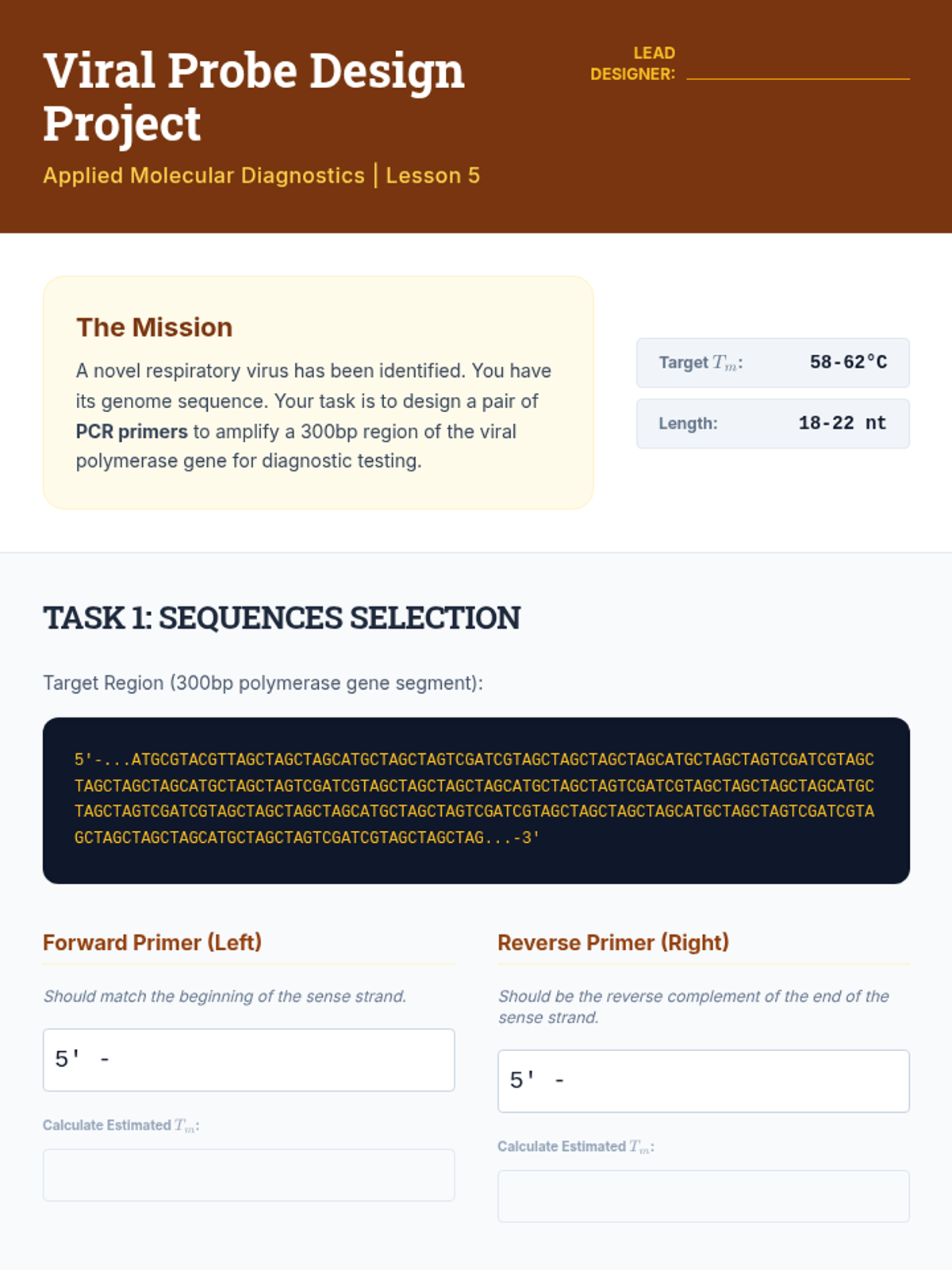 Review modern sequencing technologies and PCR chemistry to design primers and discuss the therapeutic use of synthetic nucleic acids.