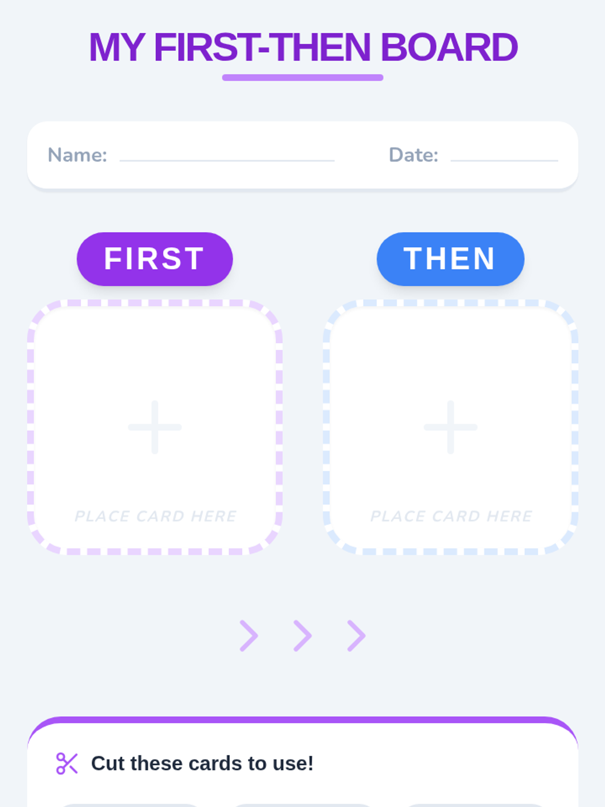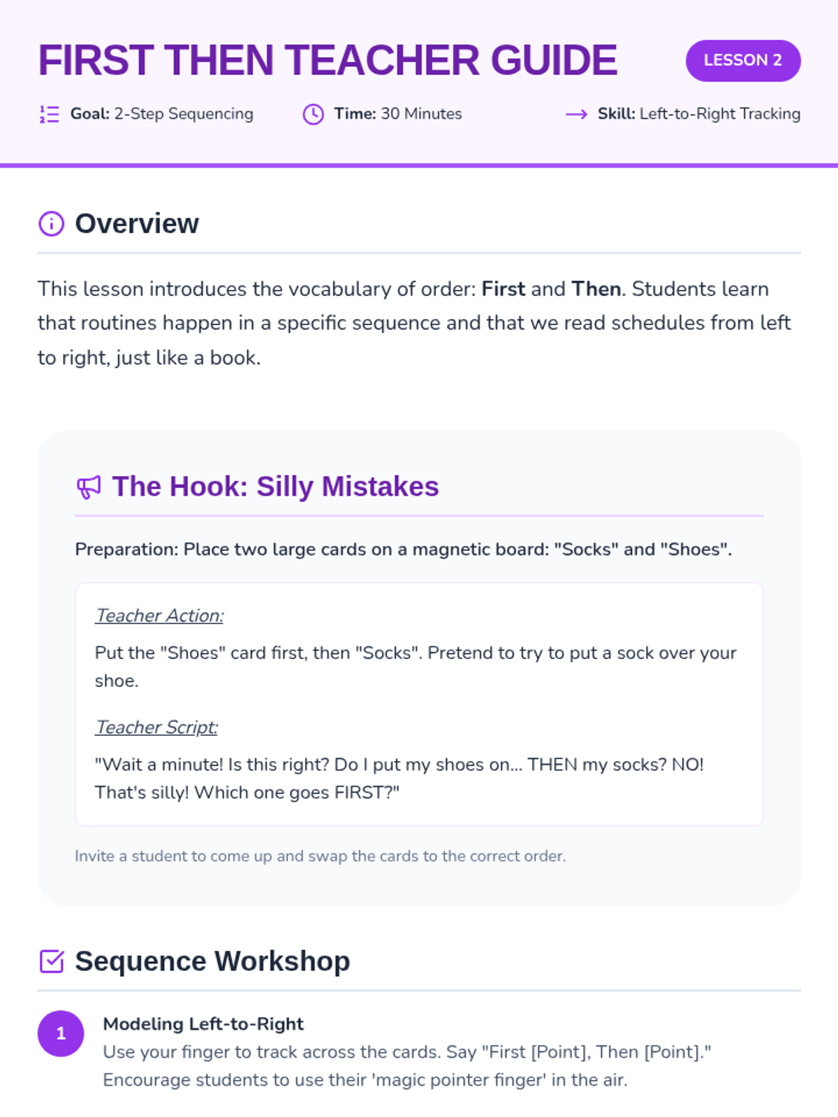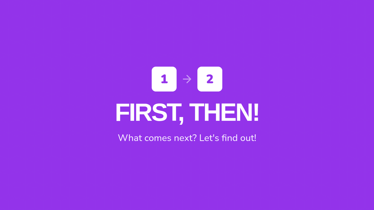Students practice the concept of 'First, Then' sequencing by arranging two picture cards to show a simple progression of events.