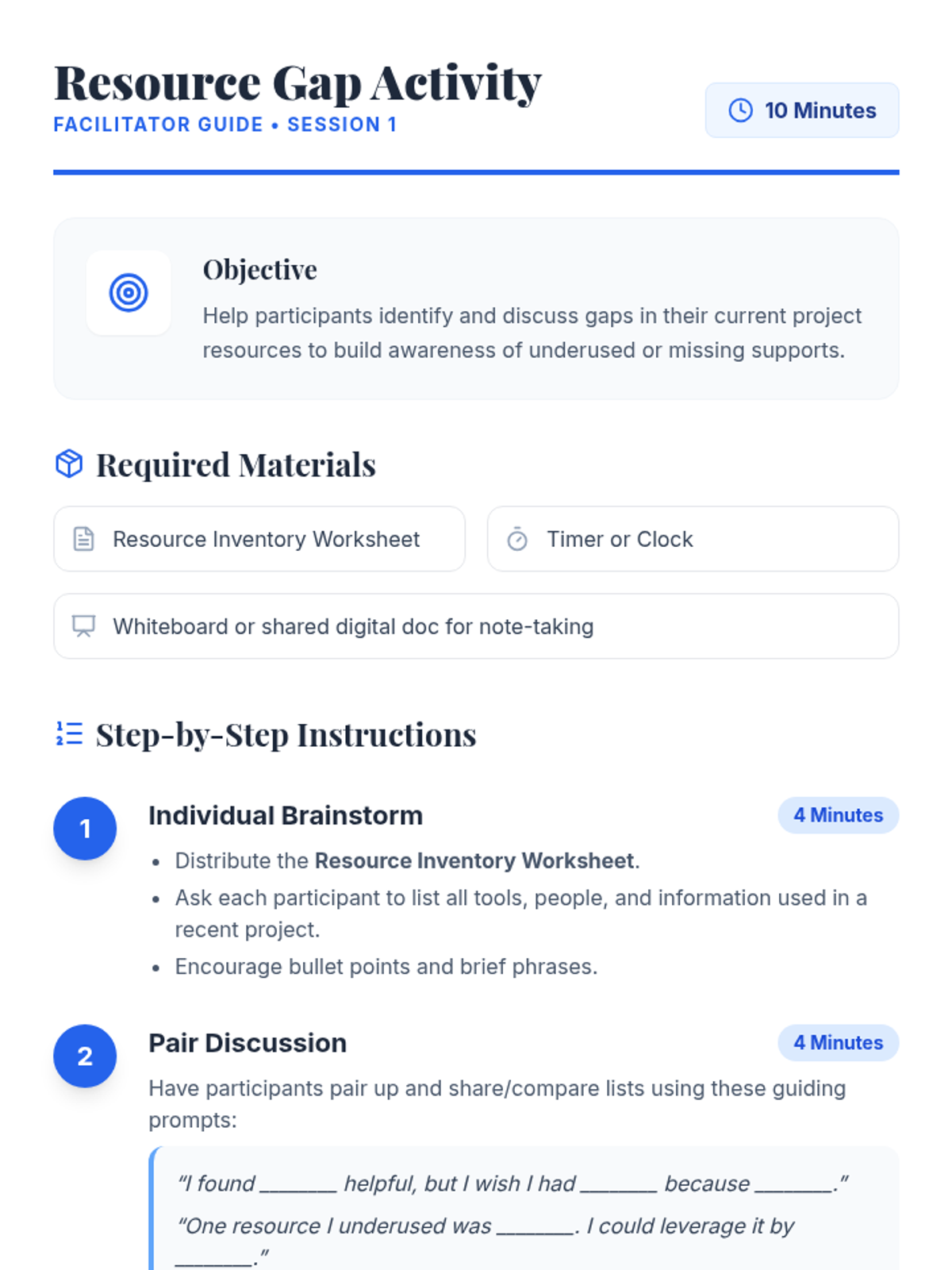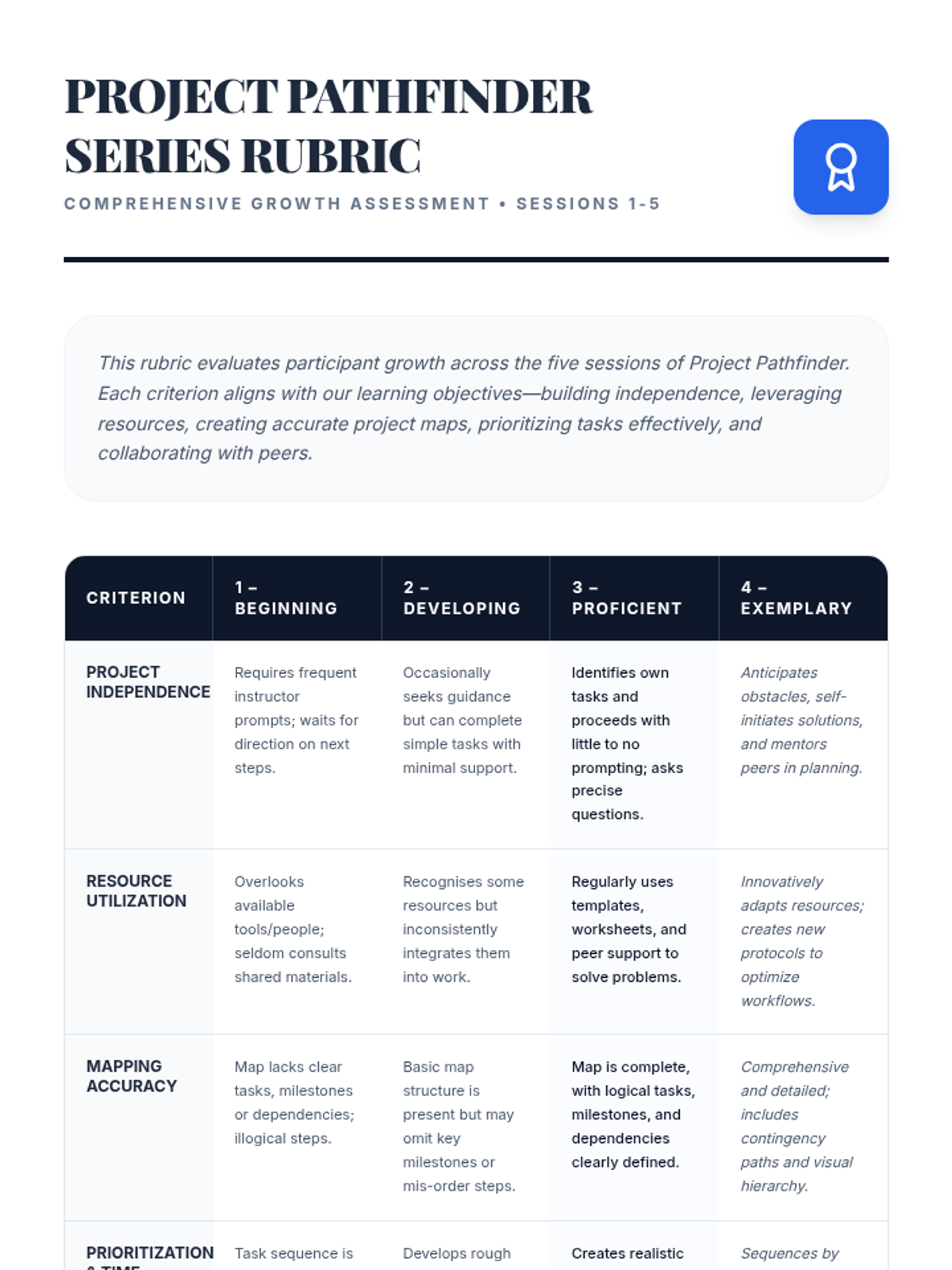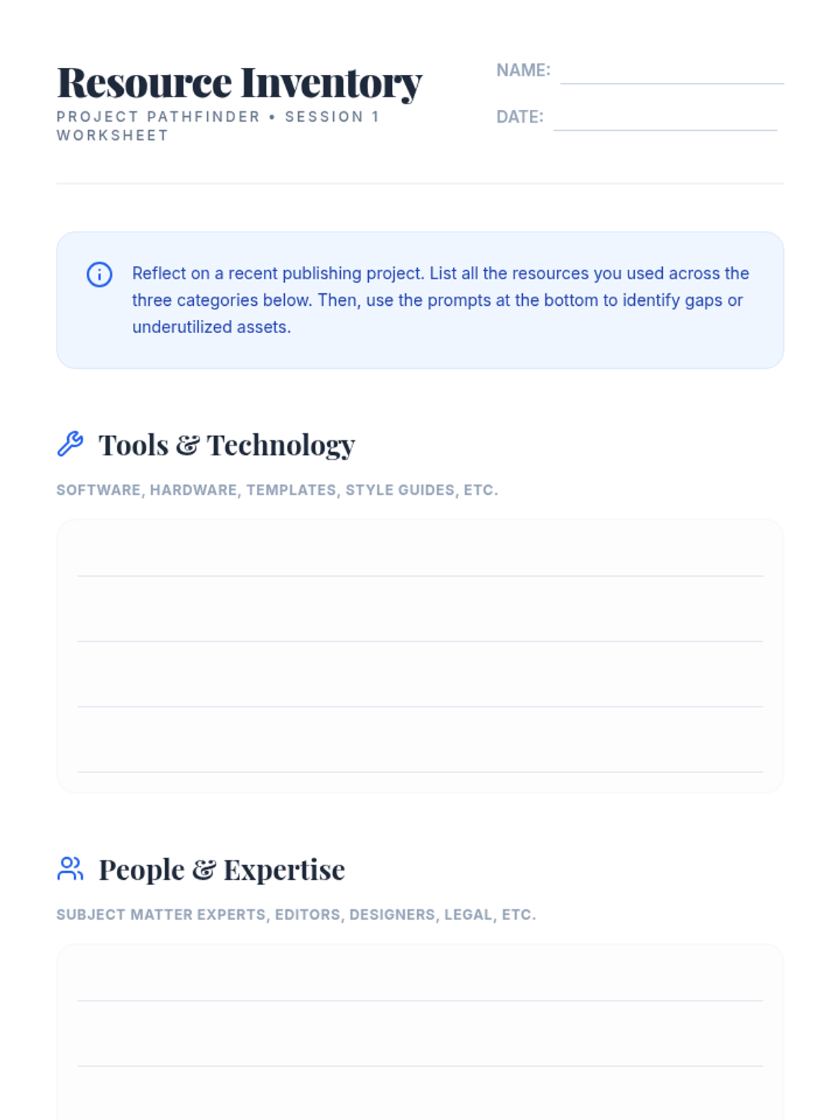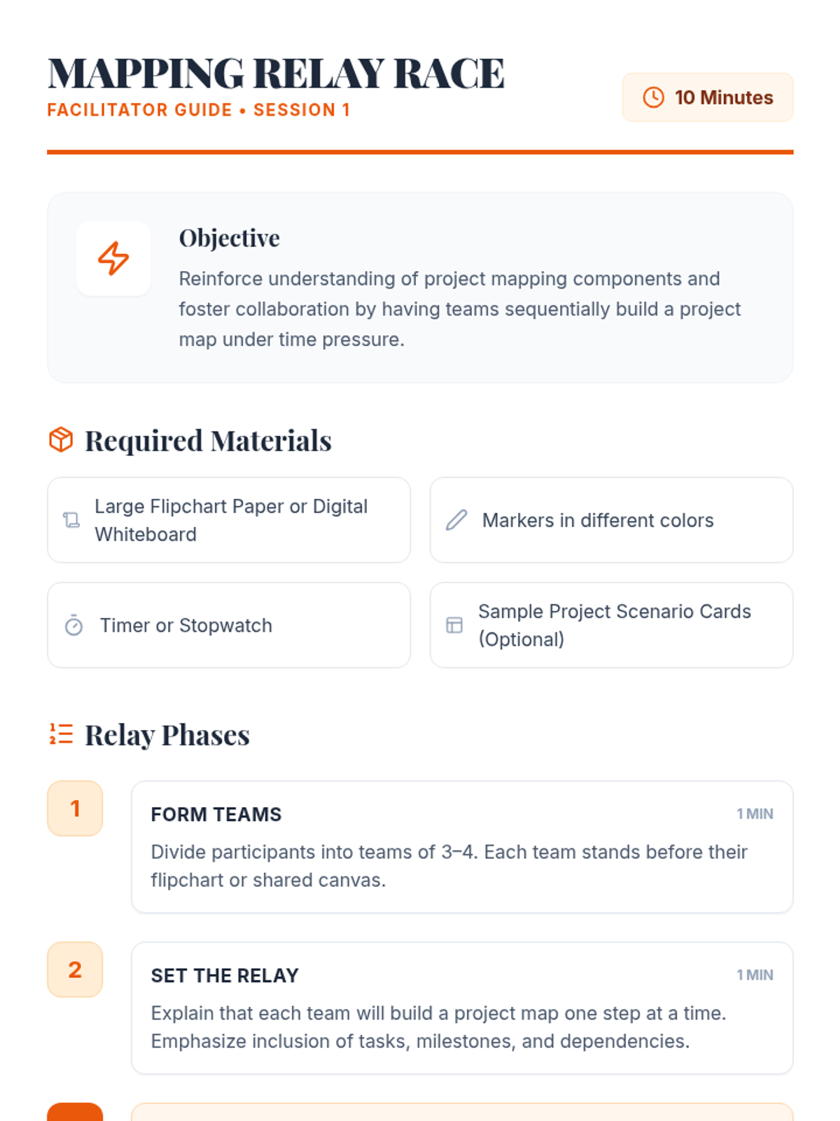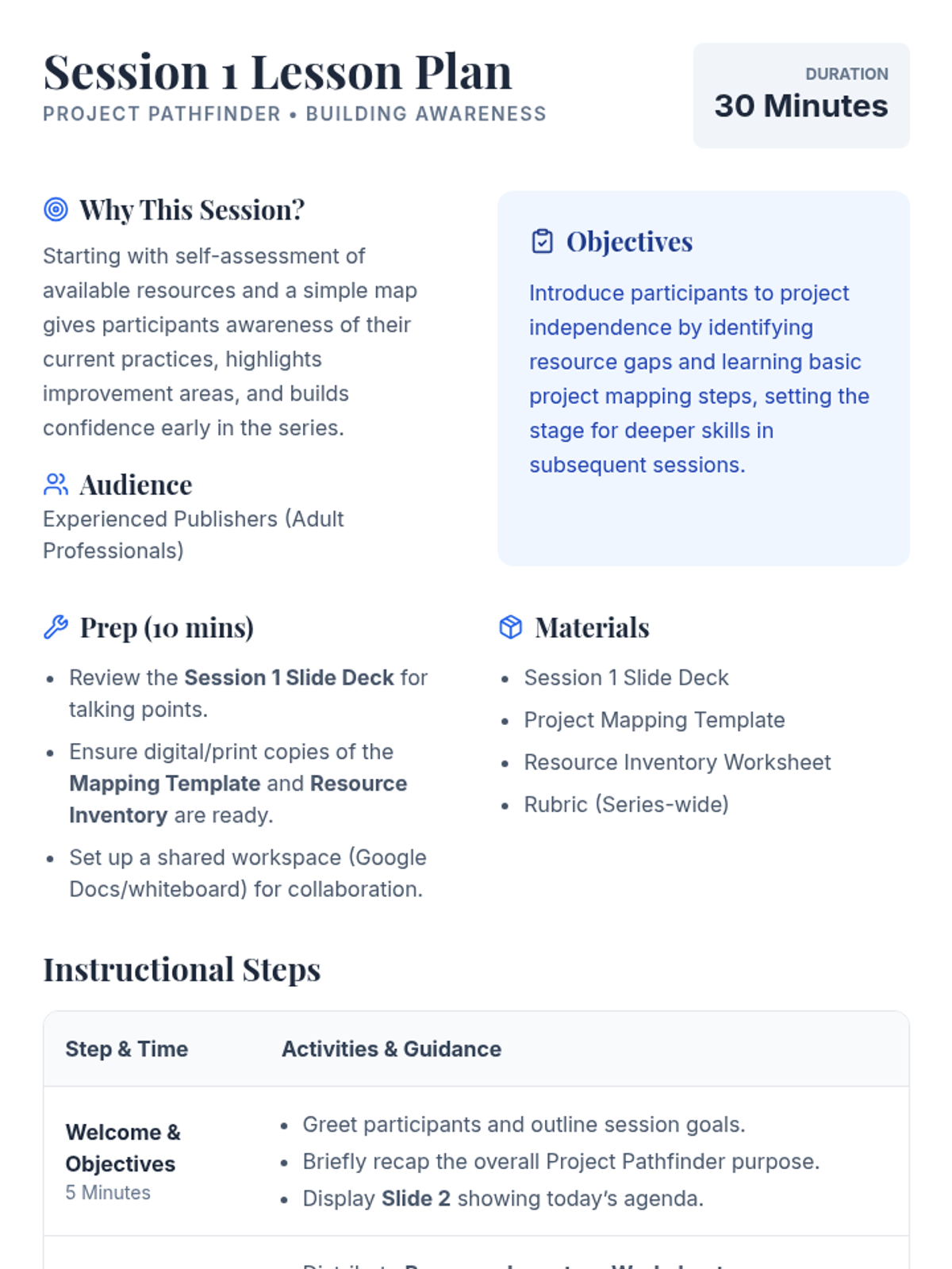 Focuses on self-assessment of resources and the fundamentals of project mapping (tasks, milestones, and dependencies).