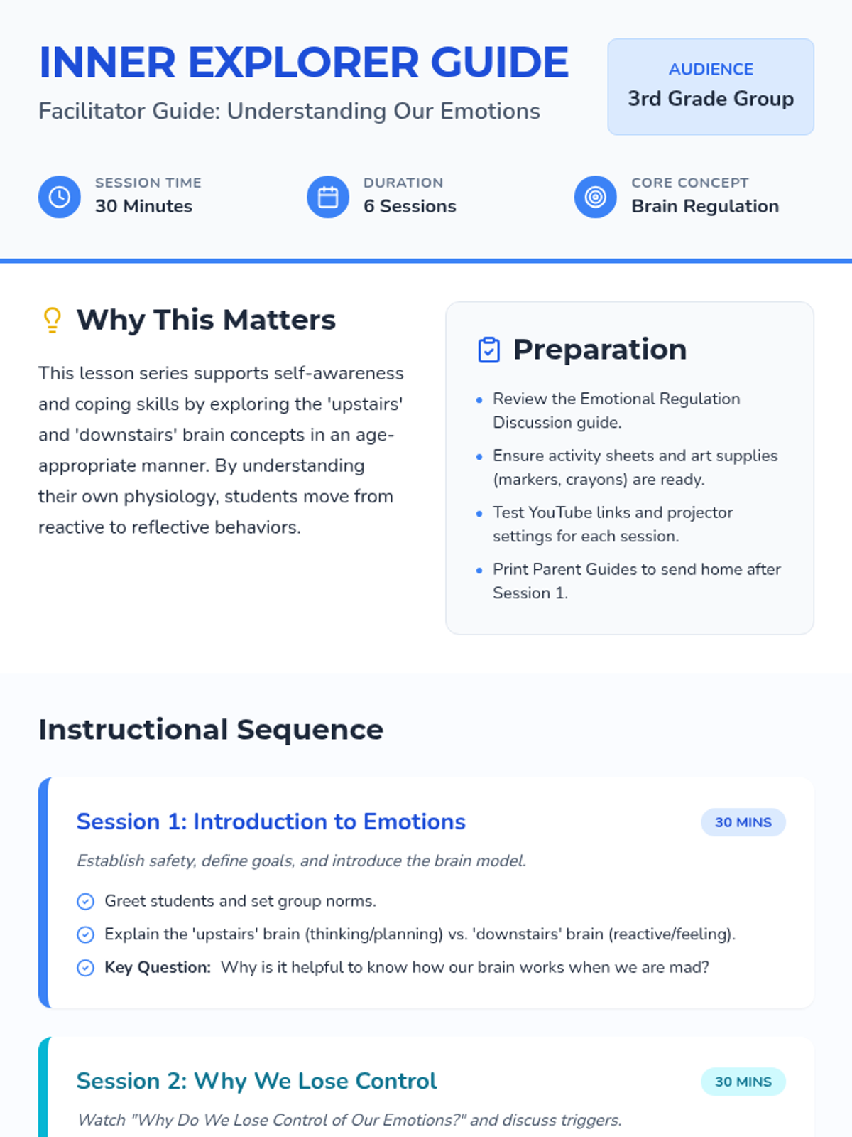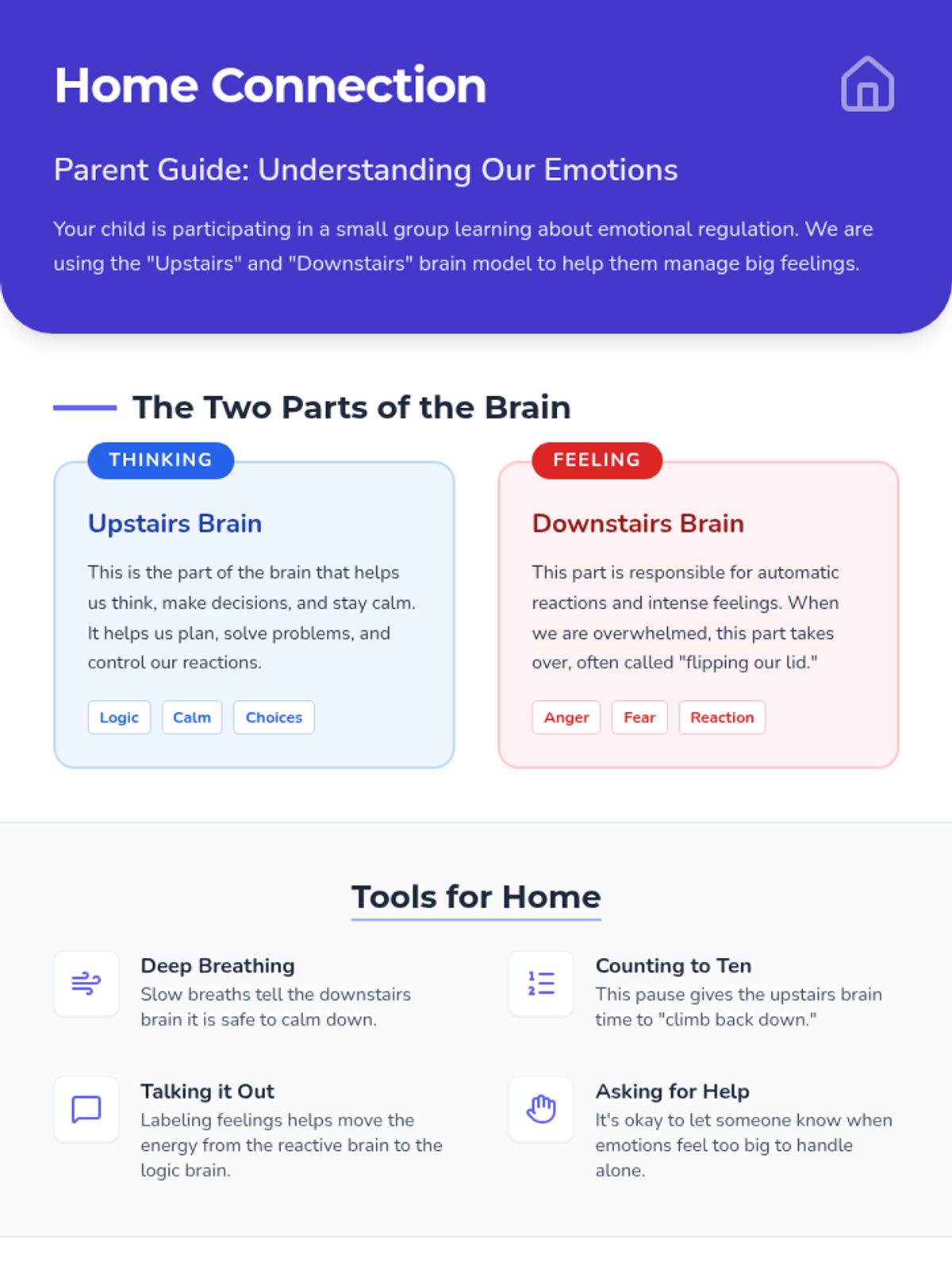 Introduction to the counseling group and the fundamental concept of the upstairs and downstairs brain.