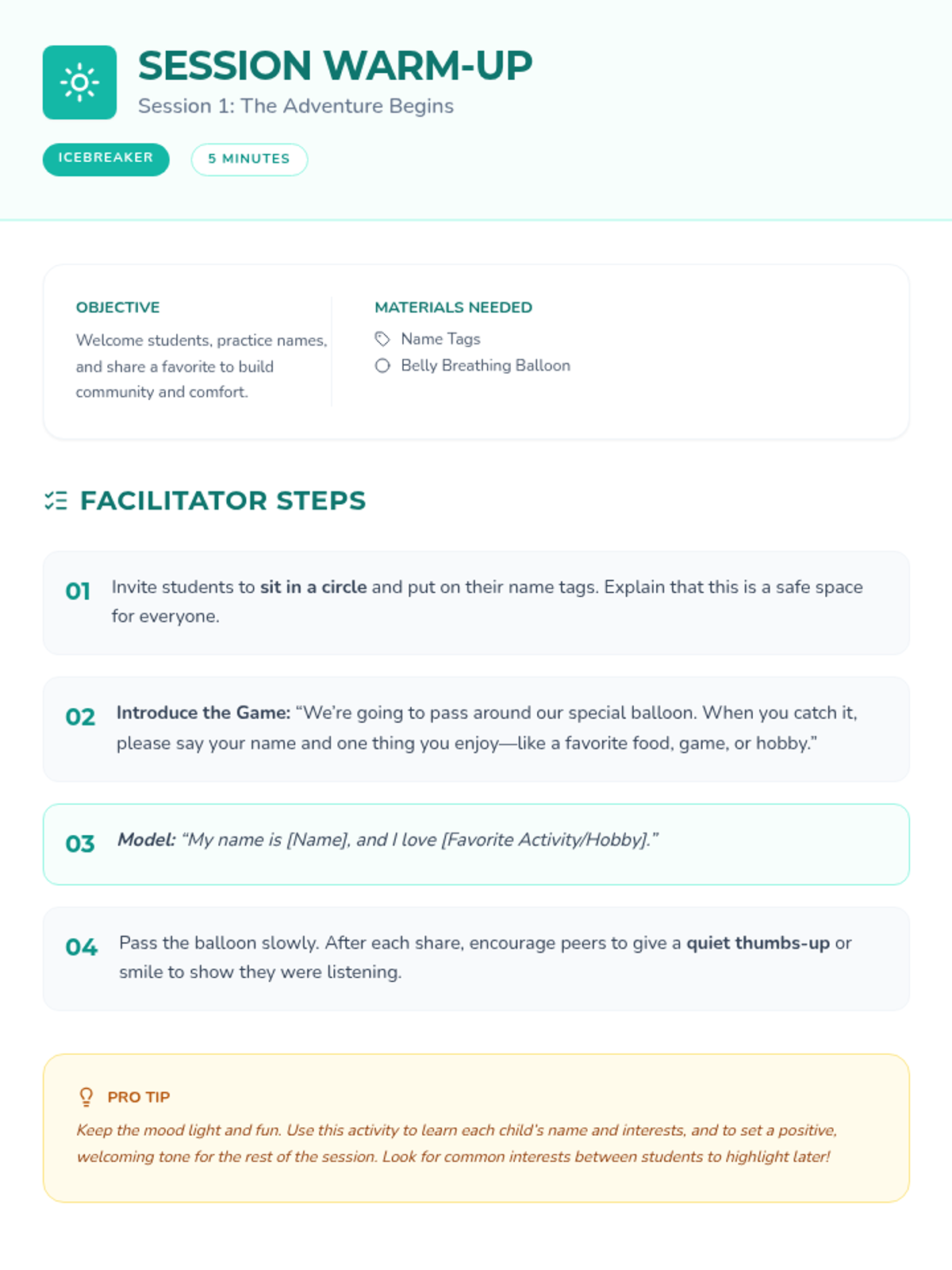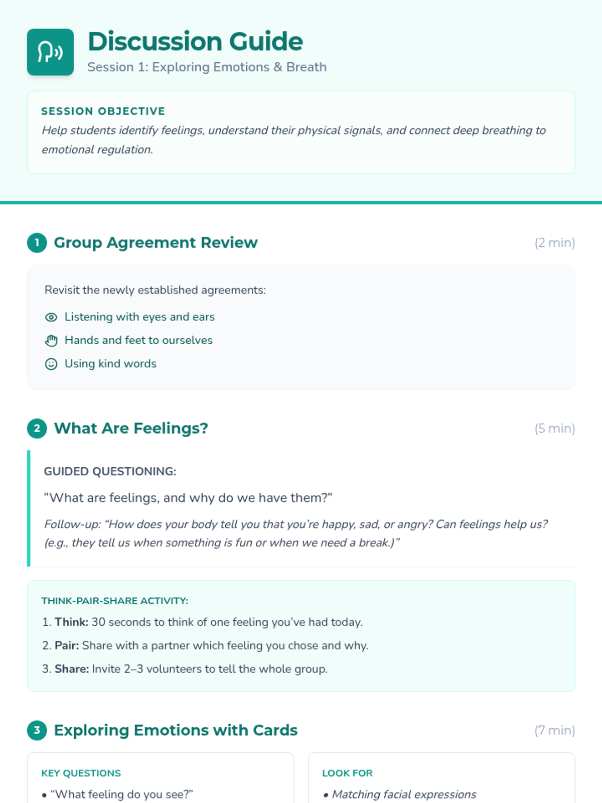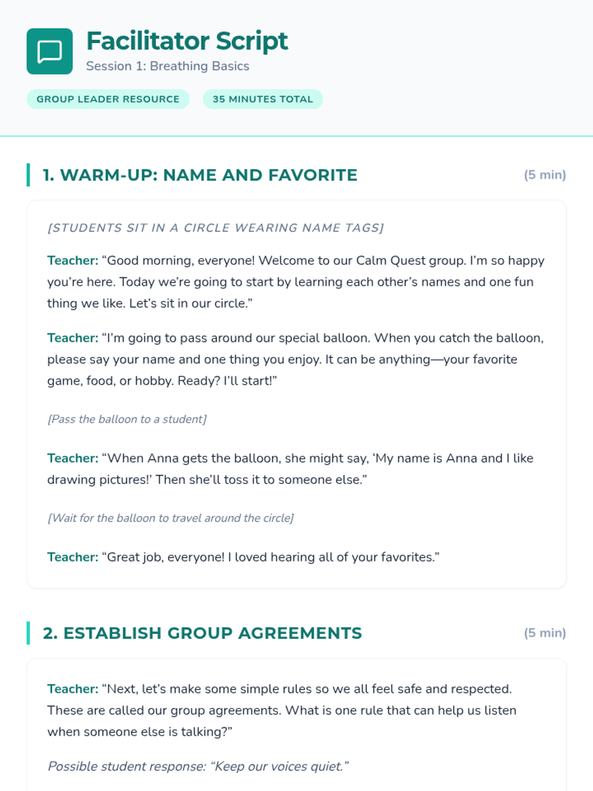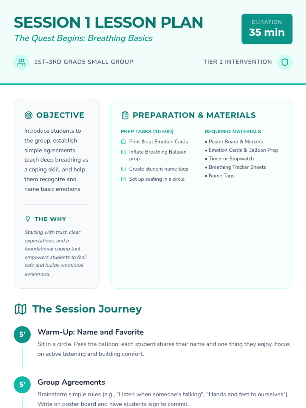 Introduction to the Calm Quest group, establishing group agreements, and learning the foundational skill of belly breathing.