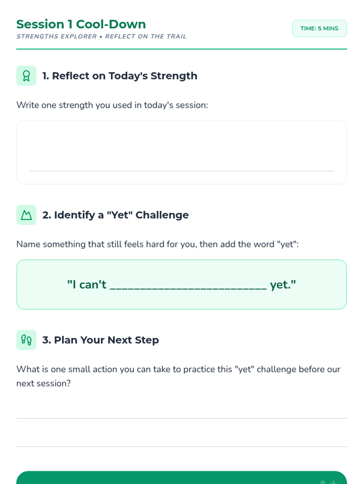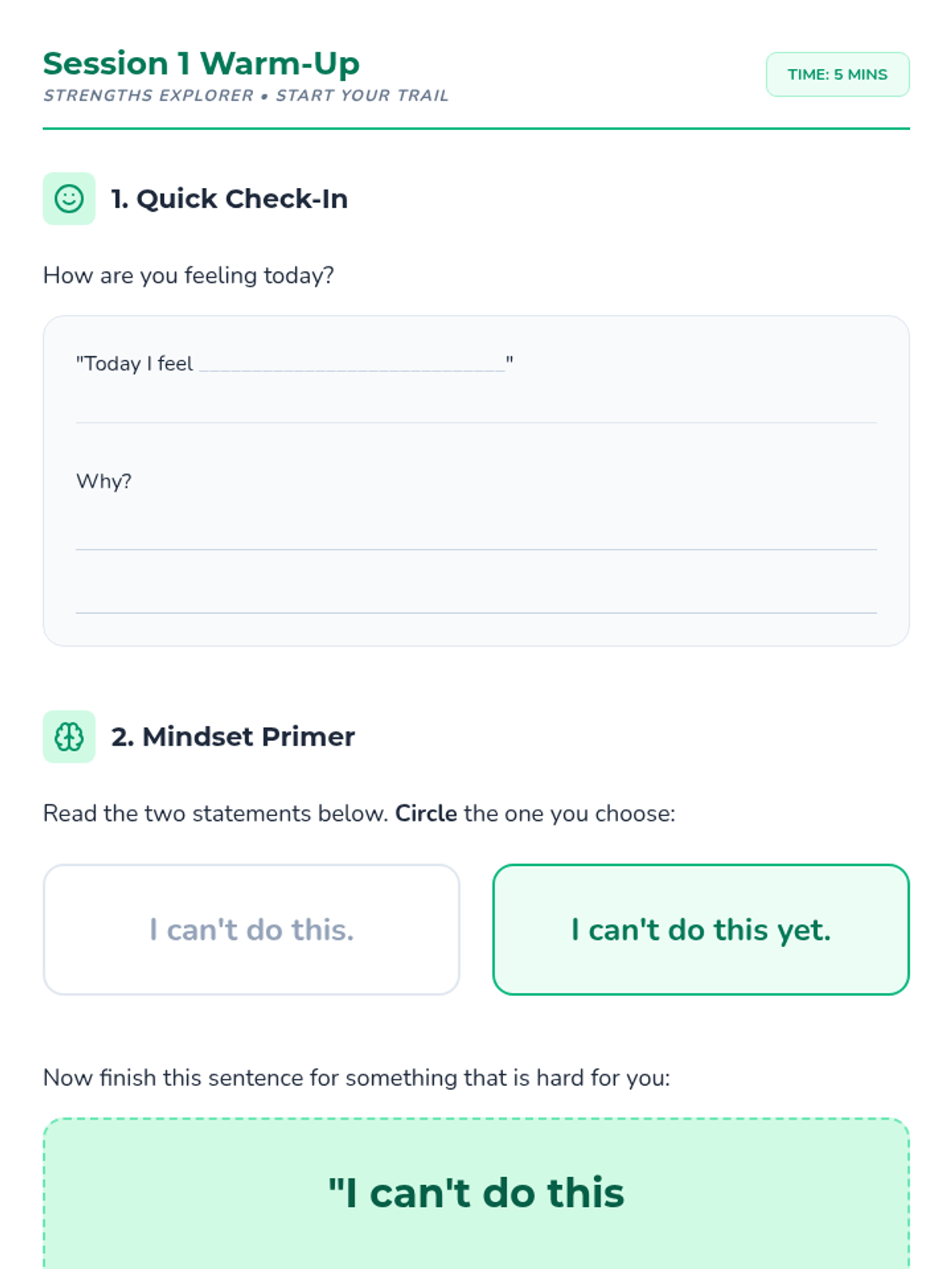 A lesson focused on mindfulness and emotional regulation, teaching Pathfinders how to stay centered using grounding techniques and a positive mindset.