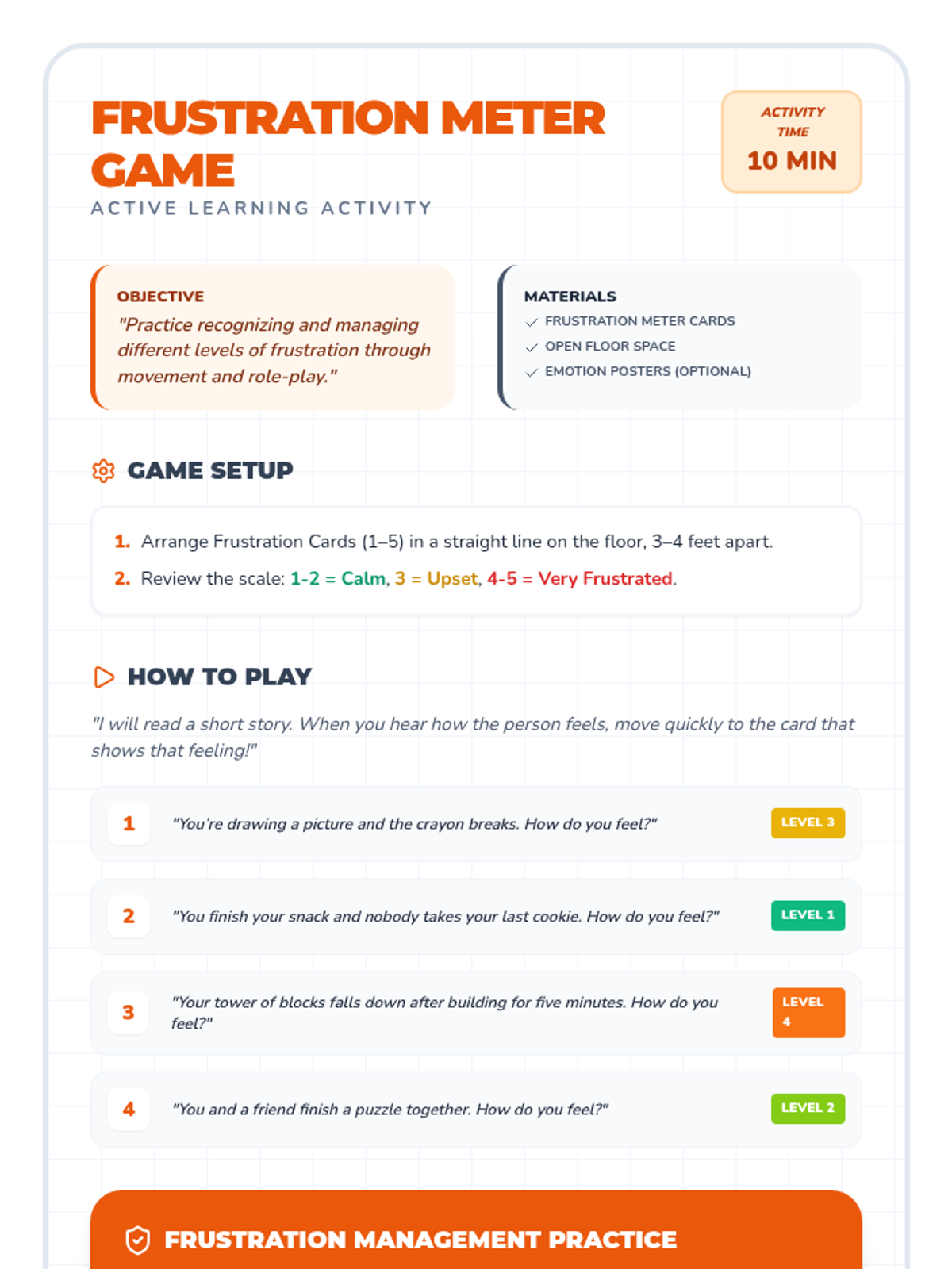 A fun, interactive lesson where 3rd graders practice identifying and applying self-regulation strategies through a board game and BINGO. Students will learn to recognize emotional triggers and choose appropriate 'calm-down' tools.