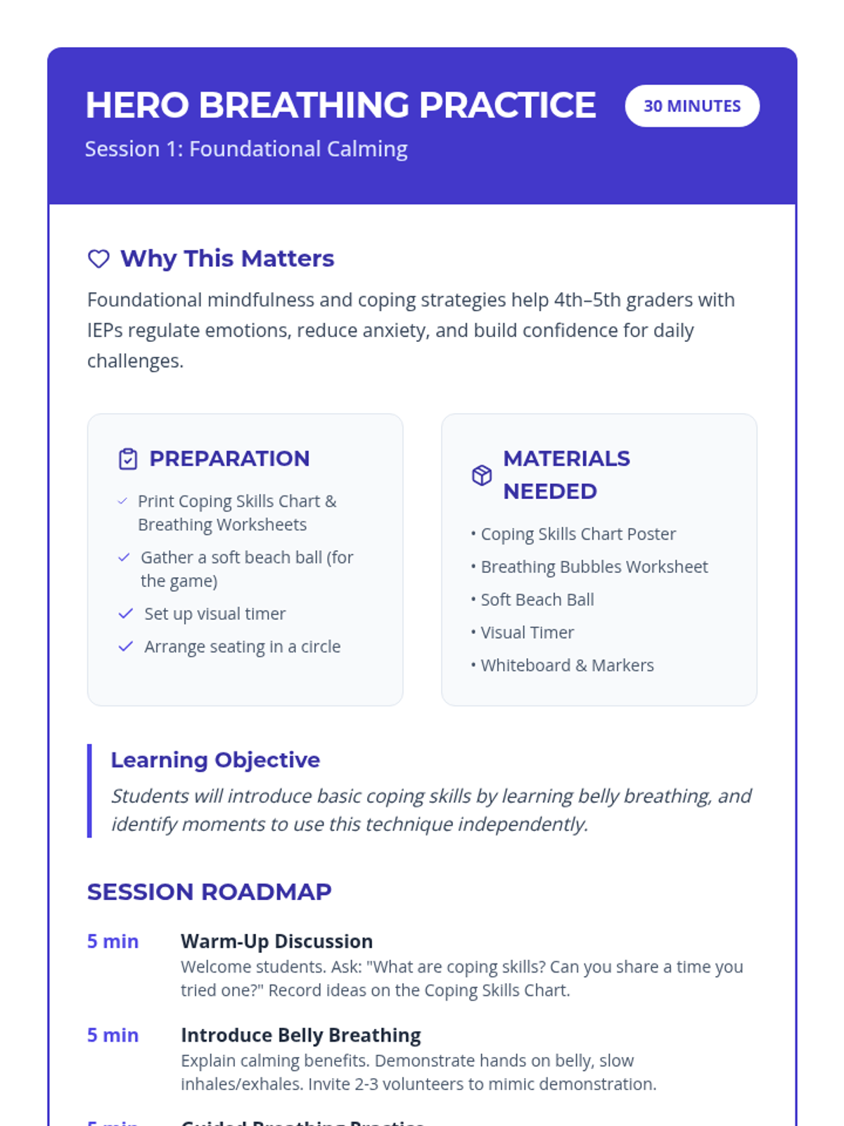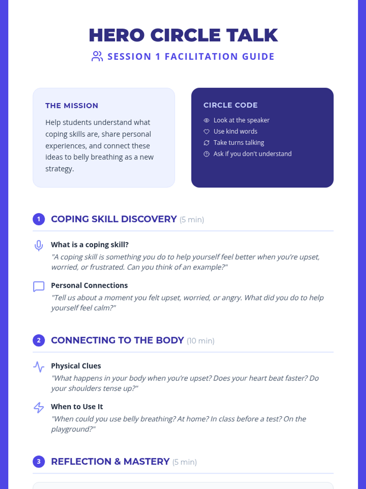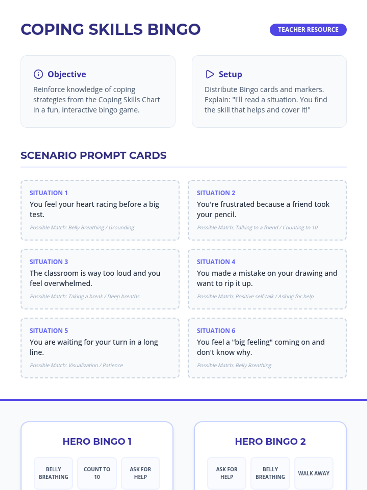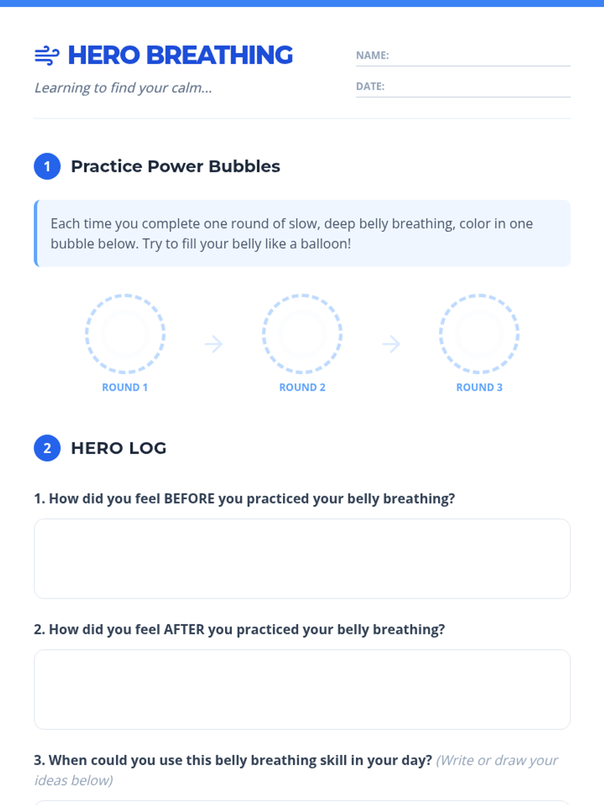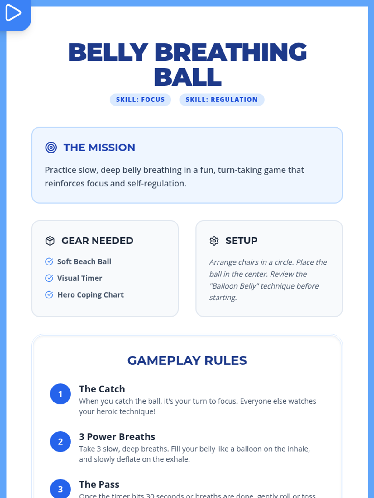 Introduces students to the concept of coping skills and teaches belly (deep) breathing as a foundational calming strategy.