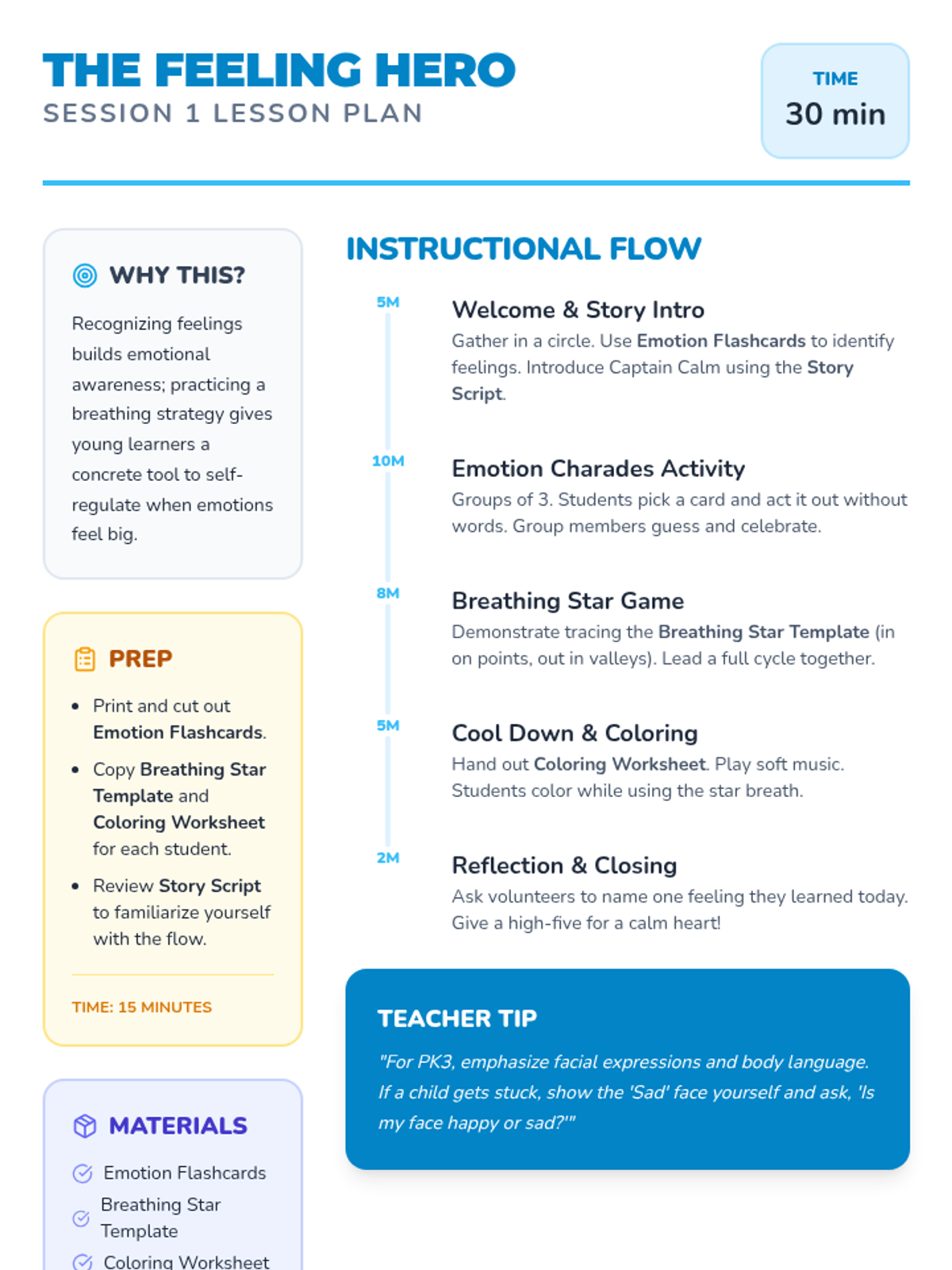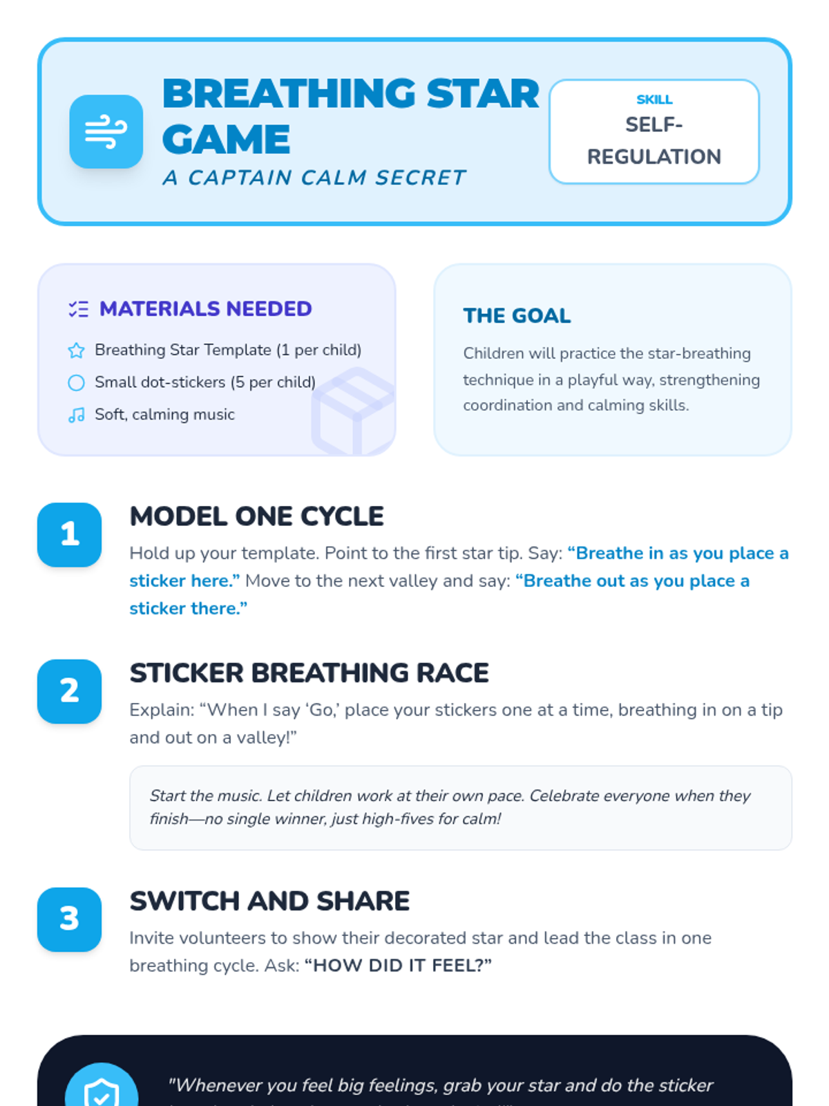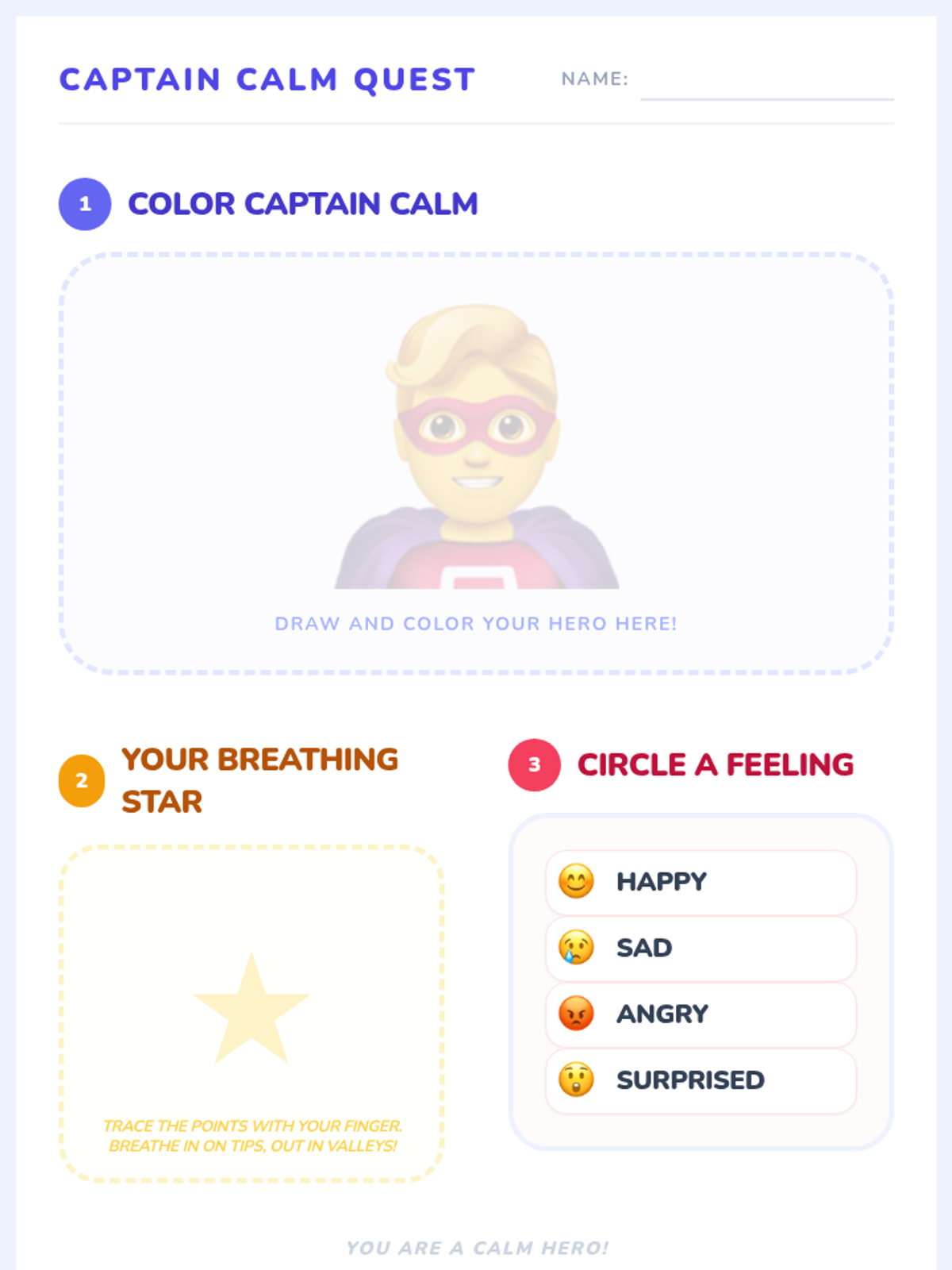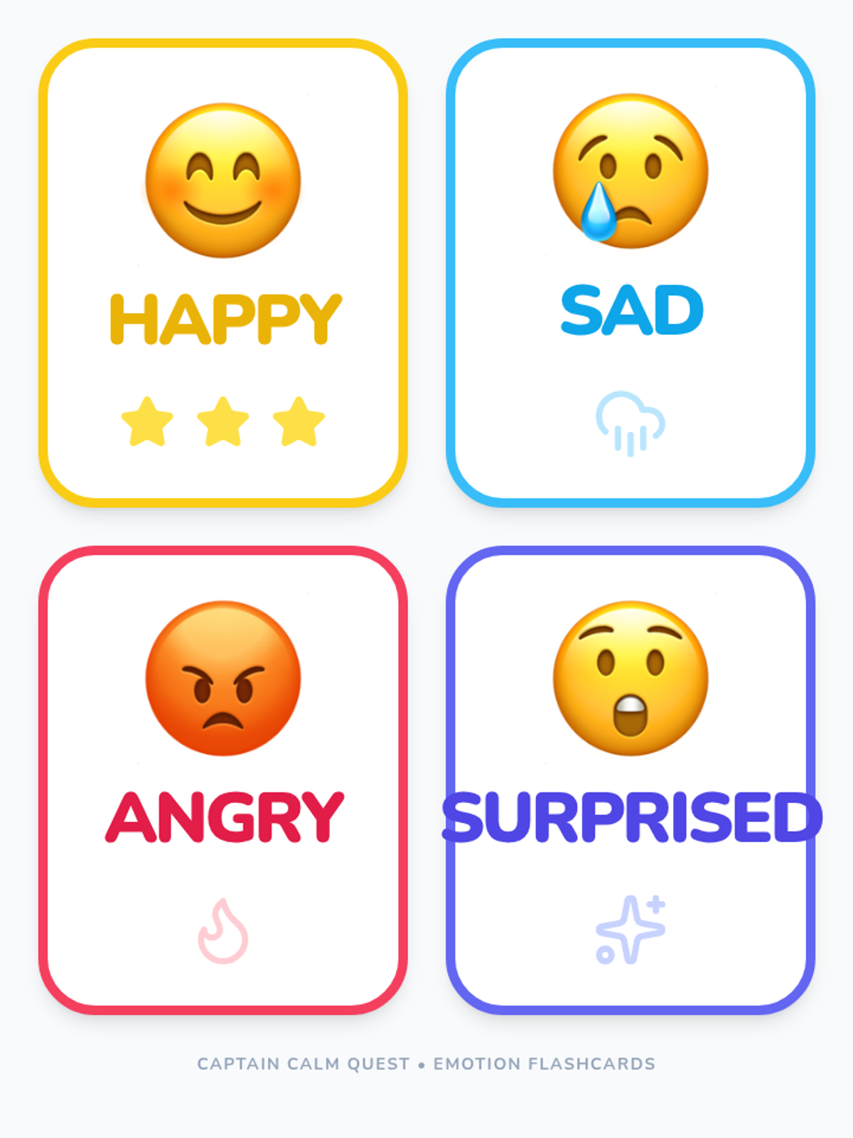 Students will identify and name four basic emotions and learn a simple star-breathing technique to help them calm down.