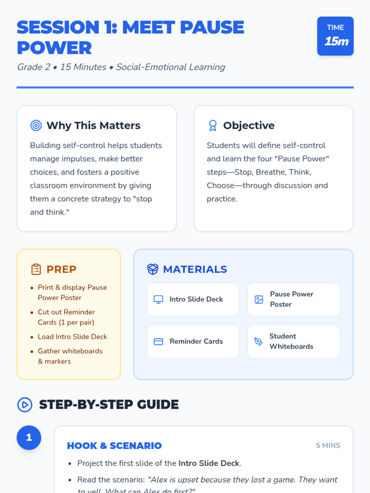 Introduce students to the 'Pause Power' concept and its four core steps through interactive discussion and role-play.