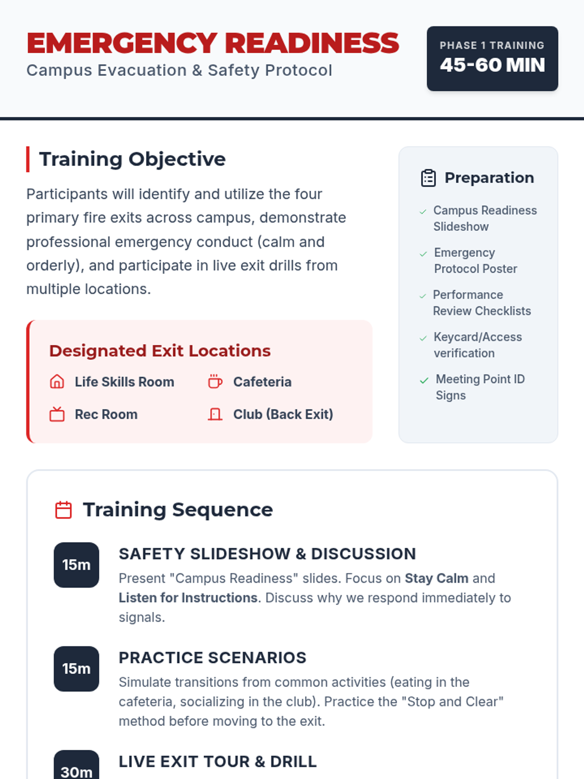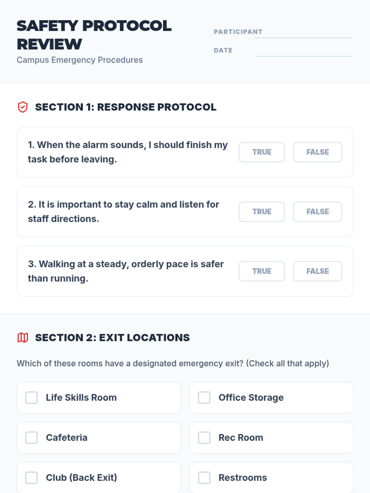 A comprehensive lesson to prepare students for fire drills, focusing on evacuation steps, identifying emergency signals, and maintaining calm. Includes visual slides, role-play activities, and assessment tools.