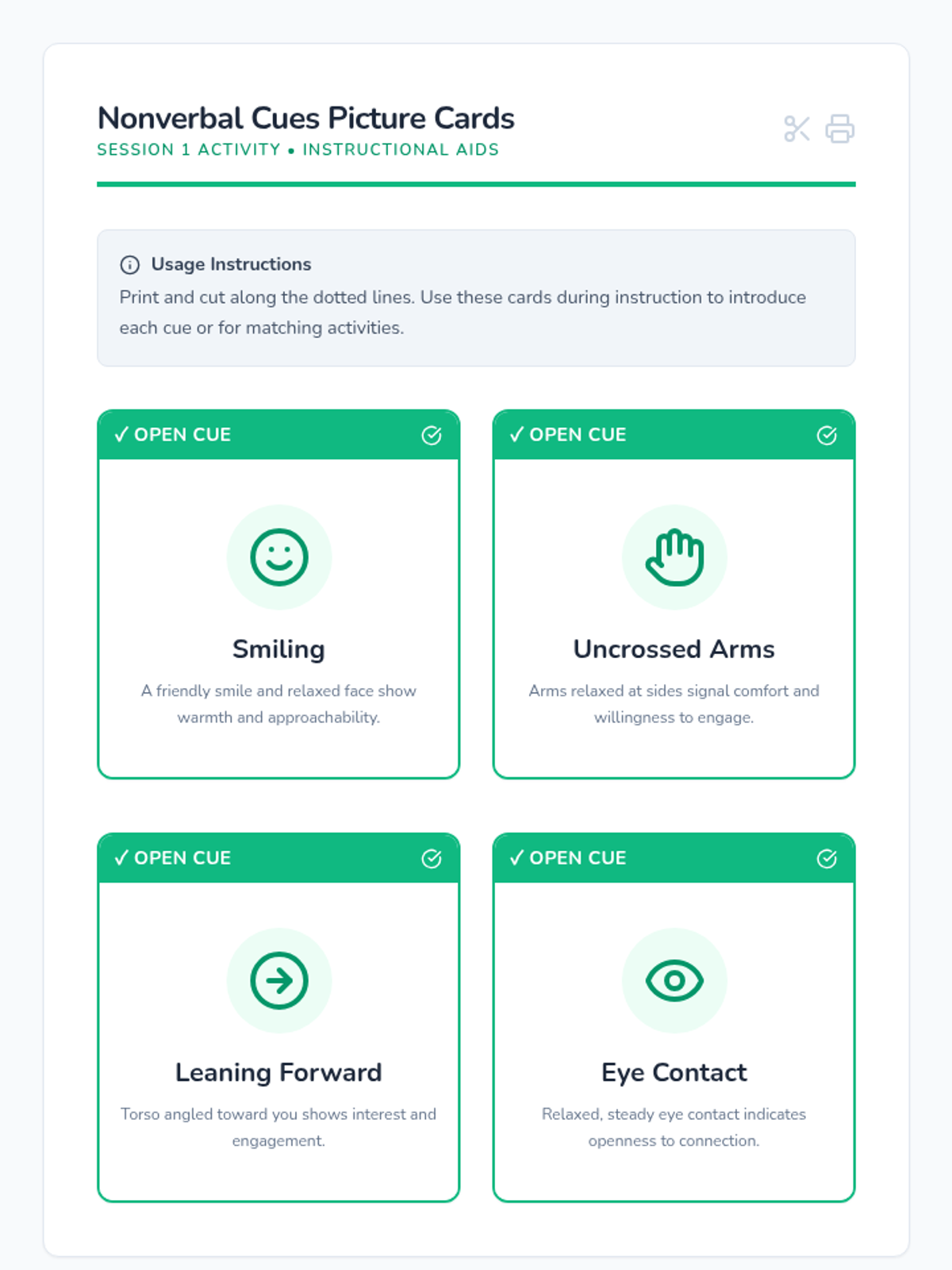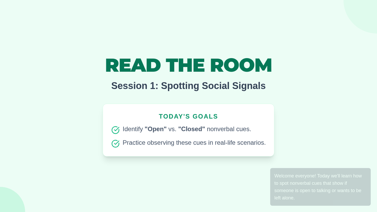 Focuses on identifying nonverbal cues like body posture, facial expressions, and eye contact to determine if someone is open to conversation or prefers to be left alone.