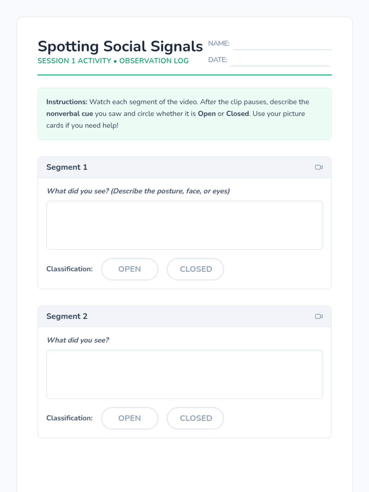 A foundational social skills lesson focusing on understanding and respecting personal space boundaries using visual narratives and interactive practice.