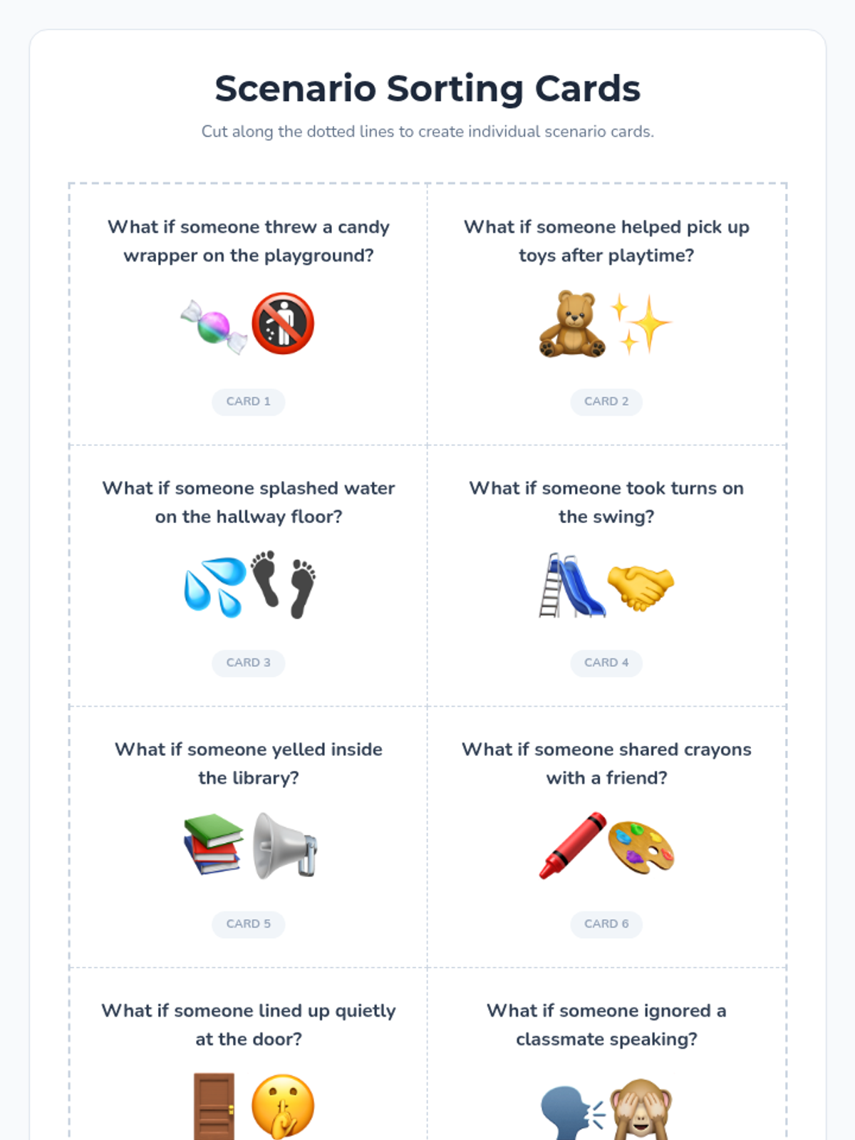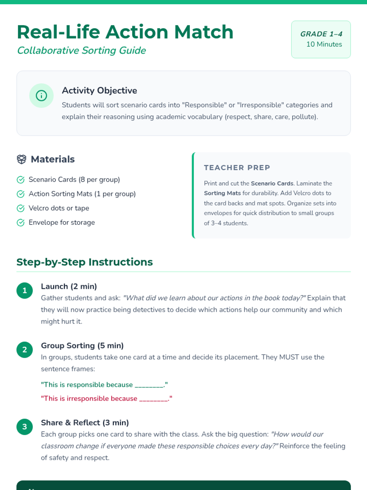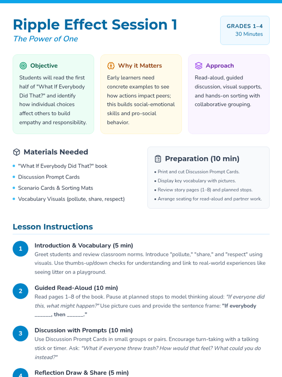 Students read the first half of the book and identify how individual choices affect others, using discussion cards and a hands-on sorting activity to build empathy and responsibility.