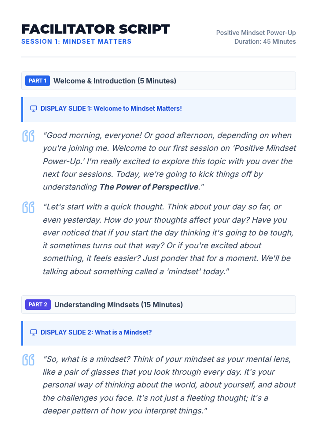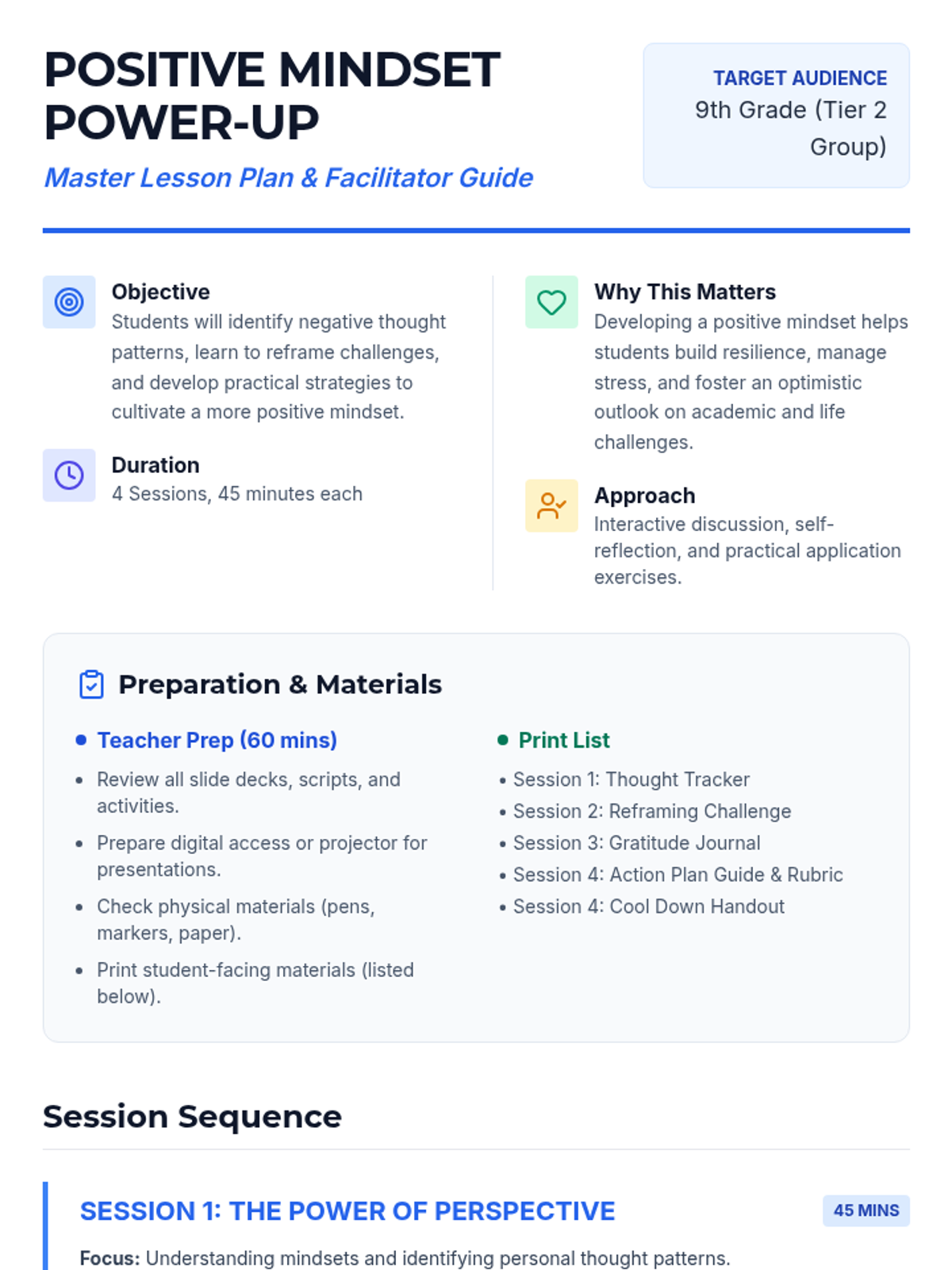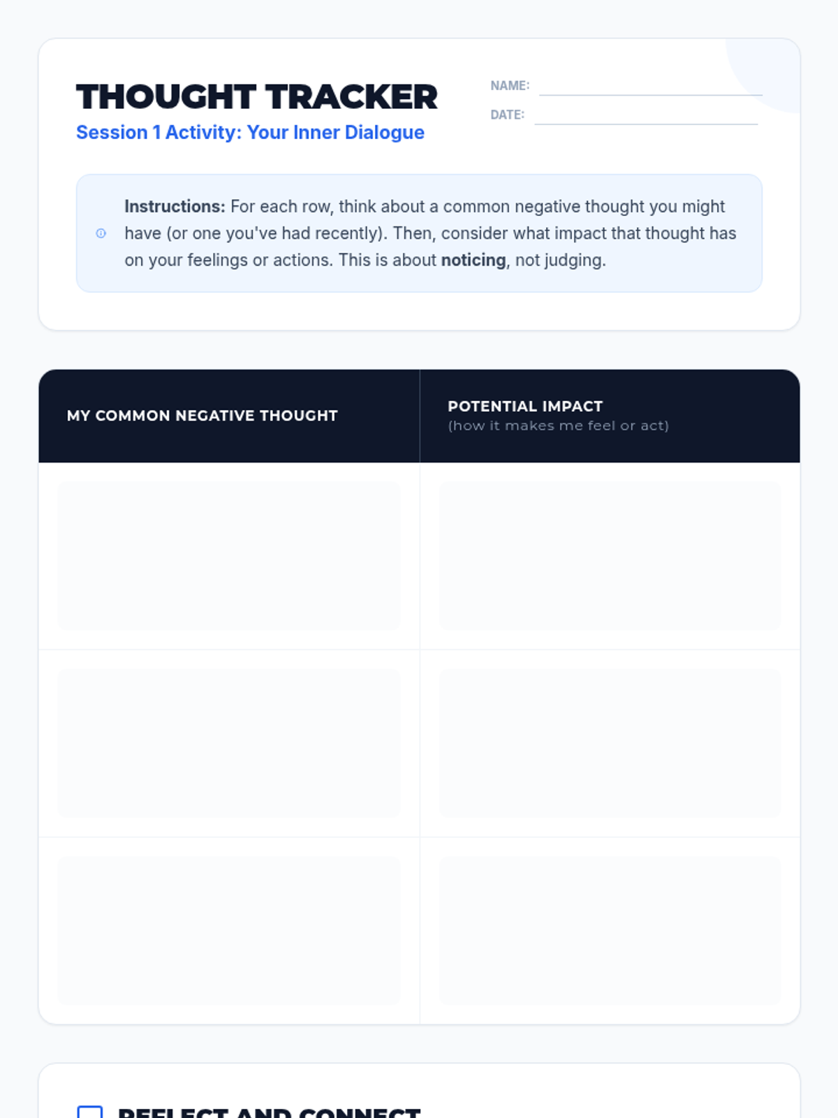 Introduces the concept of mindsets and helps students identify their own internal thought patterns using a tracker.