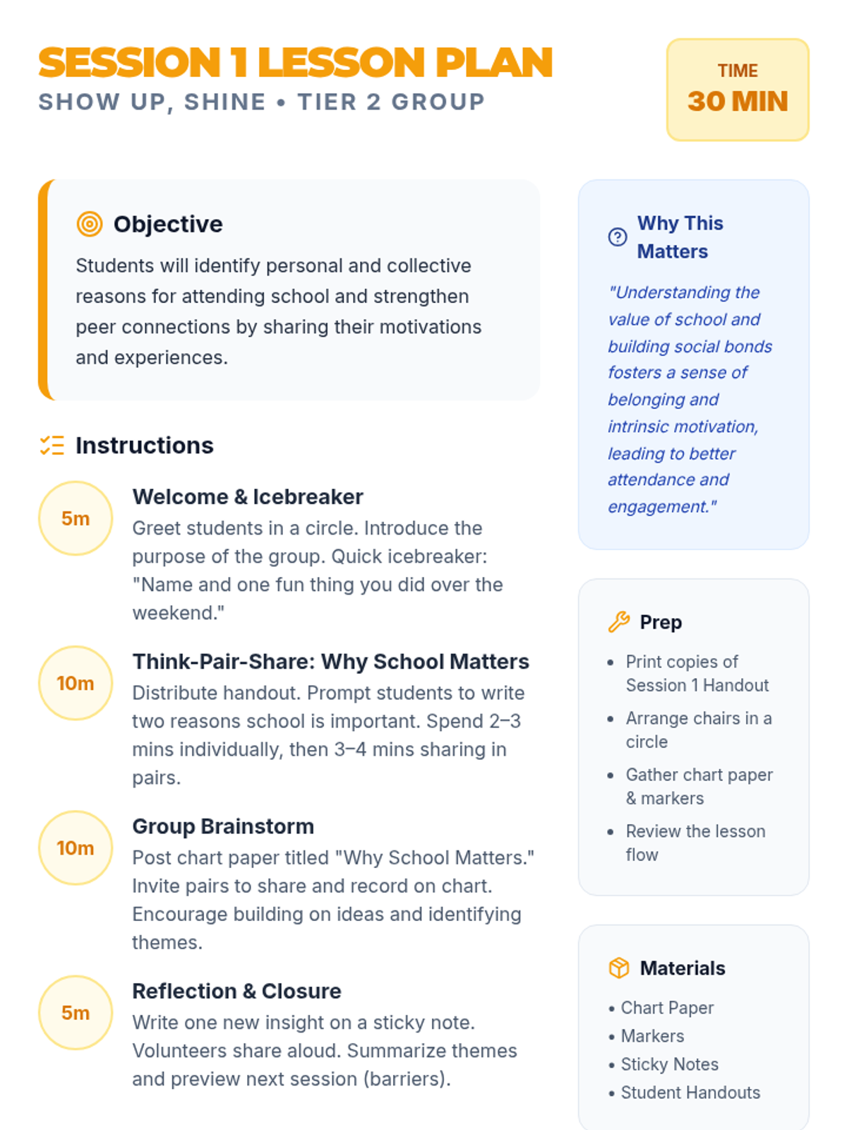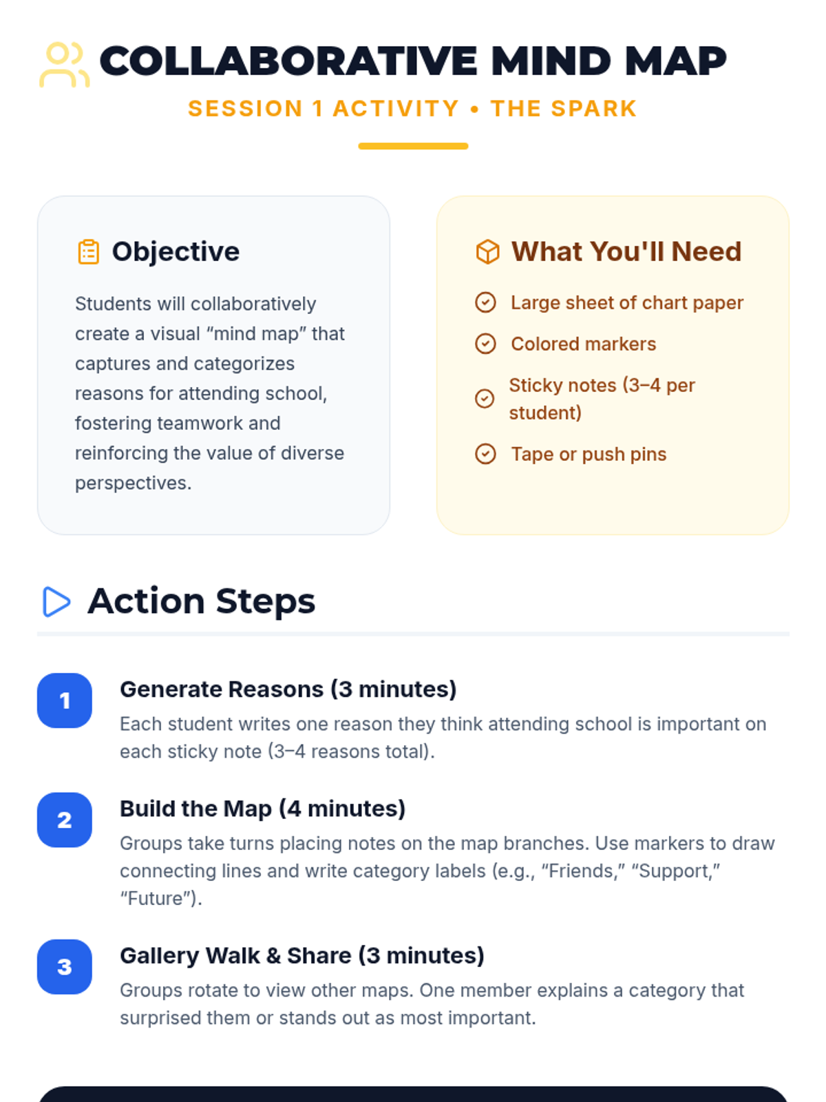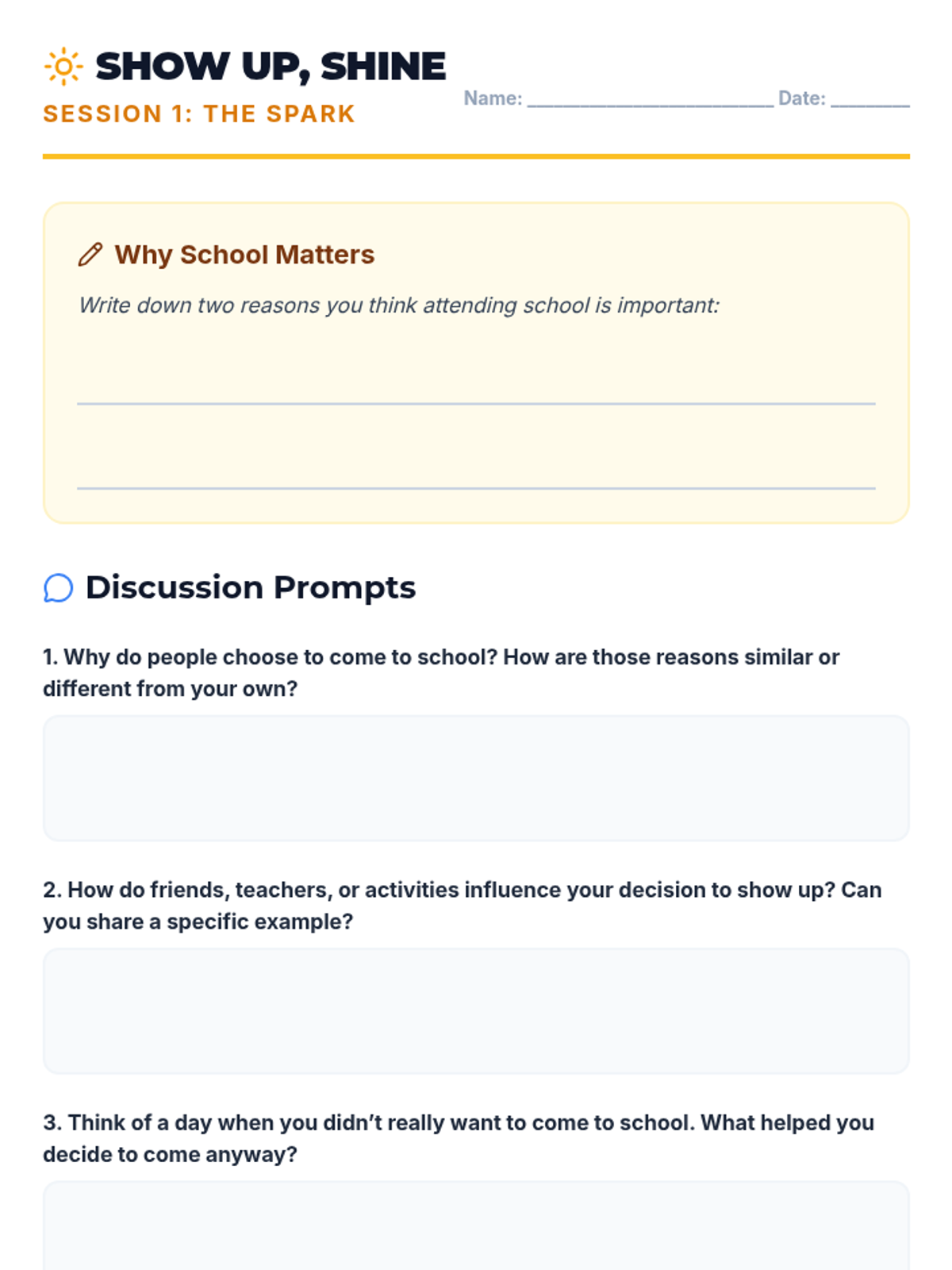 Students identify personal and collective reasons for attending school and build initial peer connections to foster a sense of belonging.