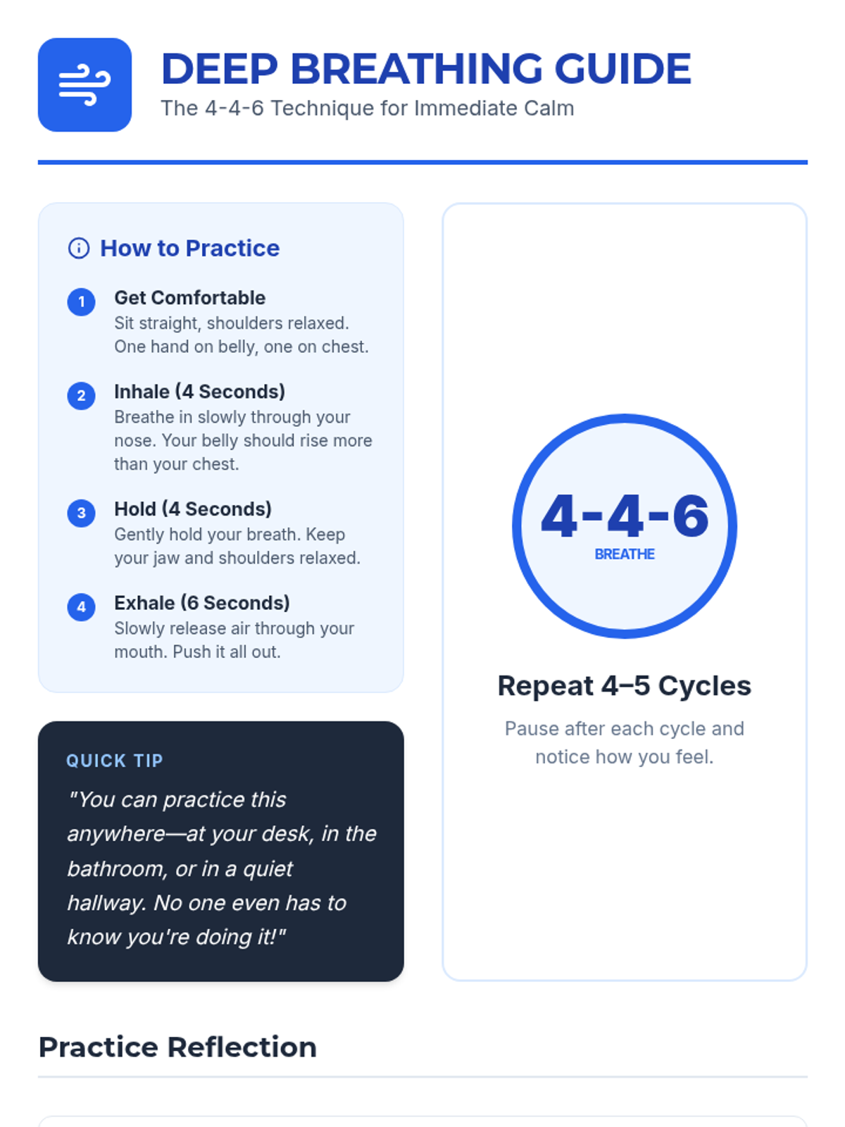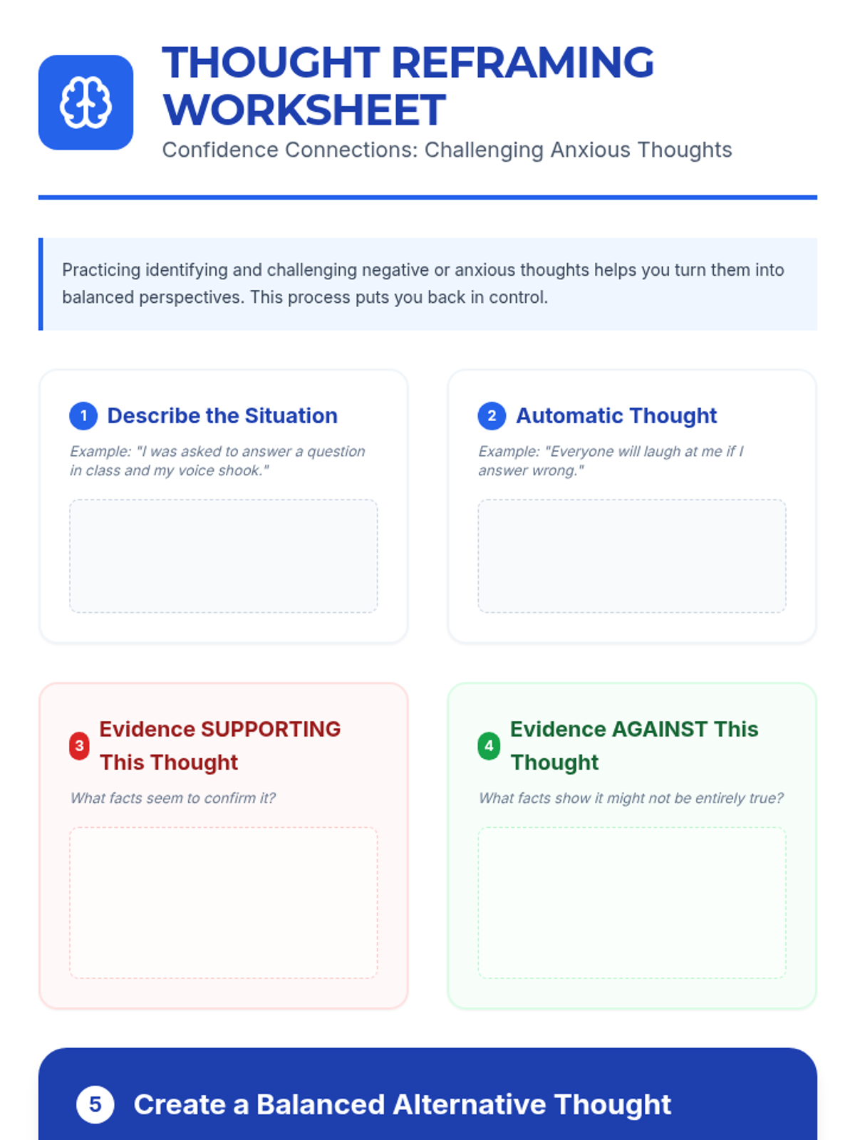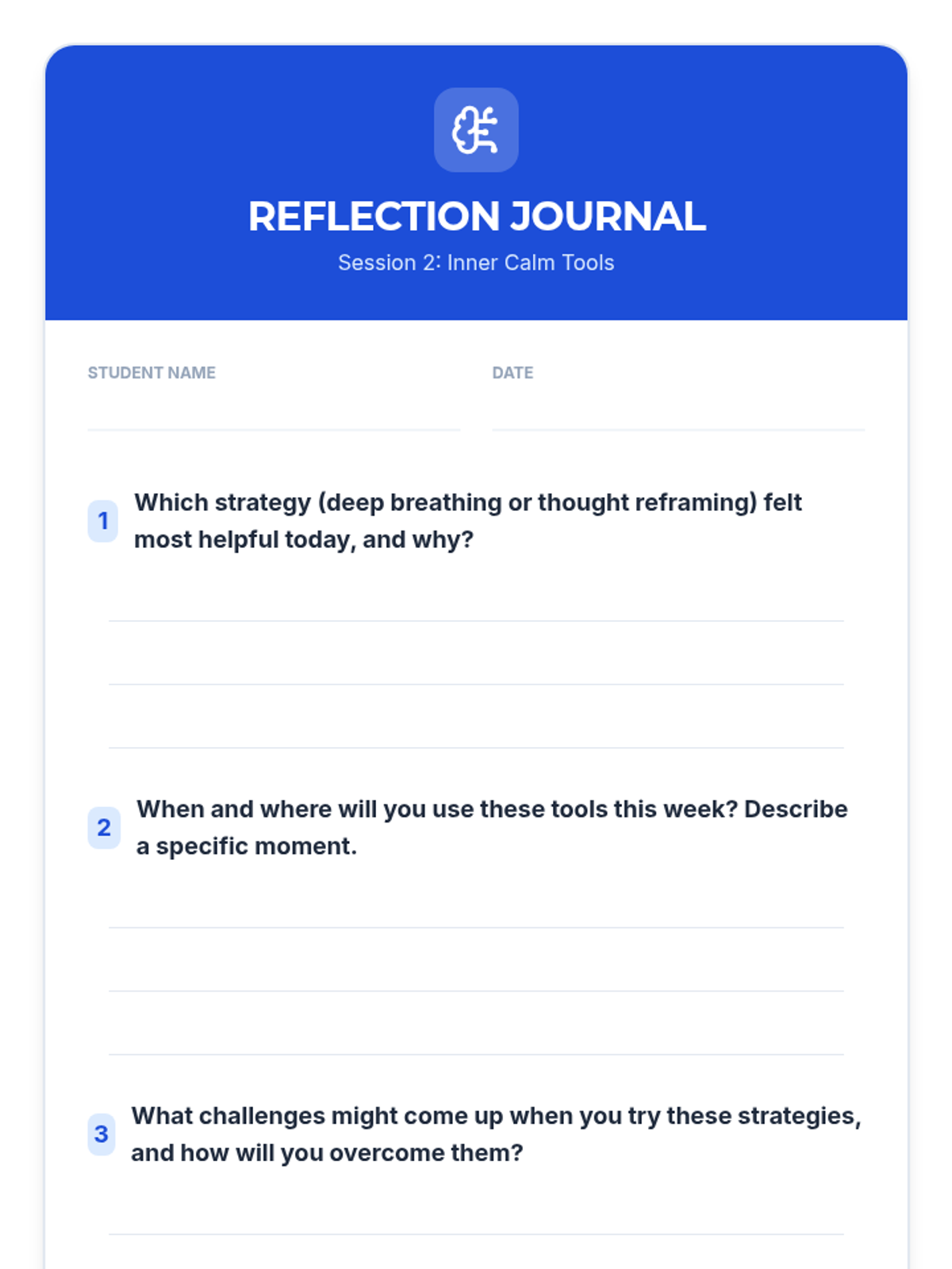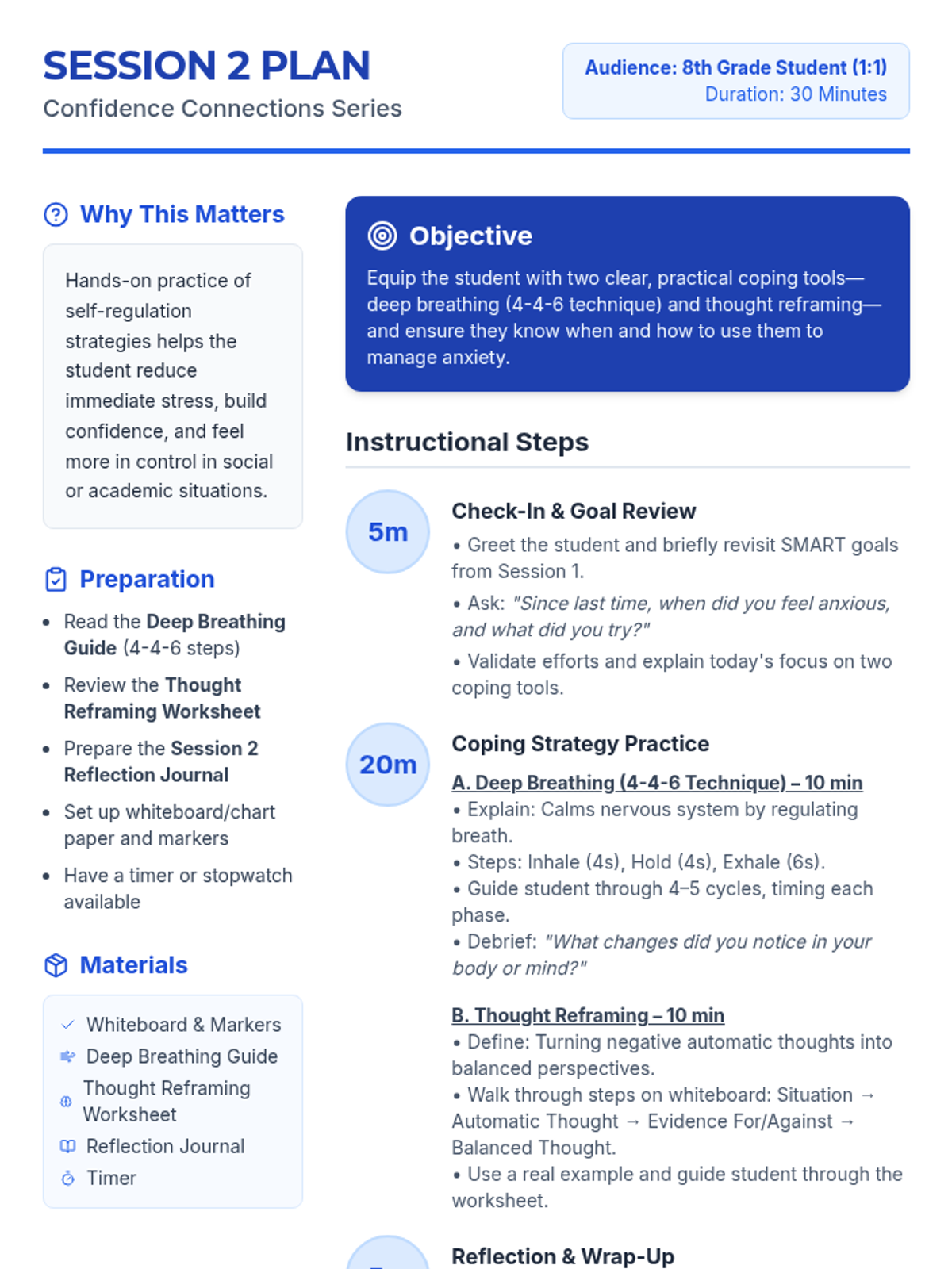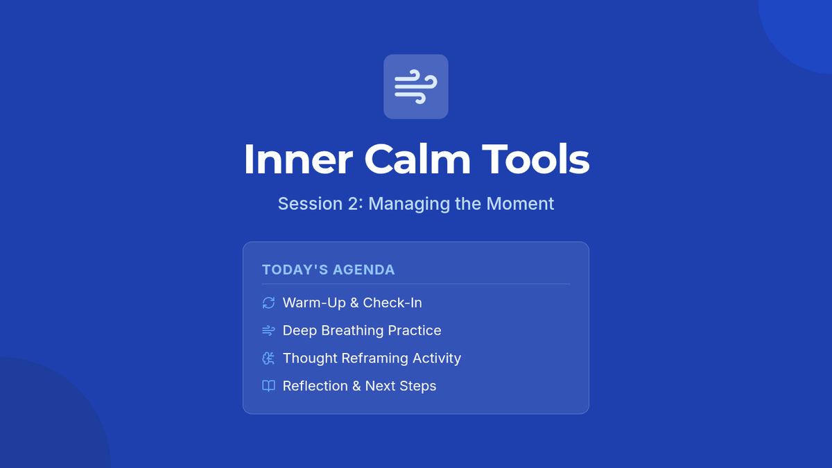 Equip the student with practical coping tools like deep breathing and thought reframing to manage immediate stress and anxiety.